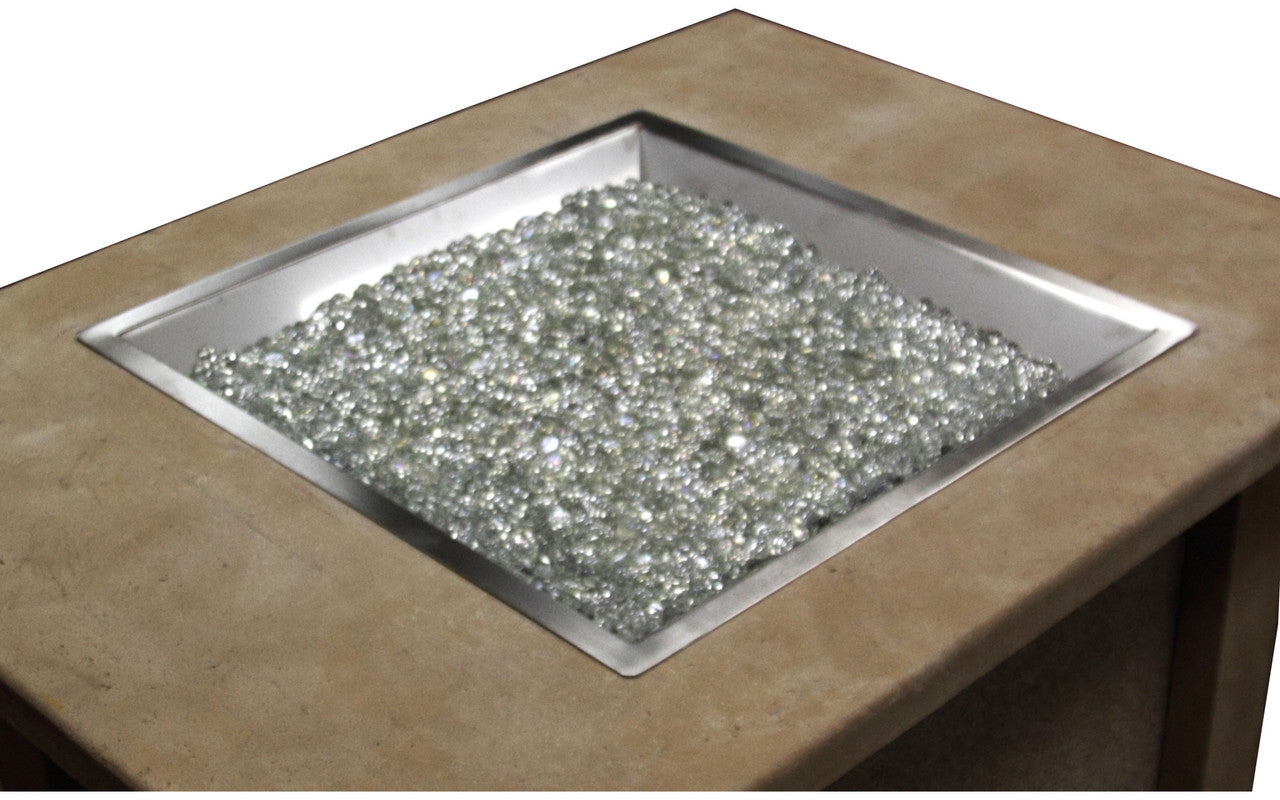 The Square Crystal Fire Burner from Outdoor GreatRoom is perfect for their line of fire pit tables or can be used in a custom-built fire pit. Made from high quality stainless steel and include tempered, tumbled glass and ignition controls. All burners are UL approved for safety and quality. Available in multiple color options. Includes 20lbs of clear fire pit glass.