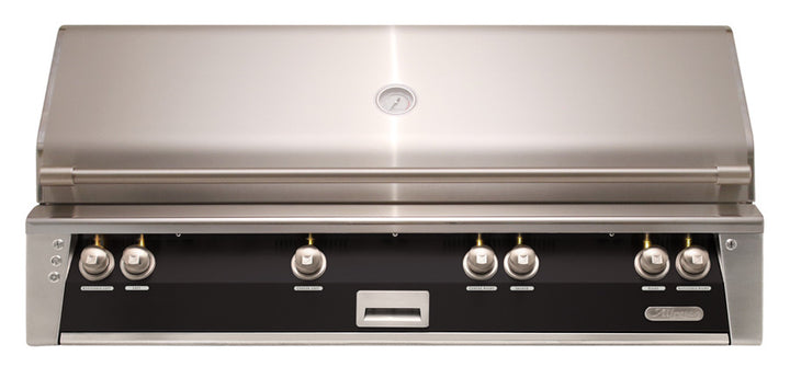 The Alfresco 3 Burner 56-Inch Built-In Luxury BBQ Grill With Rotis, Smoker and SearZone™ (JET BLACK Gloss or Matte) provides a high-performance luxury grill to complete your outdoor kitchen. The 304 stainless steel grill features (3) 18-SR stainless steel main burners producing 55,000 BTUs with 998 square inches of grilling area with the option to upgrade to a Sear Zone infrared burner. The Sear Zone features a “V-shaped” design and reaches temperatures up to 1500 degrees Fahrenheit to produce professional steakhouse results–all while using up to 50 percent less fuel. Pyramid-shaped ceramic briquettes situated above the burners eliminate hot and cold spots to maximize flavor through even delivery of heat to the cooking surface. Premium cooking grates featuring a special nonstick electro-polished finish allow for professional grill marks every time. The integrated rotisserie system features a chain-driven, whisper-quiet motor and a flush-mounted 15,000 BTU rear ceramic infrared burner. In addition, a dedicated 5,000 BTU burner provides heat to the sealed wood smoking drawer that holds large chunks of wood, herbs, and liquids to produce unmatched flavor. Additionally, this grill features an adjustable 3-position warming rack, SafeTouch technology to keep control components and electronics cool to the touch, hood-assist for easy lifting, simple push-button ignition with sealed 110v AC power source, dual halogen work lights, rich amber LED knob lighting, and includes a matching grill cover for a complete grilling package you’re sure to love. The durable cart features an all stainless steel construction that you can depend on. Its two side shelves are convenient for preparing your food, holding your drink or for placing tools that you are using on. Its double access doors offer an easy way to get to your utility connections.
