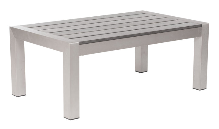 The Cosmopolitan Coffee Table is the perfect place to gather your friends and ply them with cheese. Its sophisticated shape is bolstered by an aluminum frame with a polyurethane simulated wood top. Sturdy enough to withstand even the strongest of goudas.