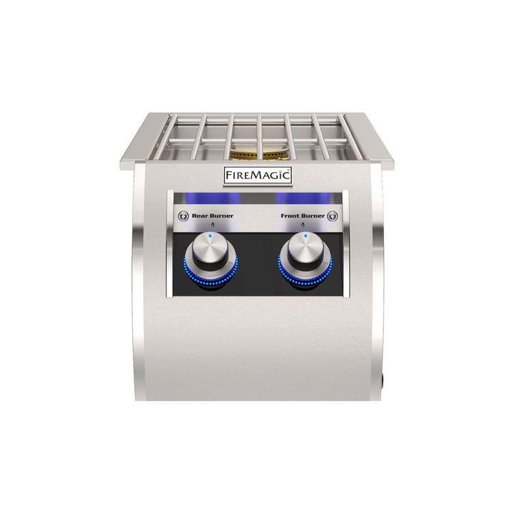 The Fire Magic Echelon Diamond Built-In Double Side Burner is a perfect match for your Echelon Diamond Grill. With sleek lines highlighted by a modern black glass panel you can enjoy precise flame control on each burner to prepare side dishes and sauces for our meal (Two [2] 15,000 BTU’s burners.)