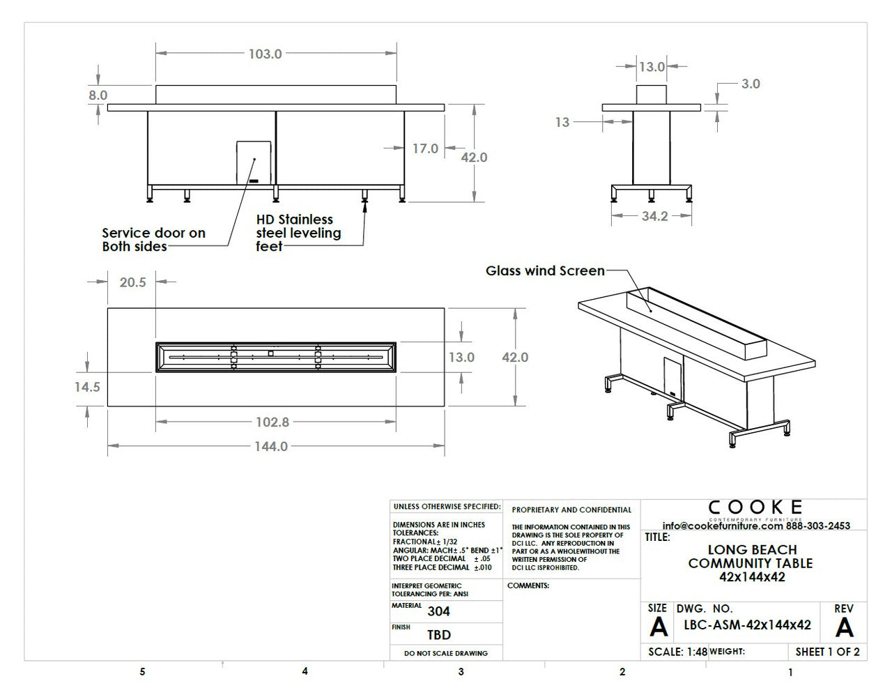 The COOKE Long Beach fire pit table combines a premium table top surface with an extremely durable 304 stainless steel base suitable for ocean front properties or heavy commercial use. COOKE builds fire pit tables with large table tops that you will enjoy even without a fire. Your table top will have a 3" matched edge and will impress. A stainless steel base finished in your choice of custom powder coat colors keeps things simple and durable.