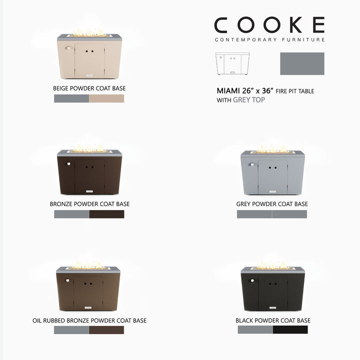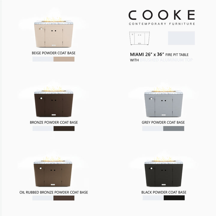 COOKE Miami Fire Pit Table 36" x 26" x 21" - Aluminum Top