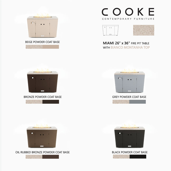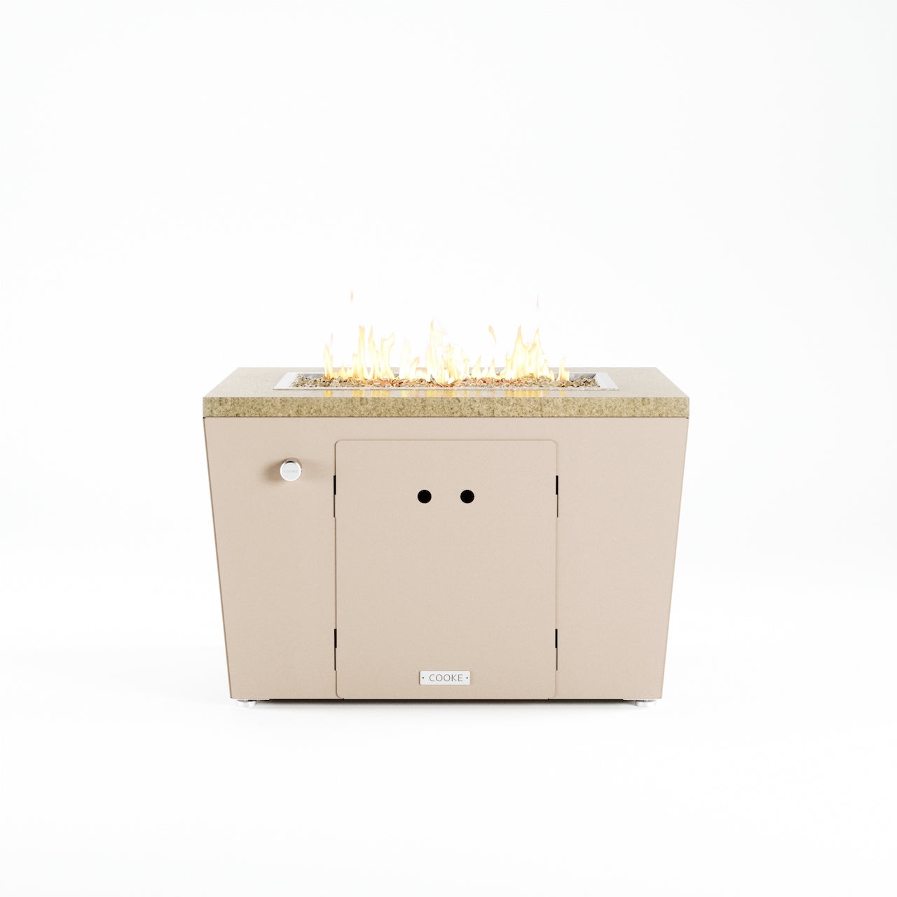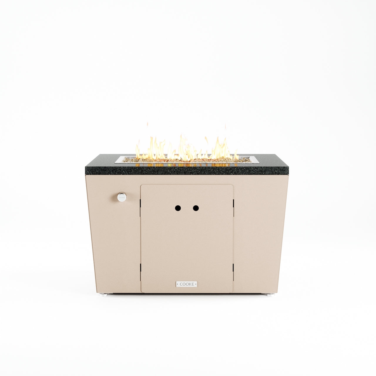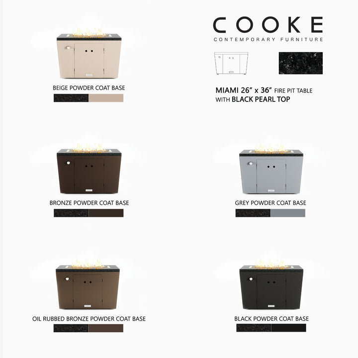 First, like all COOKE products, this rectangular outdoor fire pit has a real one-piece premium granite top. This is real, natural, beautiful granite. Customize the look of your table with three beautiful granite top options and five base colors.