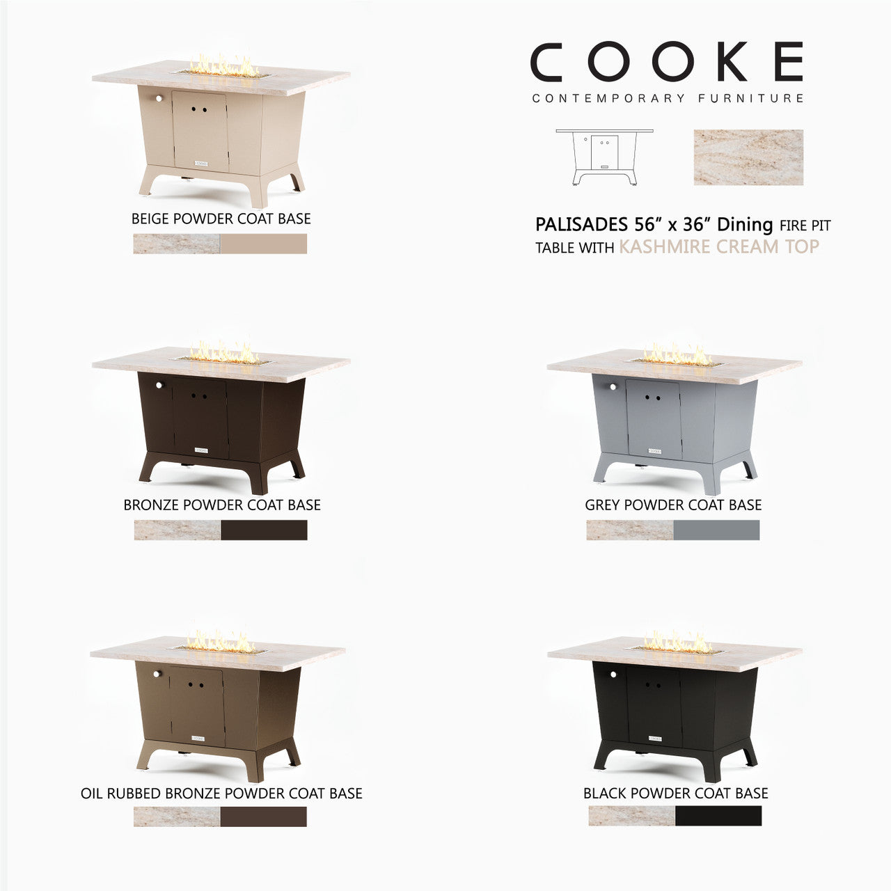 - The Palisades is a 30" tall contemporary dining height fire pit table