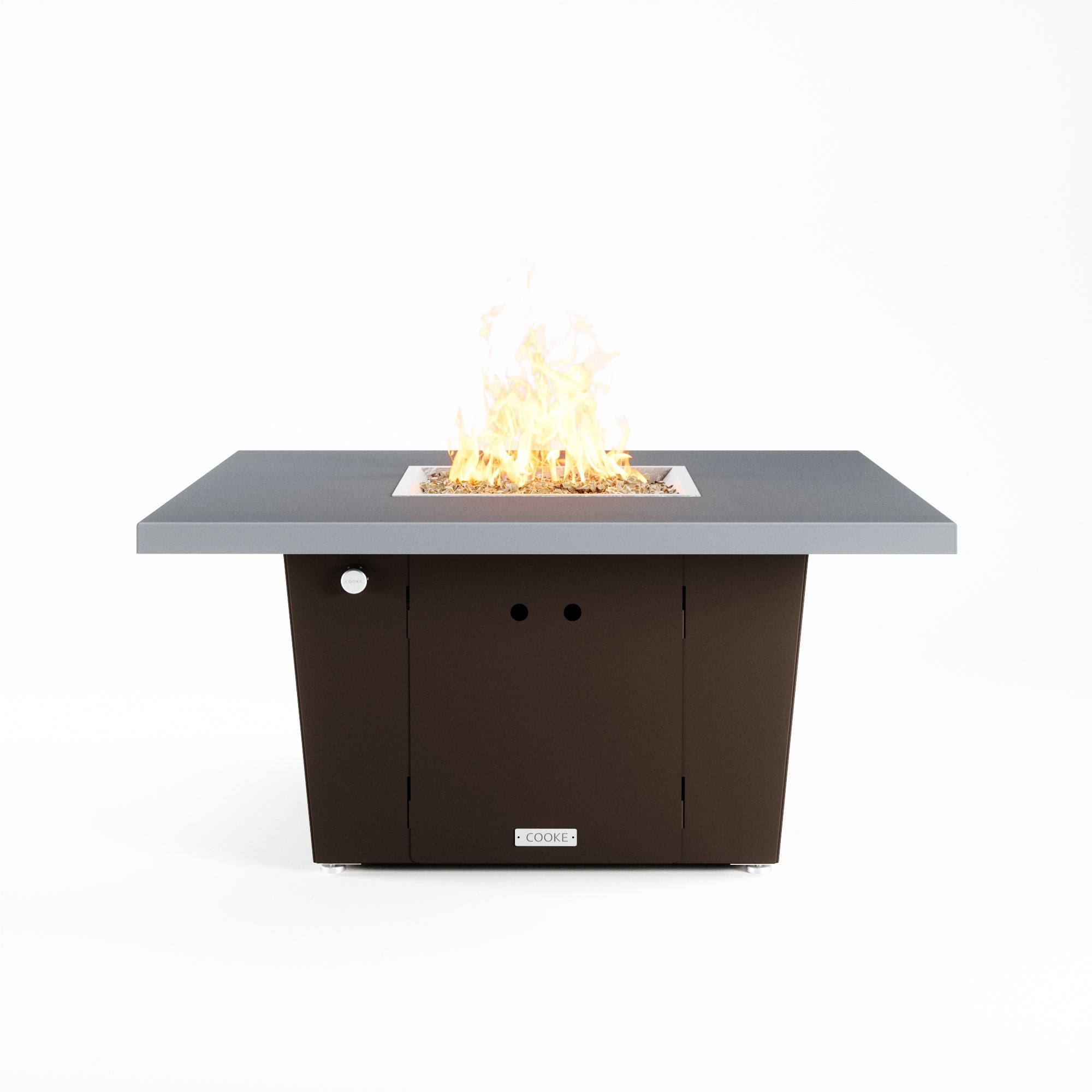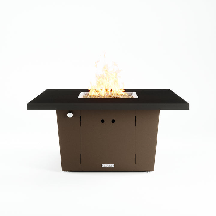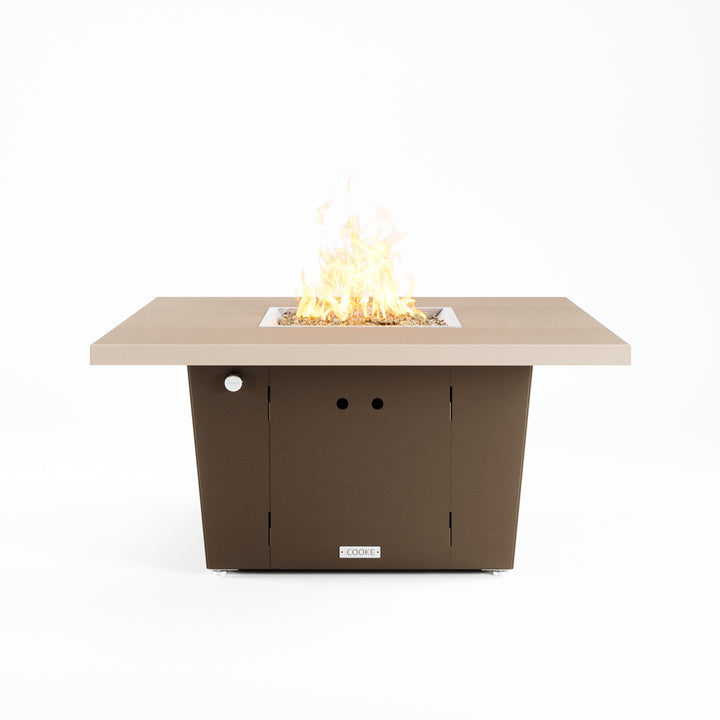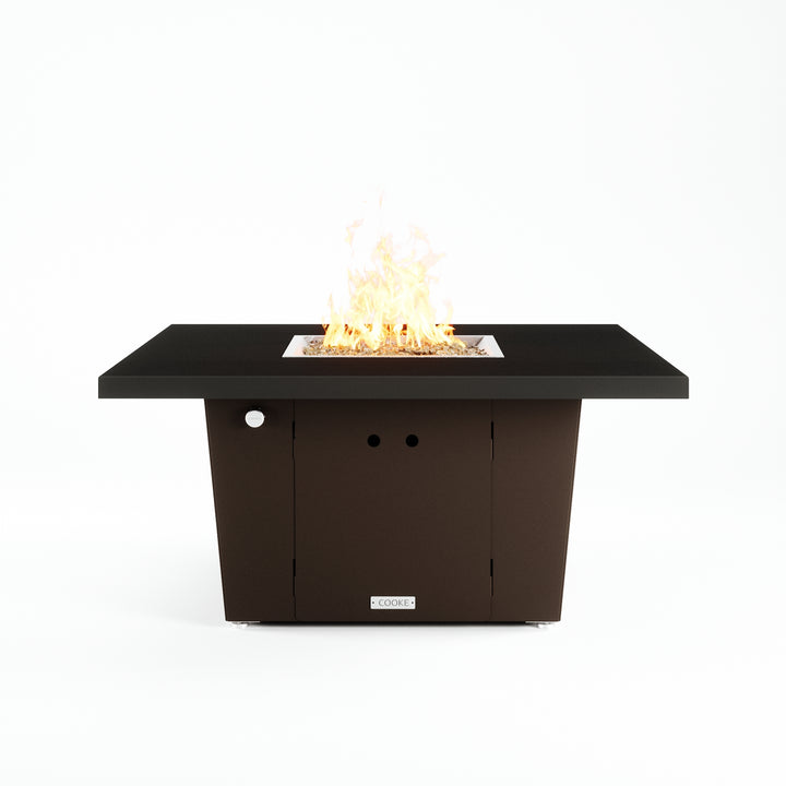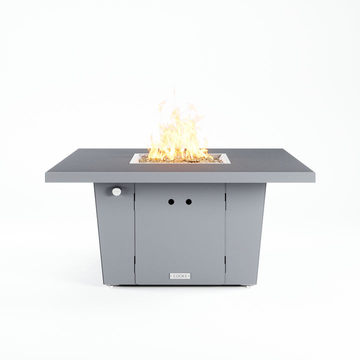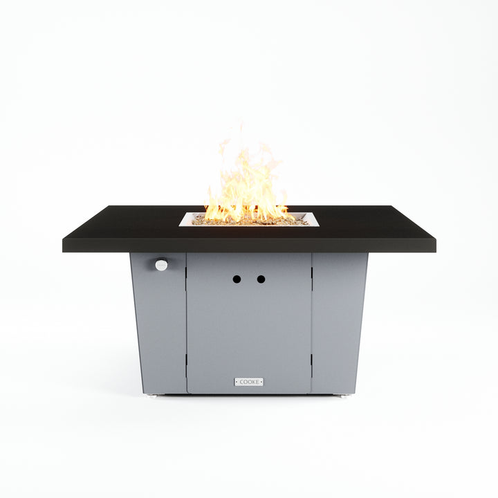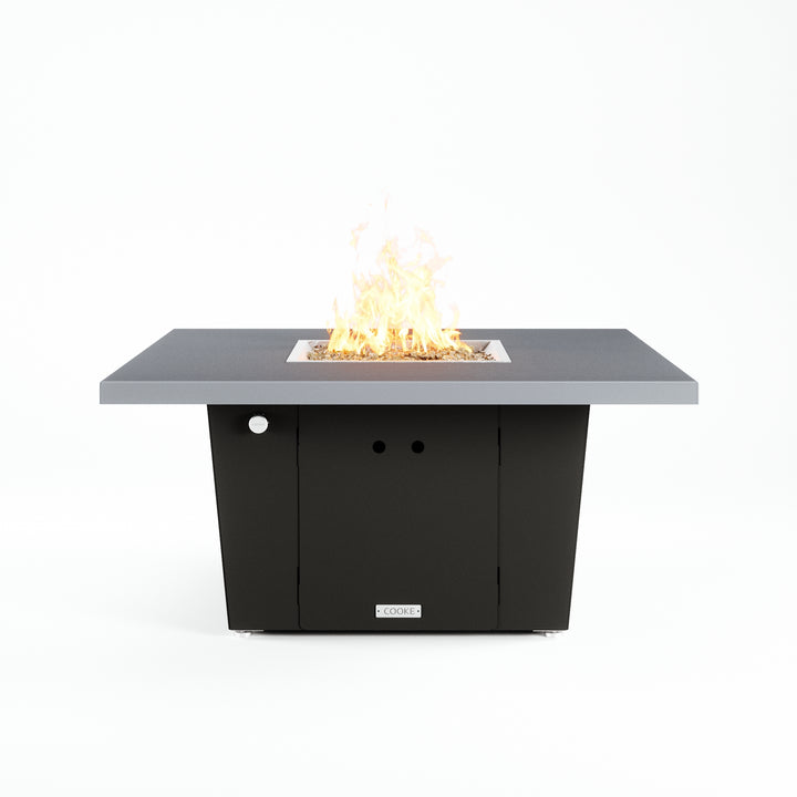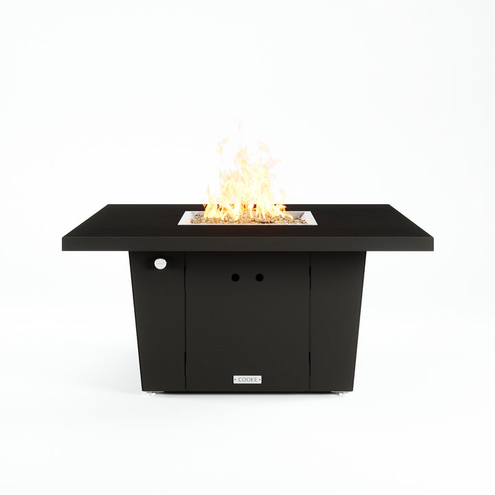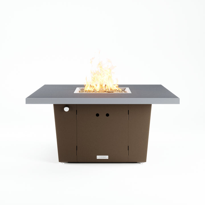 The 44" x 44" table top is the perfect medium size table and accommodates seating up to 4. Our customers love this table's stain resistant aluminum or granite table top which has plenty of room for small plates and drinks. COOKE produces some of the finest fire pit tables in the industry which can be seen in the level of detail brought to the table top surface. COOKE wants you to have a great looking table, fire or not!