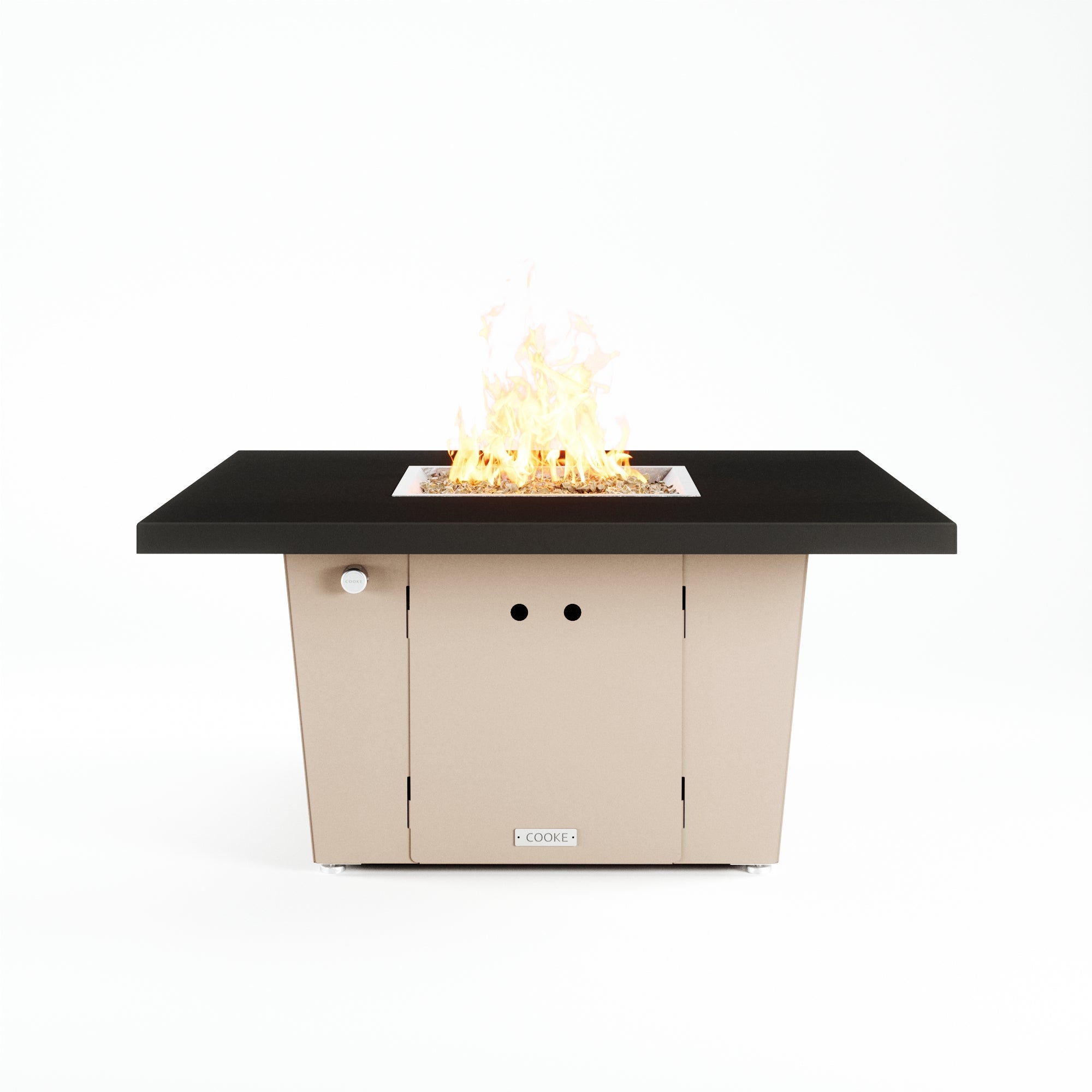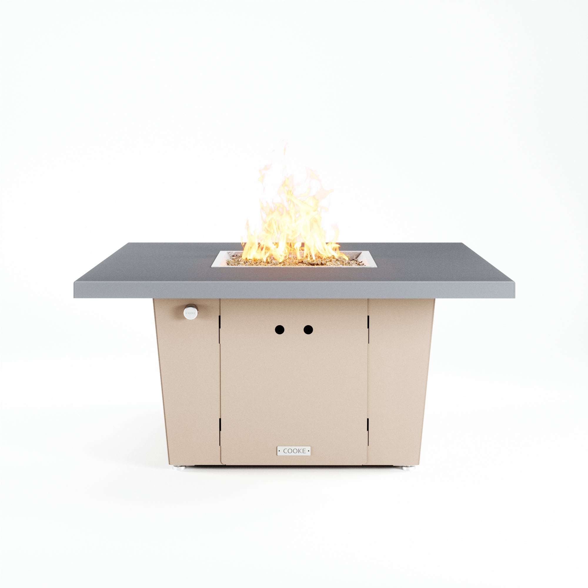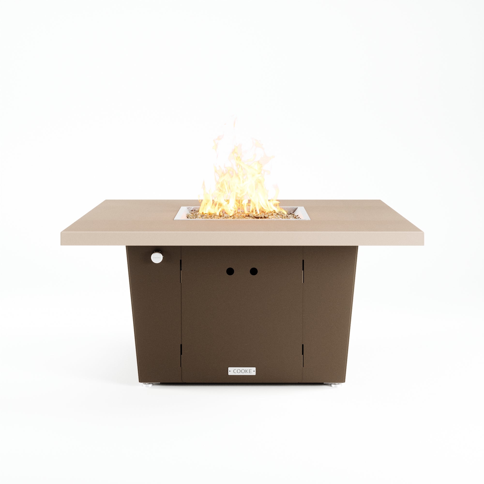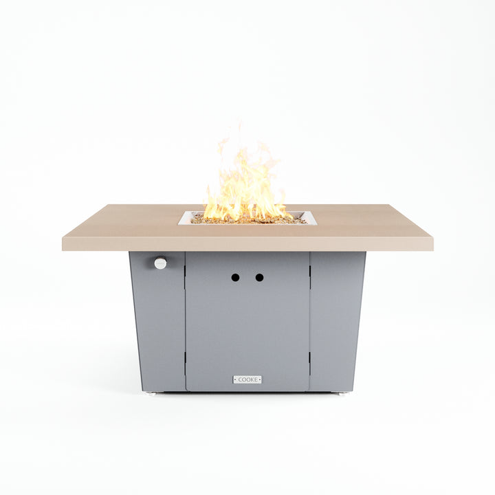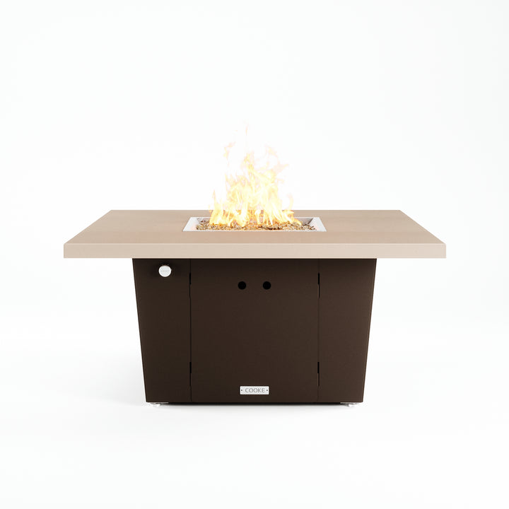 The 44" x 44" table top is the perfect medium size table and accommodates seating up to 4. Our customers love this table's stain resistant aluminum or granite table top which has plenty of room for small plates and drinks. COOKE produces some of the finest fire pit tables in the industry which can be seen in the level of detail brought to the table top surface. COOKE wants you to have a great looking table, fire or not!