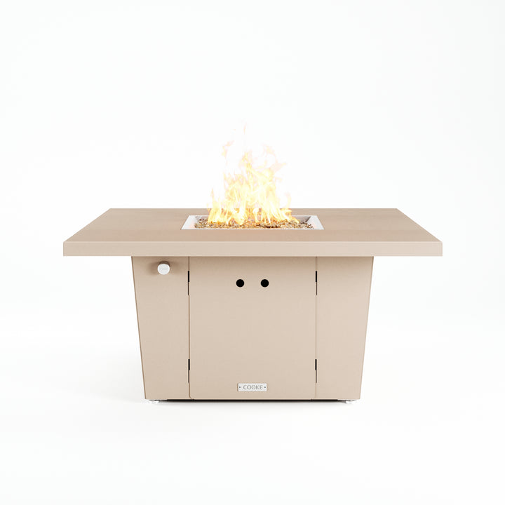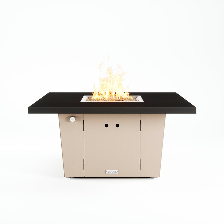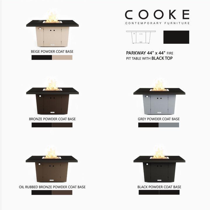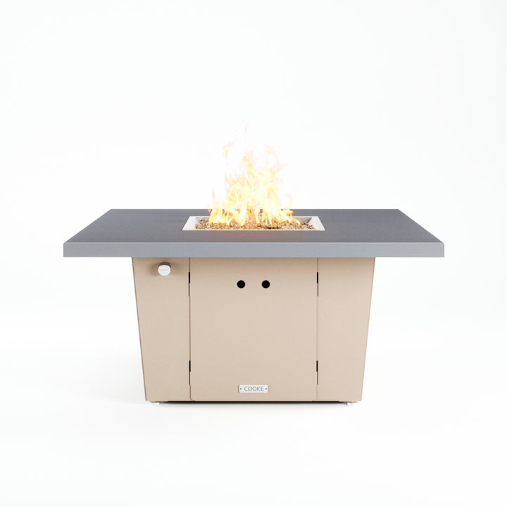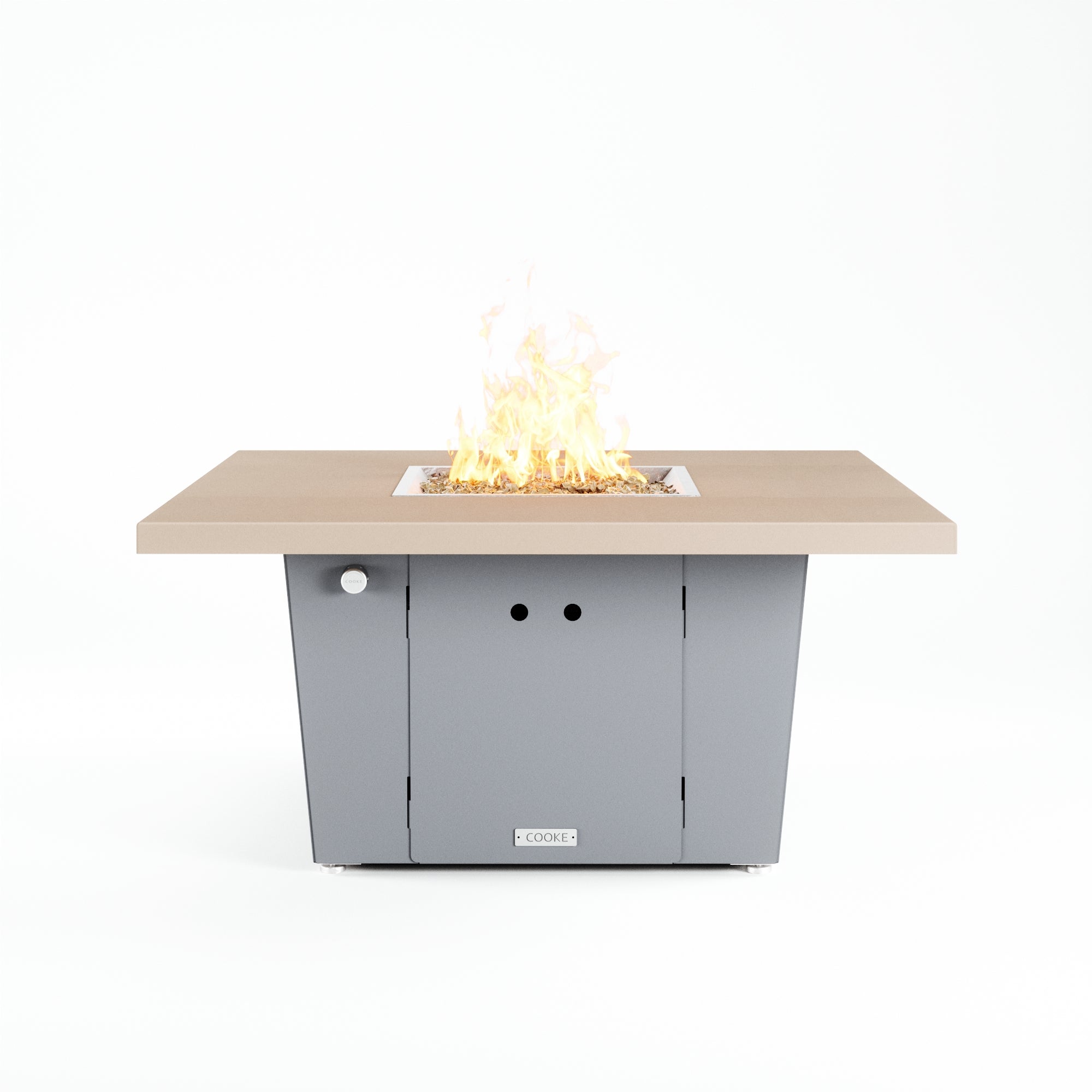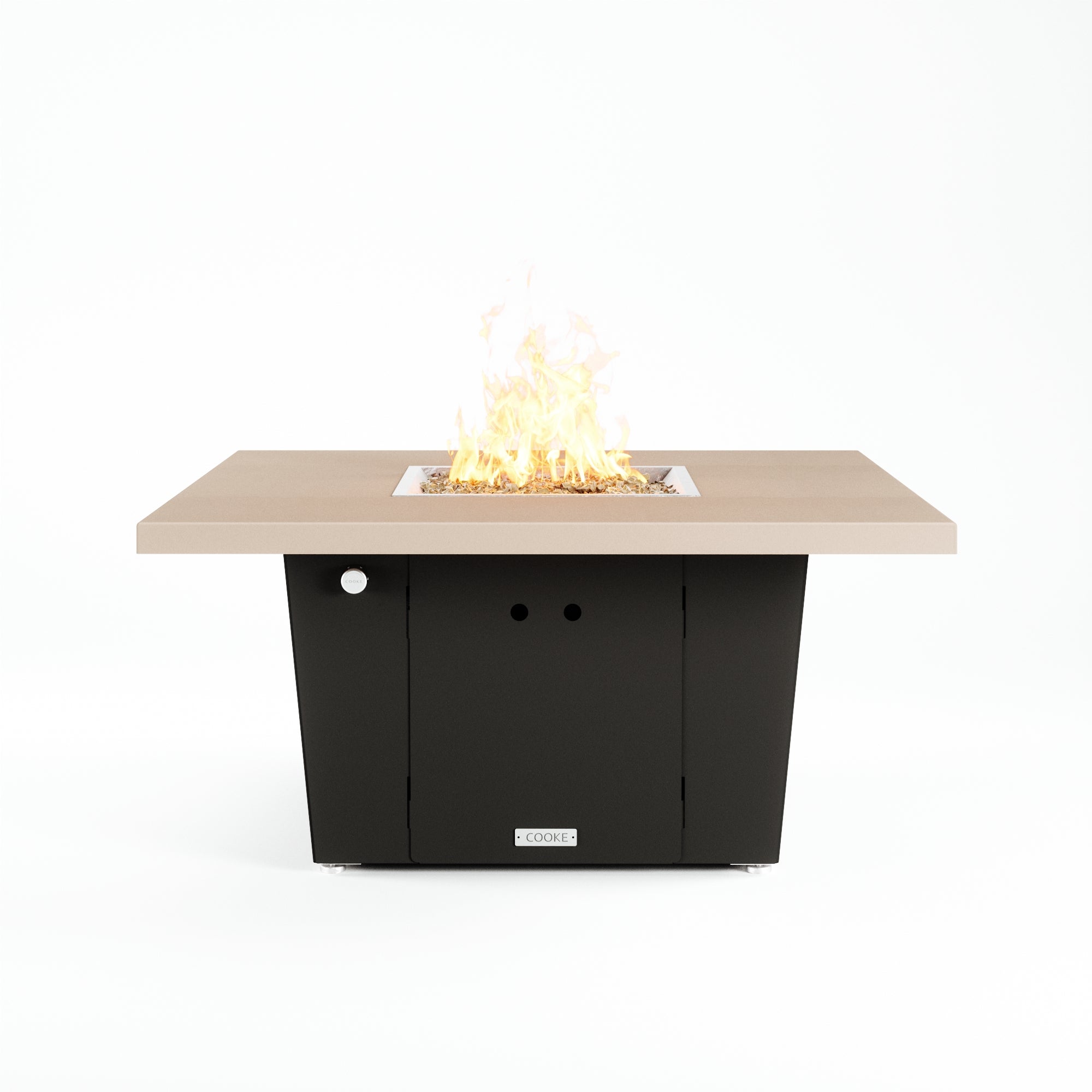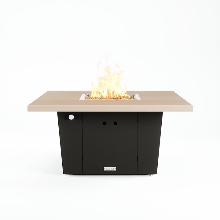 The 44" x 44" table top is the perfect medium size table and accommodates seating up to 4. Our customers love this table's stain resistant aluminum or granite table top which has plenty of room for small plates and drinks. COOKE produces some of the finest fire pit tables in the industry which can be seen in the level of detail brought to the table top surface. COOKE wants you to have a great looking table, fire or not!
