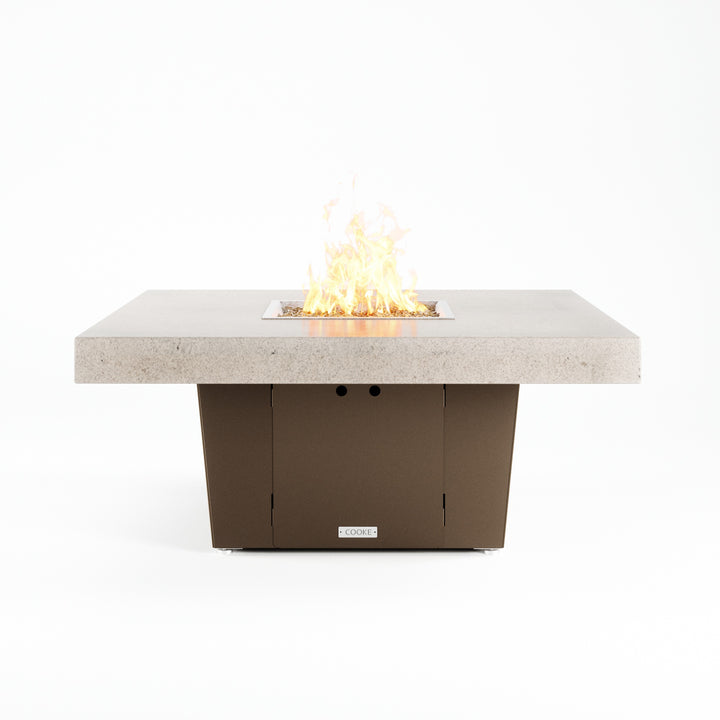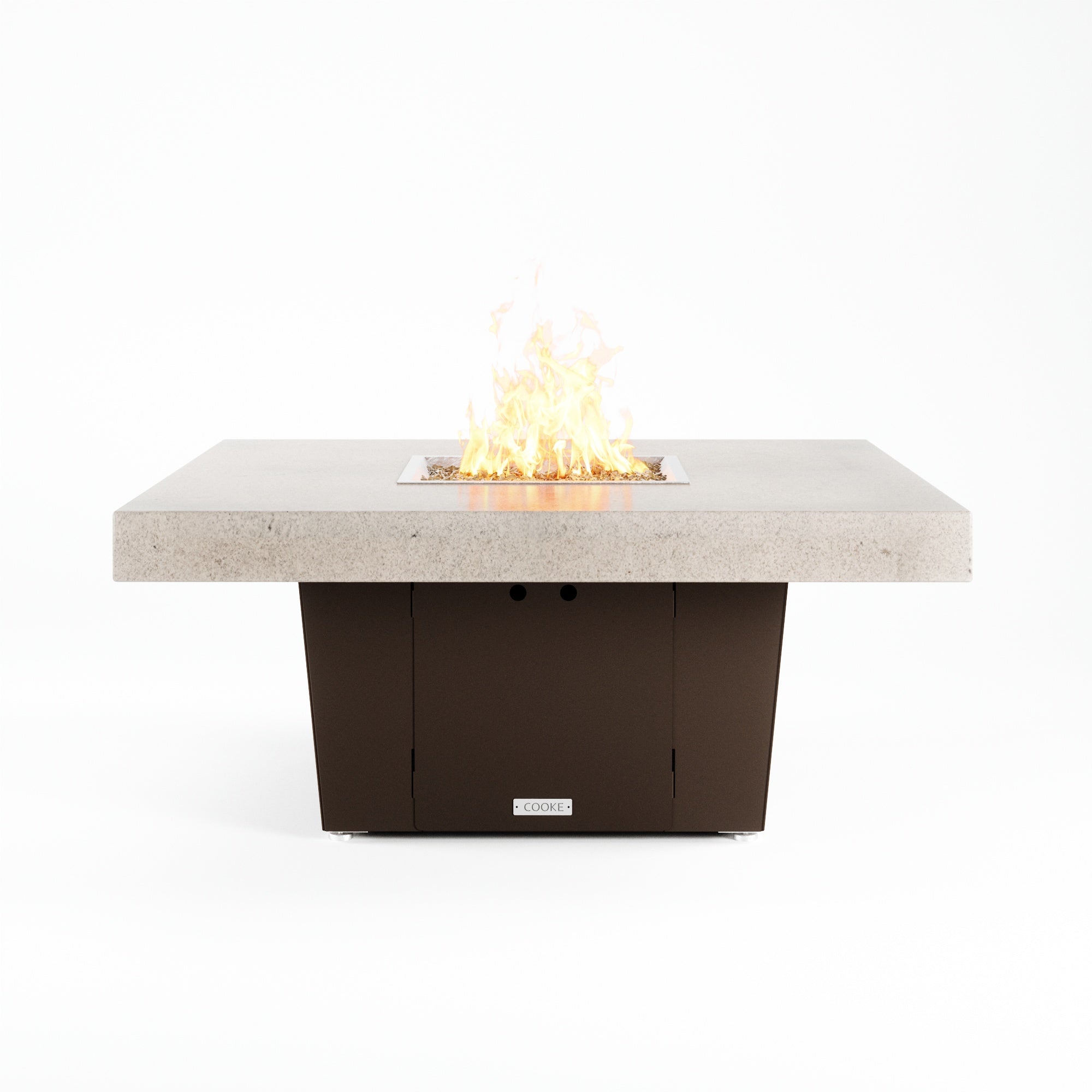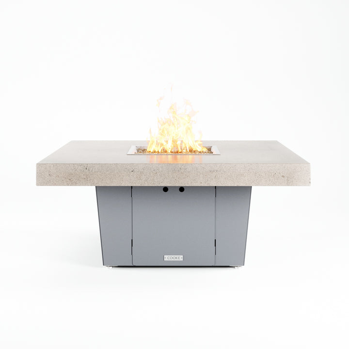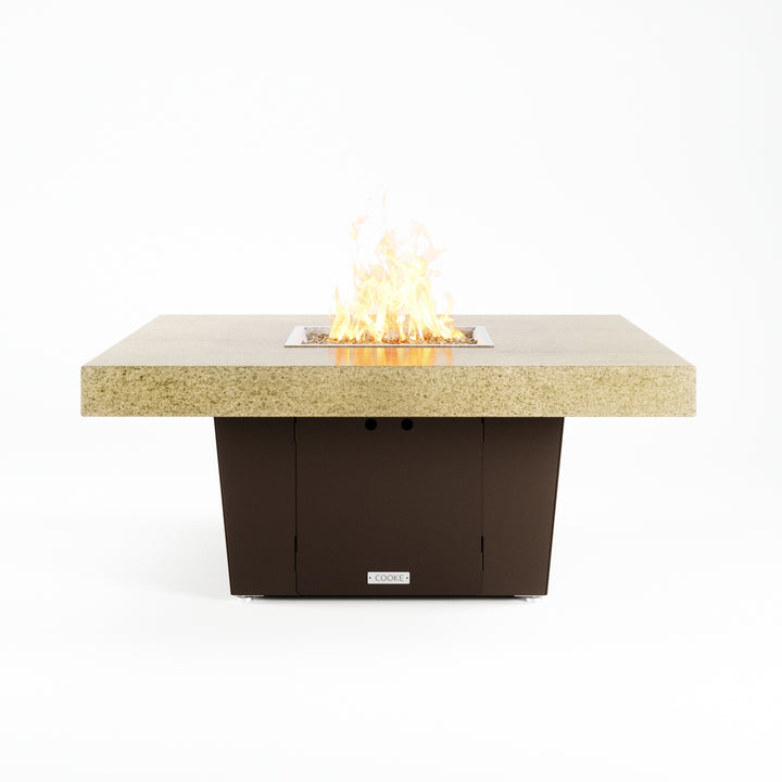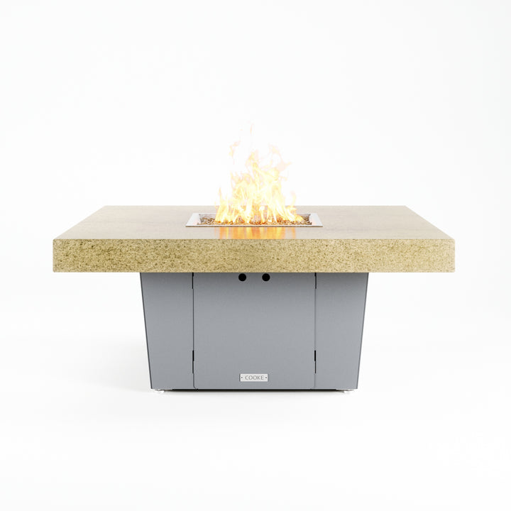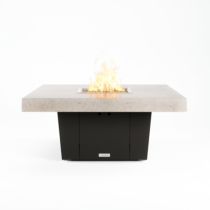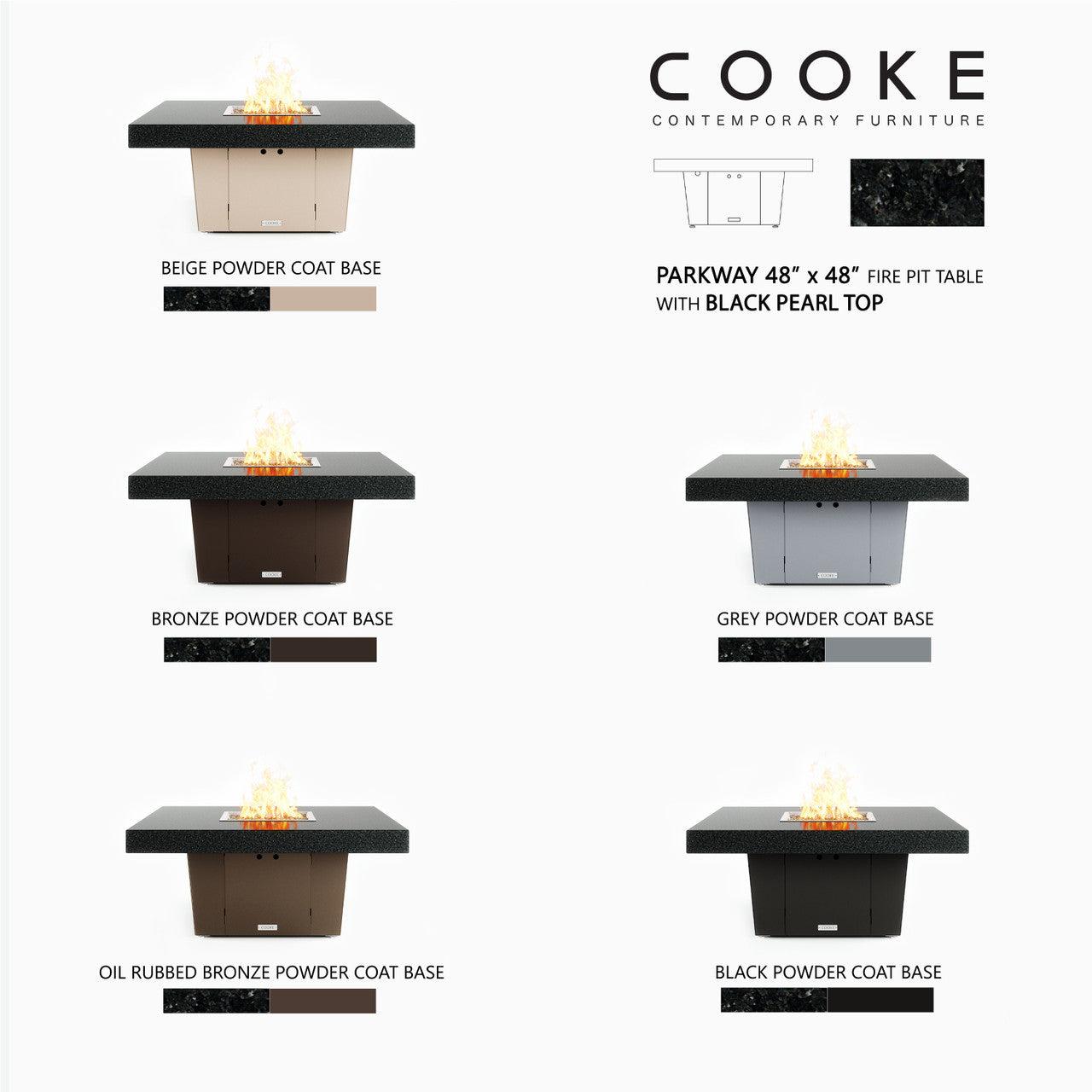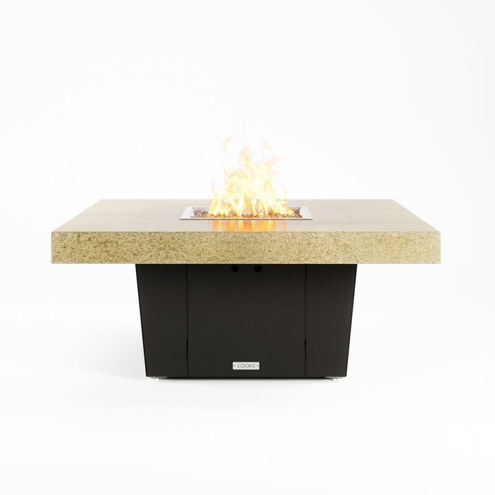 This table features tapered base for more footroom and a 4" thick top. Choose from COOKE’s selection of real, one-piece premium granite tops or satin finish powdercoat colors. COOKE granite is cut from real, one-of-a kind, slabs also used for high end architectural applications. Cover up the fire pit burner with the included stainless steel lid and your Cooke fire pit table transforms into a functional and beautiful garden or patio table. This table is perfect for your romantic backyard jungle meeting spot, modern clubhouse, or contemporary outdoor concrete patio.