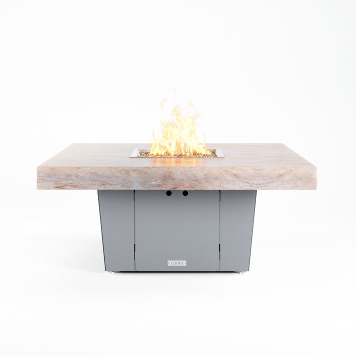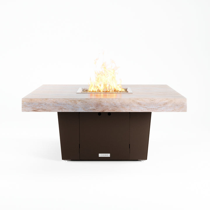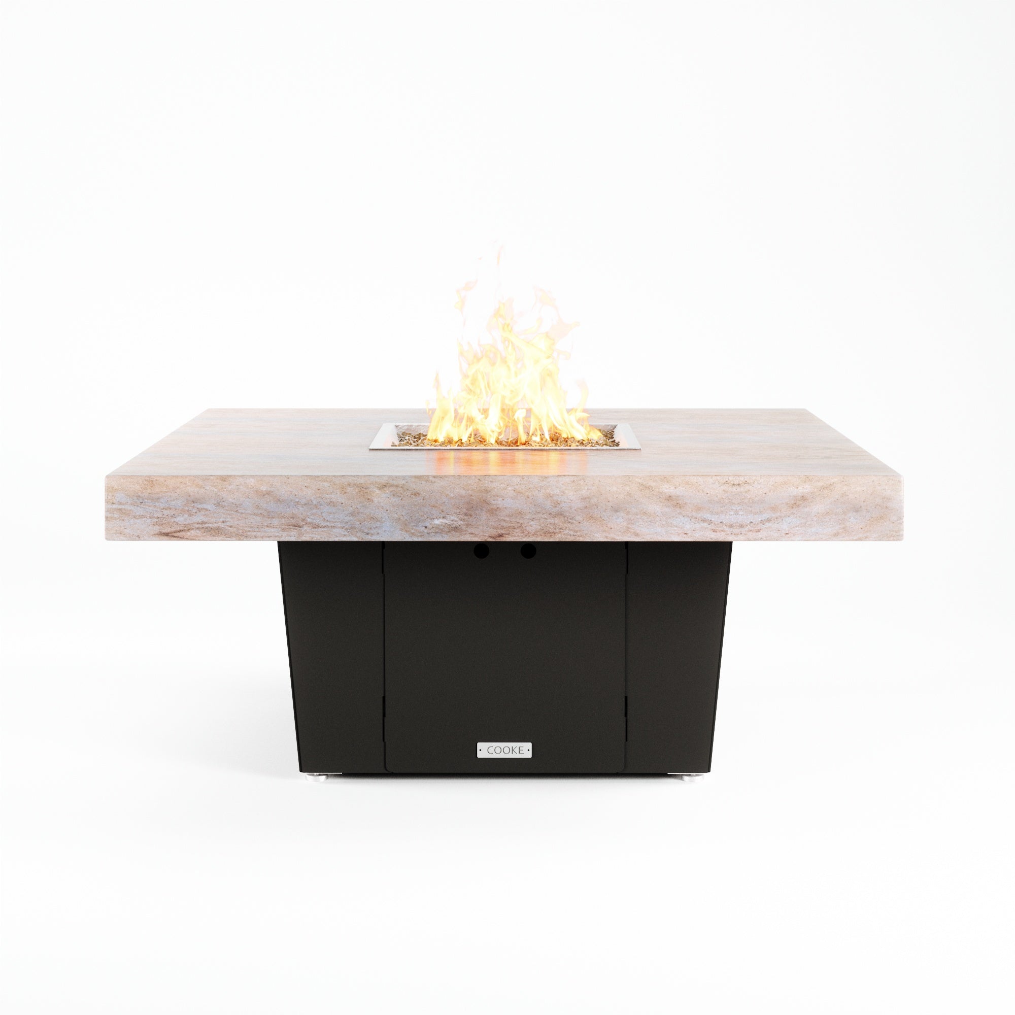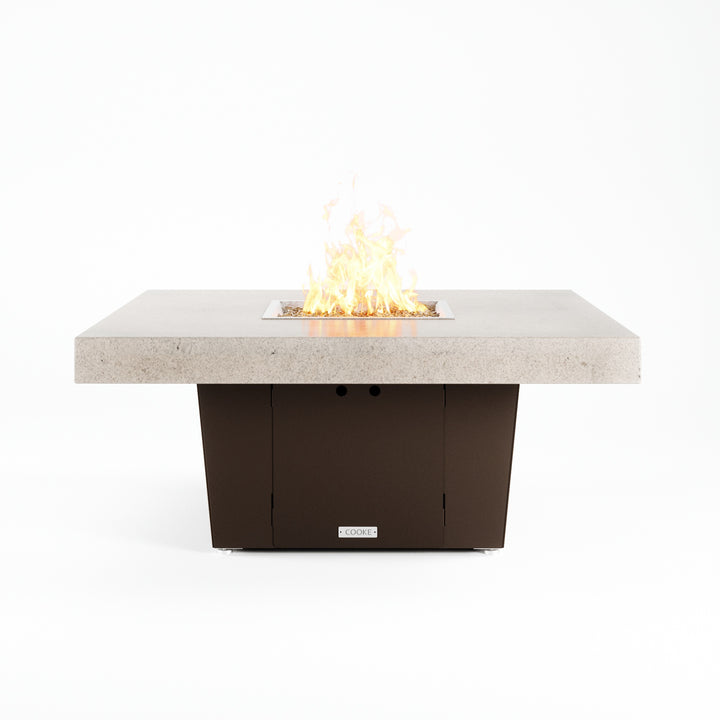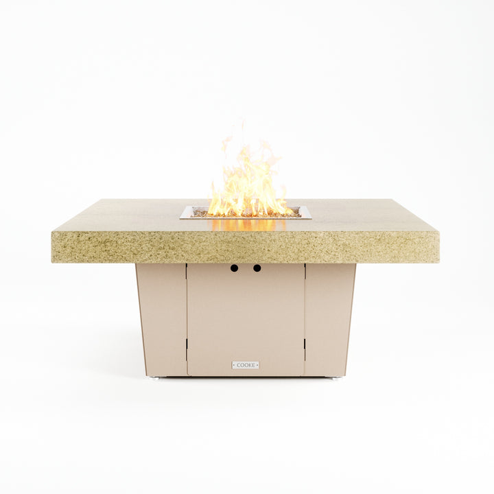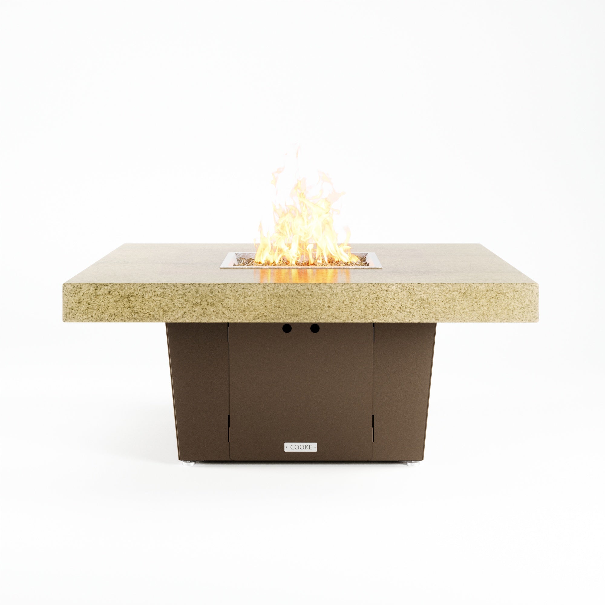 This table features tapered base for more footroom and a 4" thick top. Choose from COOKE’s selection of real, one-piece premium granite tops or satin finish powdercoat colors. COOKE granite is cut from real, one-of-a kind, slabs also used for high end architectural applications. Cover up the fire pit burner with the included stainless steel lid and your Cooke fire pit table transforms into a functional and beautiful garden or patio table. This table is perfect for your romantic backyard jungle meeting spot, modern clubhouse, or contemporary outdoor concrete patio.