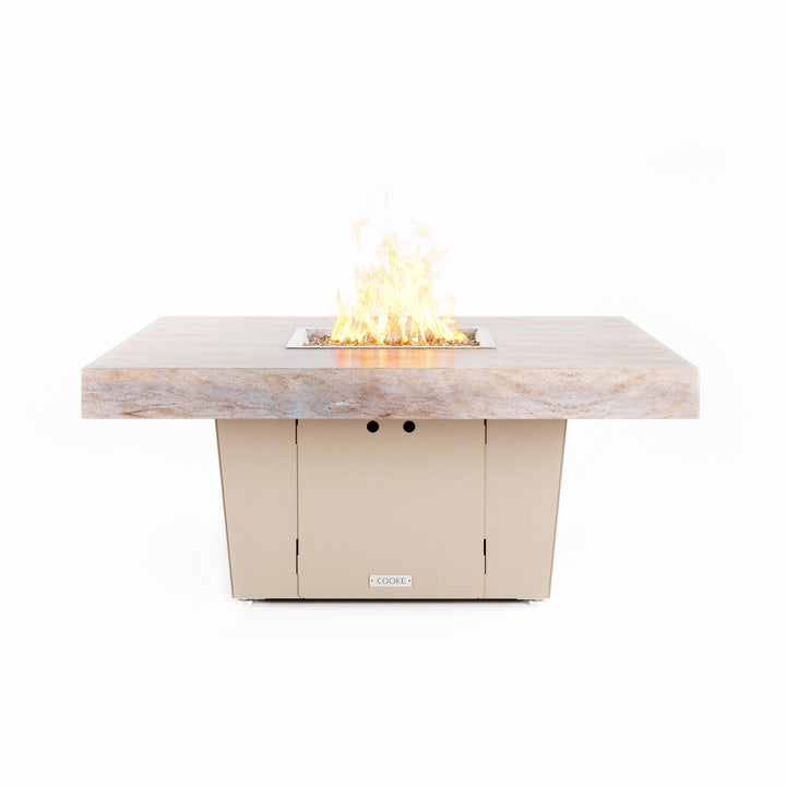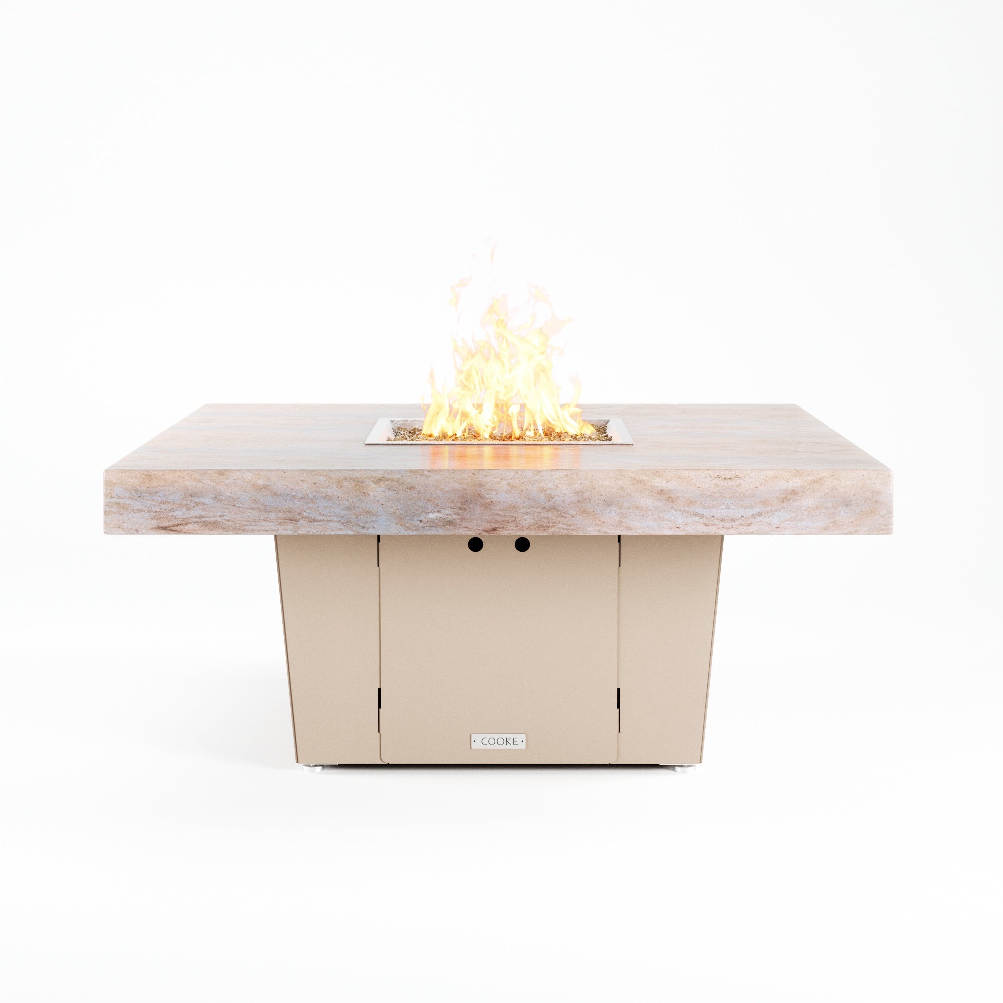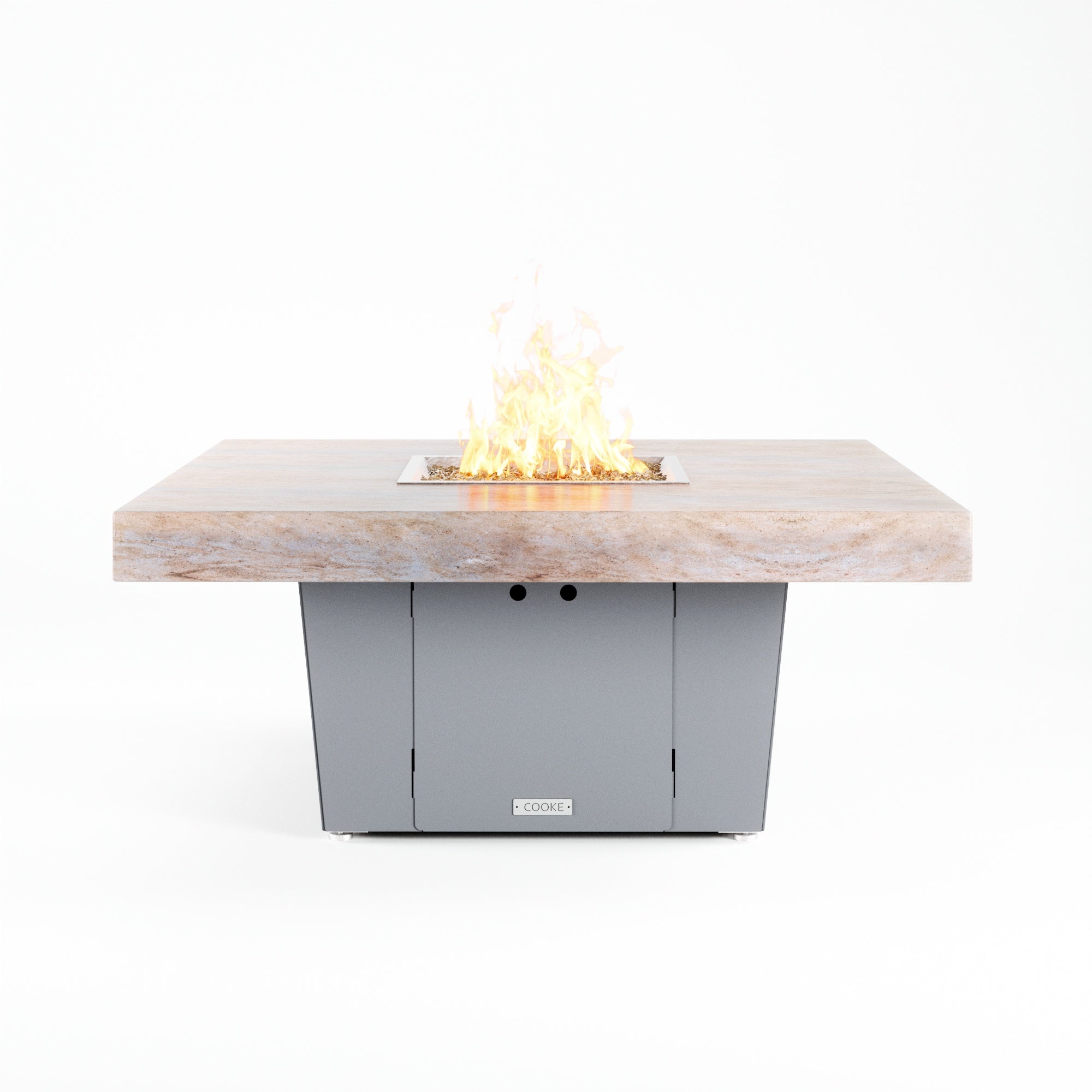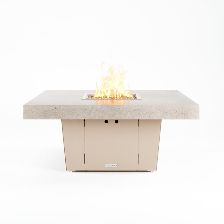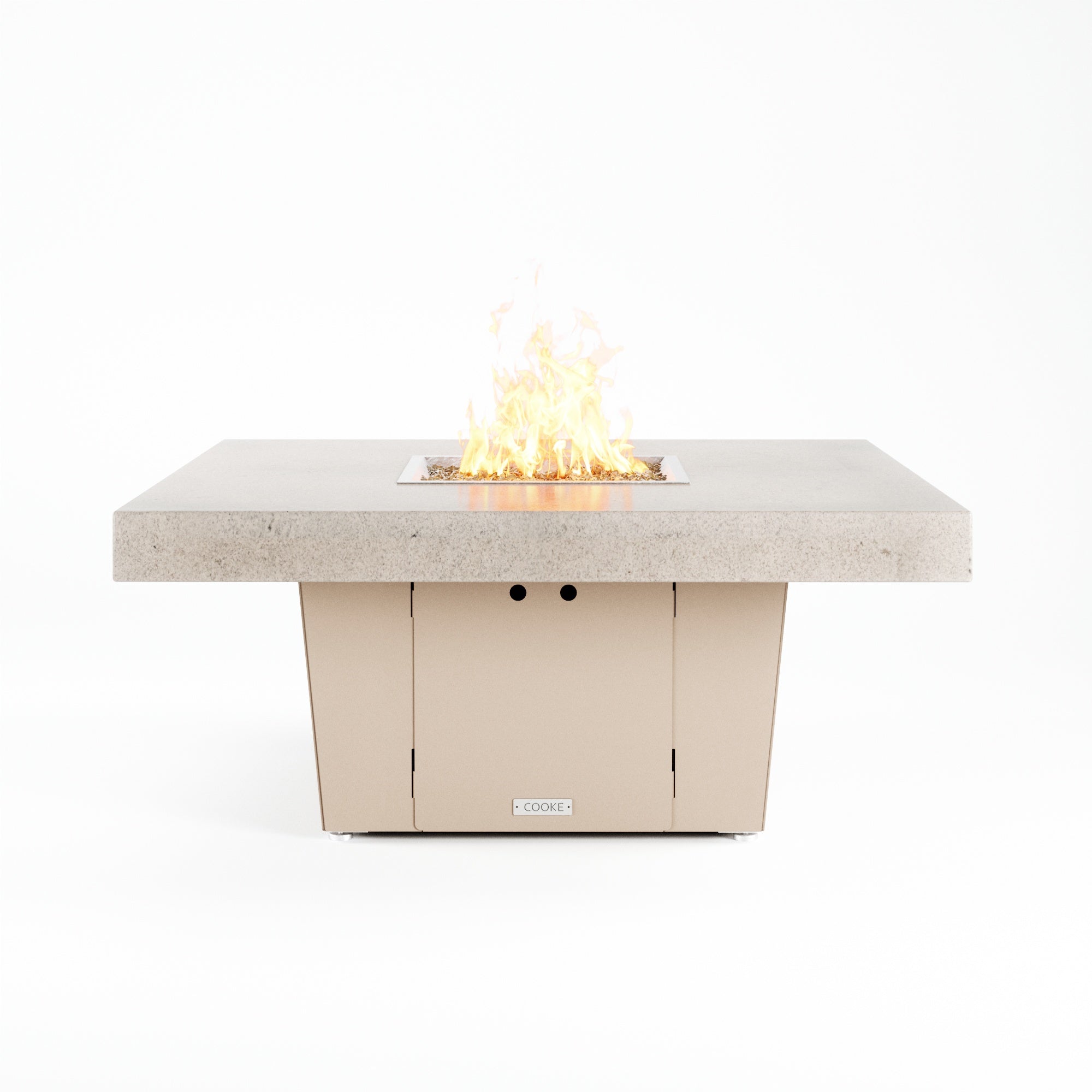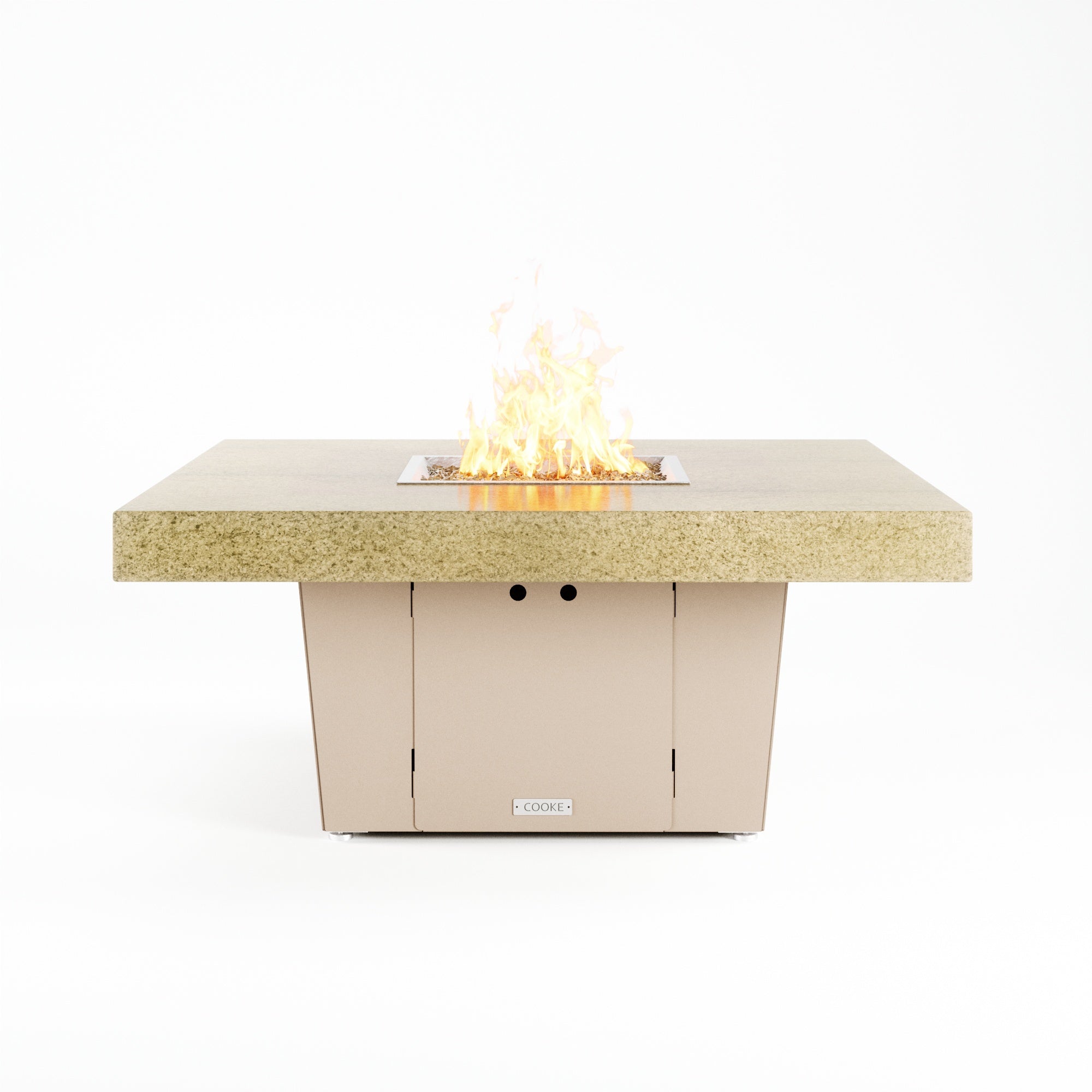 This table features tapered base for more footroom and a 4" thick top. Choose from COOKE’s selection of real, one-piece premium granite tops or satin finish powdercoat colors. COOKE granite is cut from real, one-of-a kind, slabs also used for high end architectural applications. Cover up the fire pit burner with the included stainless steel lid and your Cooke fire pit table transforms into a functional and beautiful garden or patio table. This table is perfect for your romantic backyard jungle meeting spot, modern clubhouse, or contemporary outdoor concrete patio.