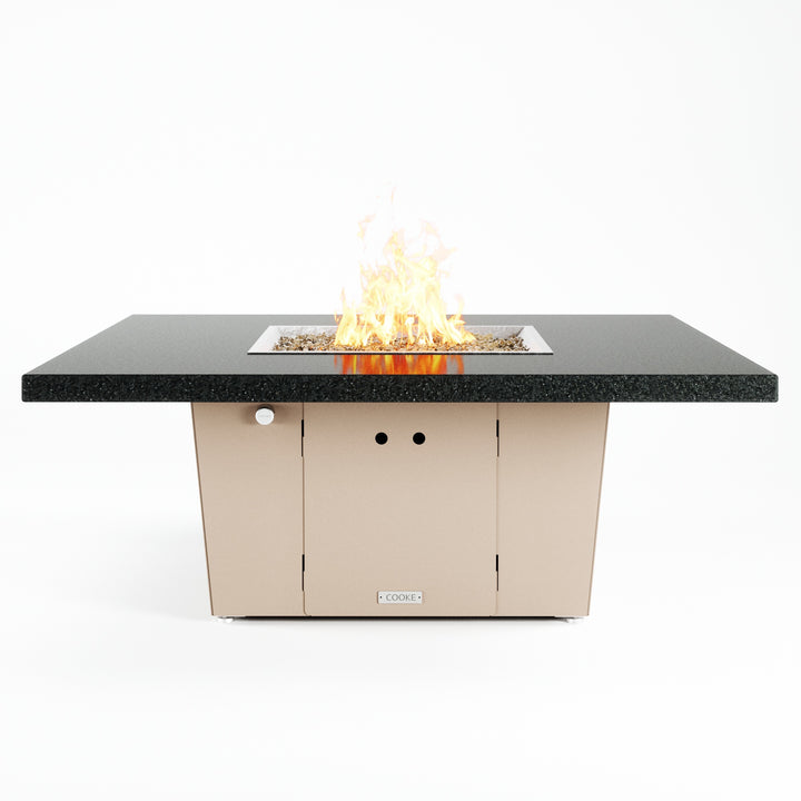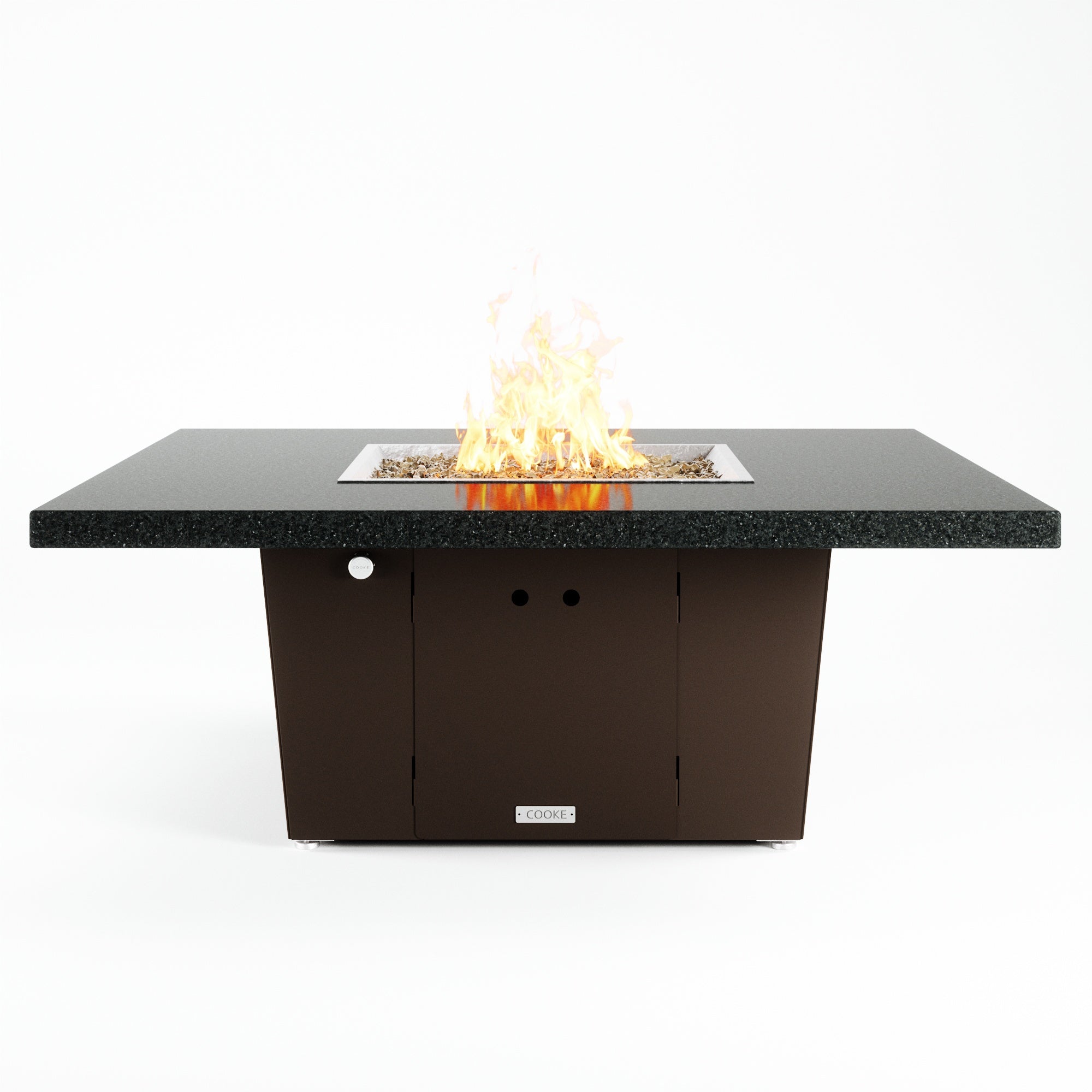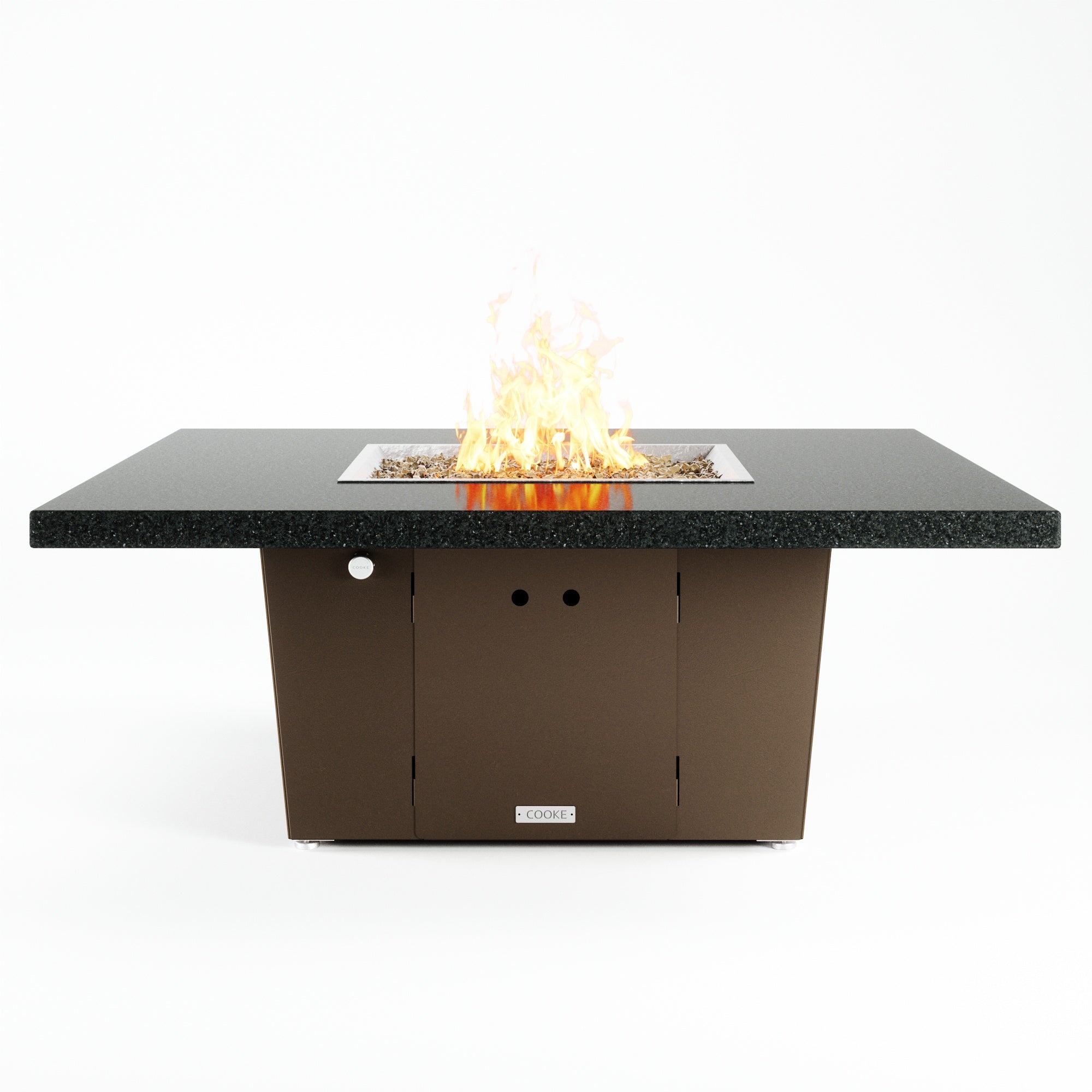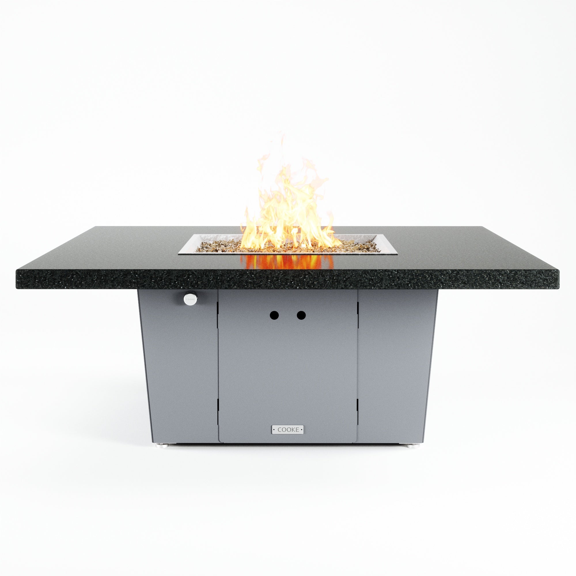 The 56" x 56" table top is a nice large size and accommodates seating up to 4-6. Our customers love this table's stain resistant aluminum or granite table top which has plenty of room for small plates and drinks. COOKE produces some of the finest fire pit tables in the industry which can be seen in the level of detail brought to the table top surface. Finally, a fire pit table with a premium table top! COOKE Parkway granite or marble tops are cut from one solid slab of stone and features perfectly bookmatched 4" edges. Granite is very durable when compared to porous concrete and it can add more depth and character if desired. Cover up the fire pit with the stainless steel burner lid and this table doubles as a premium outdoor stone table.
