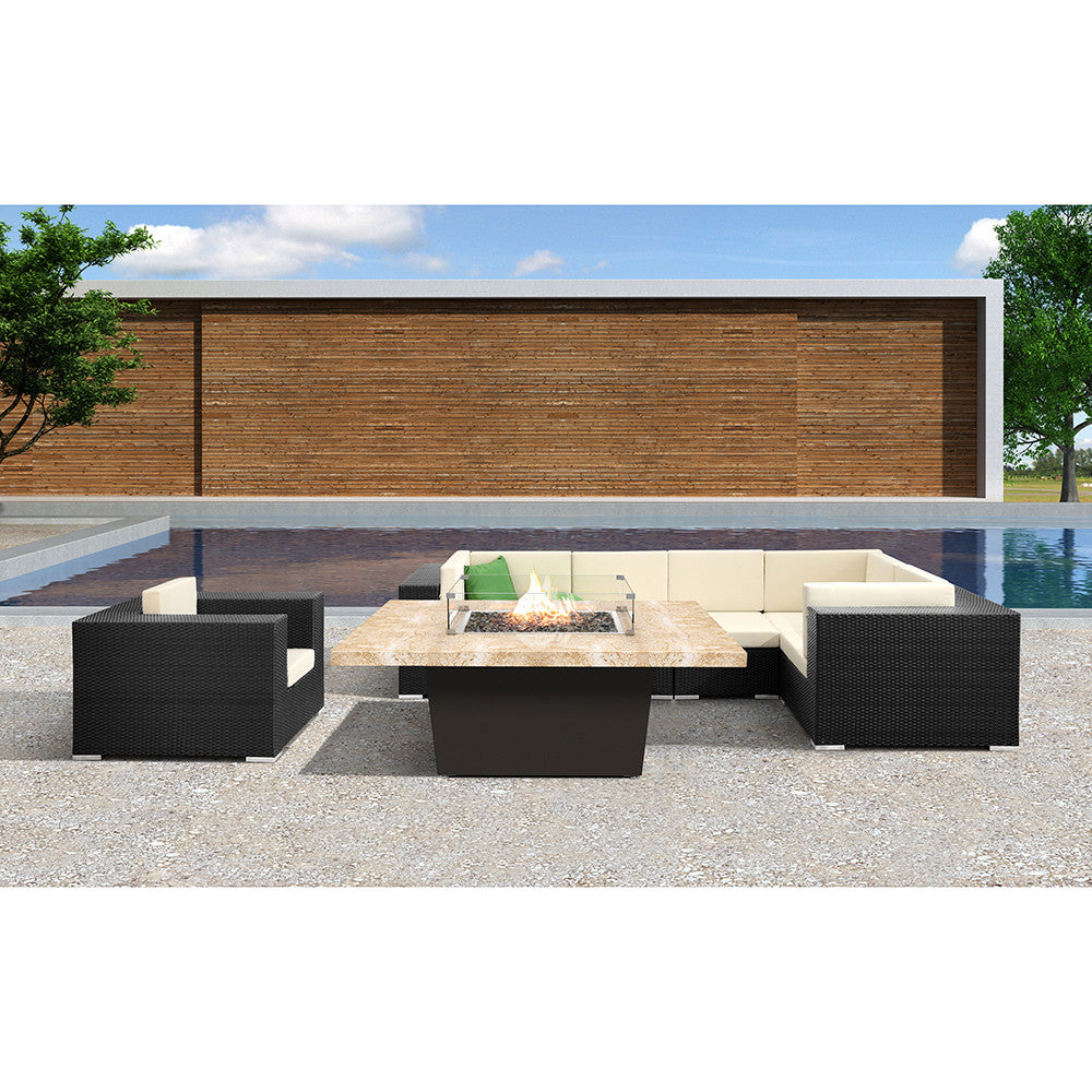 We offer this outdoor fire pit table with a propane or natural gas fuel source configuration. The 100k BTU fire is fully adjustable with stainless steel controls mounted on the table base which is leveled with adjustable stainless steel feet. The 24" x 24" fire pit holds your choice of lava rock, fireglass, or other media and produces a clean burning fire. A 5 gallon / 20 lb. propane tank is hidden in the base of the table an easily accessed via a color-matched panel door. There are no hoses or tanks outside of the table. The natural gas version is connected to your home's natural gas stub with our stainless steel flex lines. Perfect for new construction or hardscape renovations. We provide you all the hoses and fittings to connect your fire pit to either fuel source and get the job done!