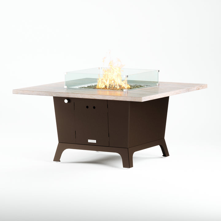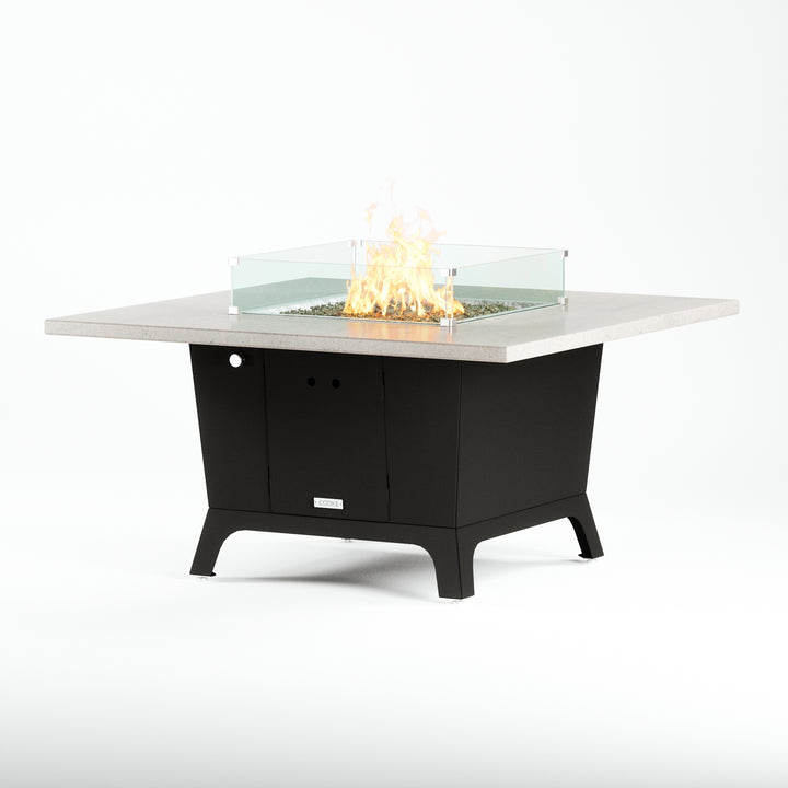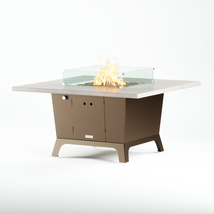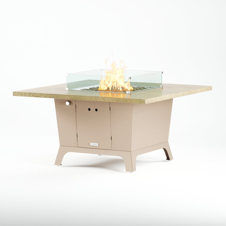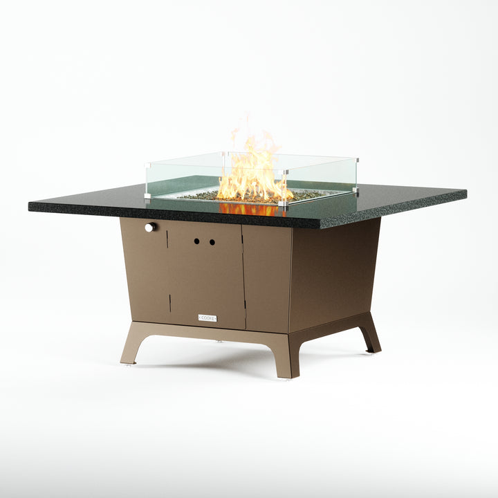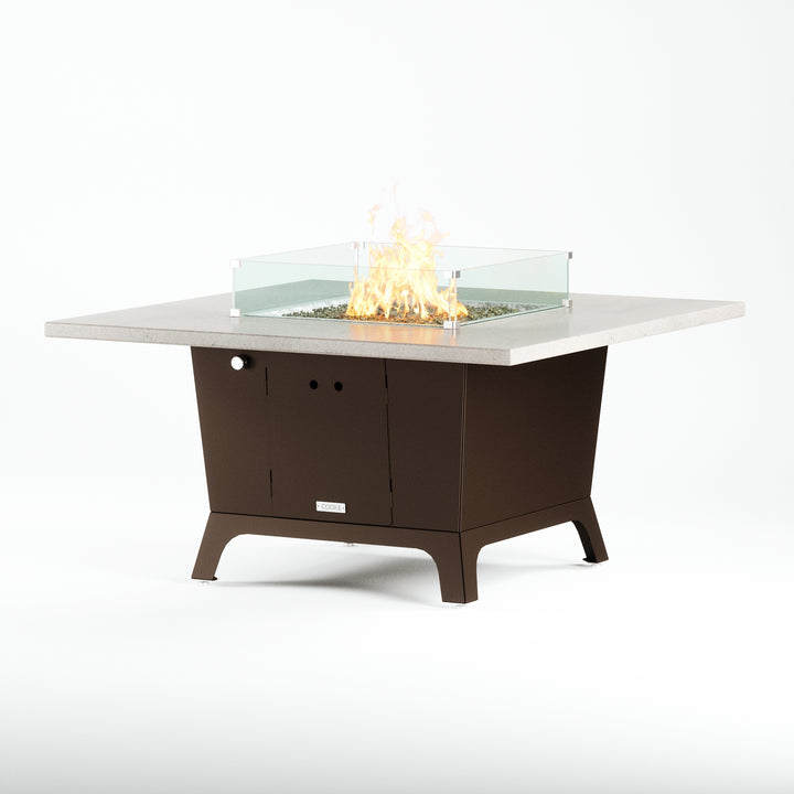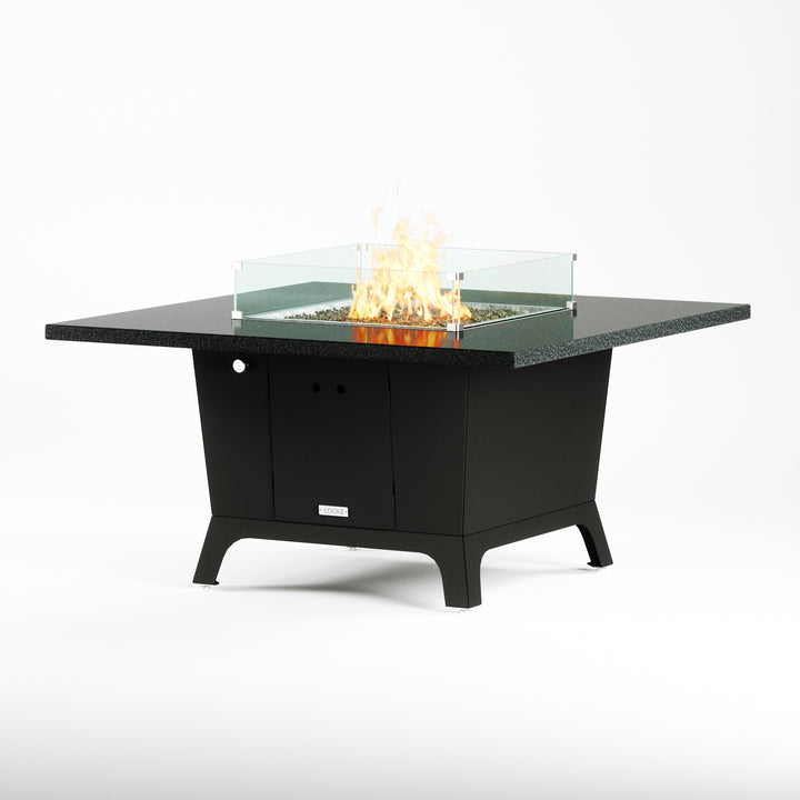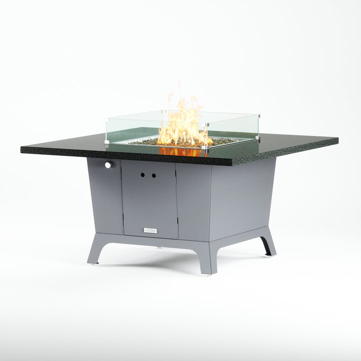 The Parkway 56" x 56" dining table is the perfect large square outdoor fire pit table. This table features a 56" x 56" premium stone table top which comfortably seats 4. With the Parkway 56" x 56" you get a generous amount of table top space for everyday use - you will enjoy it when dining, having drinks with friends, or for placing your book, tablet, or newspaper. Choose from our selection of ultra durable powder coat finishes and stone tops to customize your table and make it perfectly match your space.