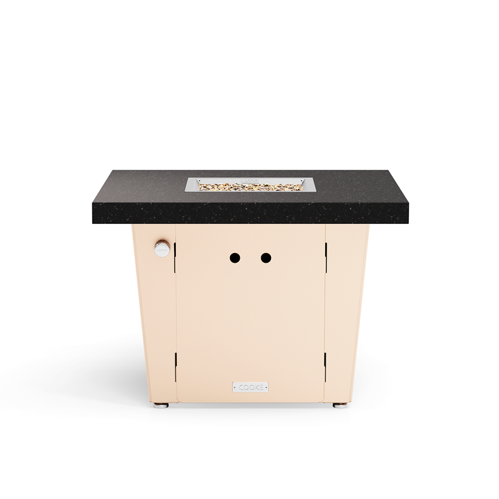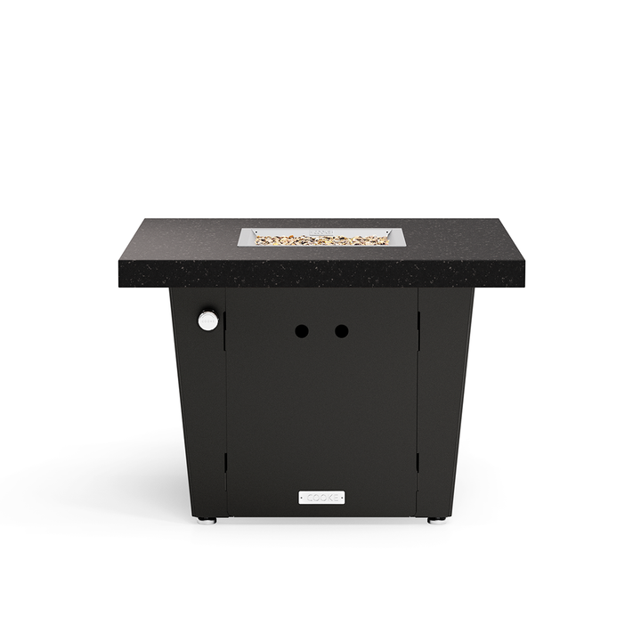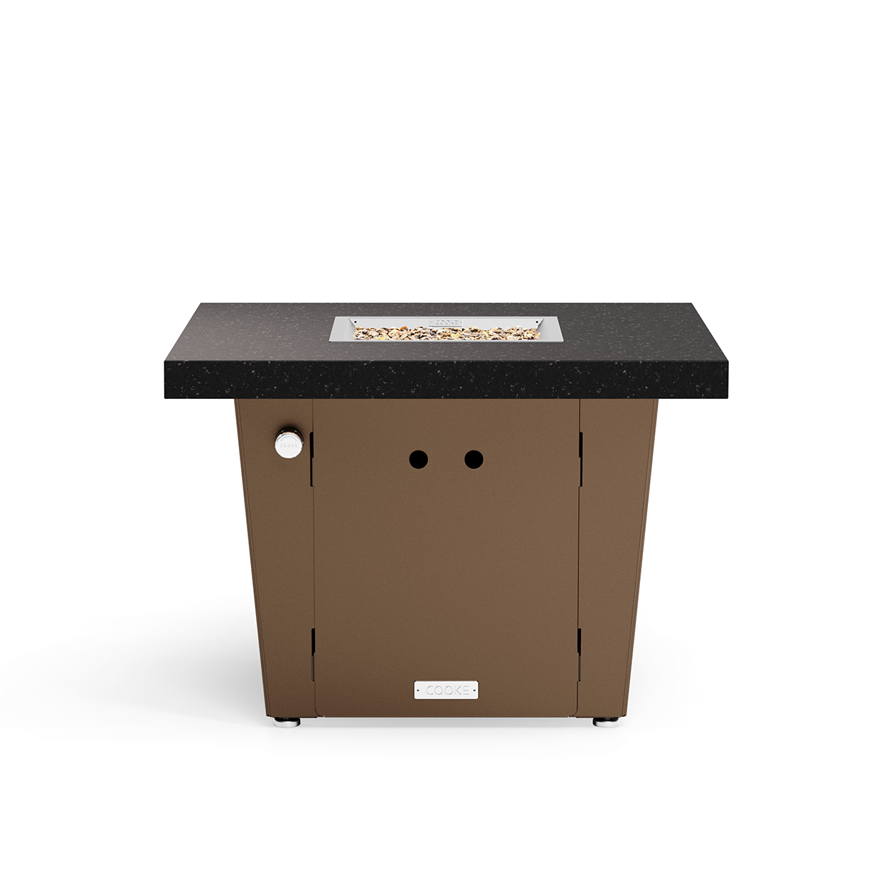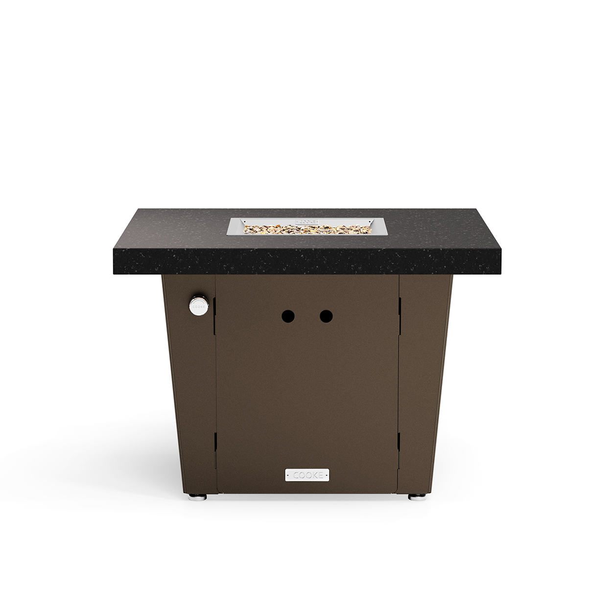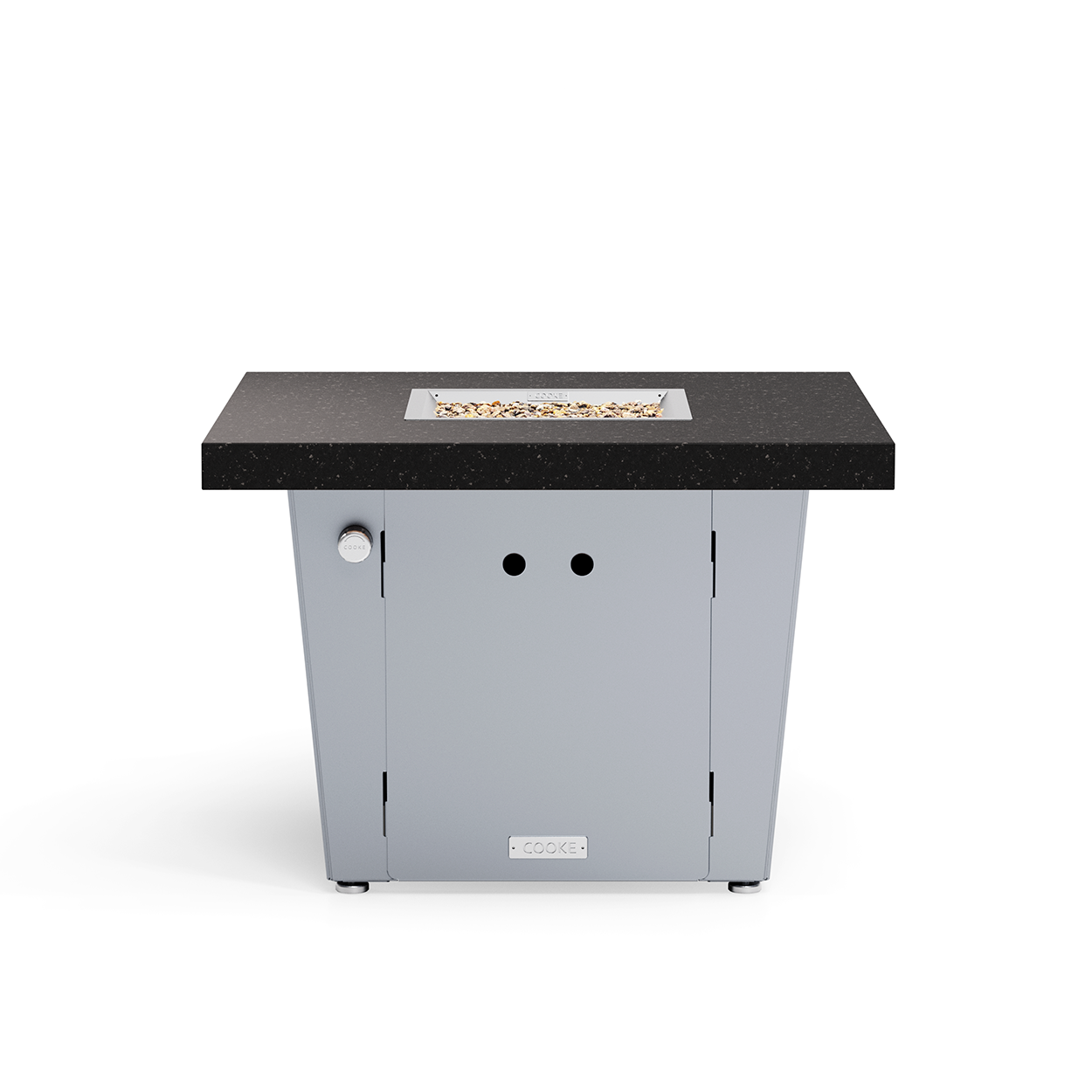 The Parkway fire pit table is COOKE's solution to a great-looking, made-in-USA square table that is compact and a great value. This table has a clean modern design and uses premium finishes that will continue to look amazing. With a selection of granite stone tabletops, the COOKE Parkway is a great table for those who love the look and feel of solid durable surface.