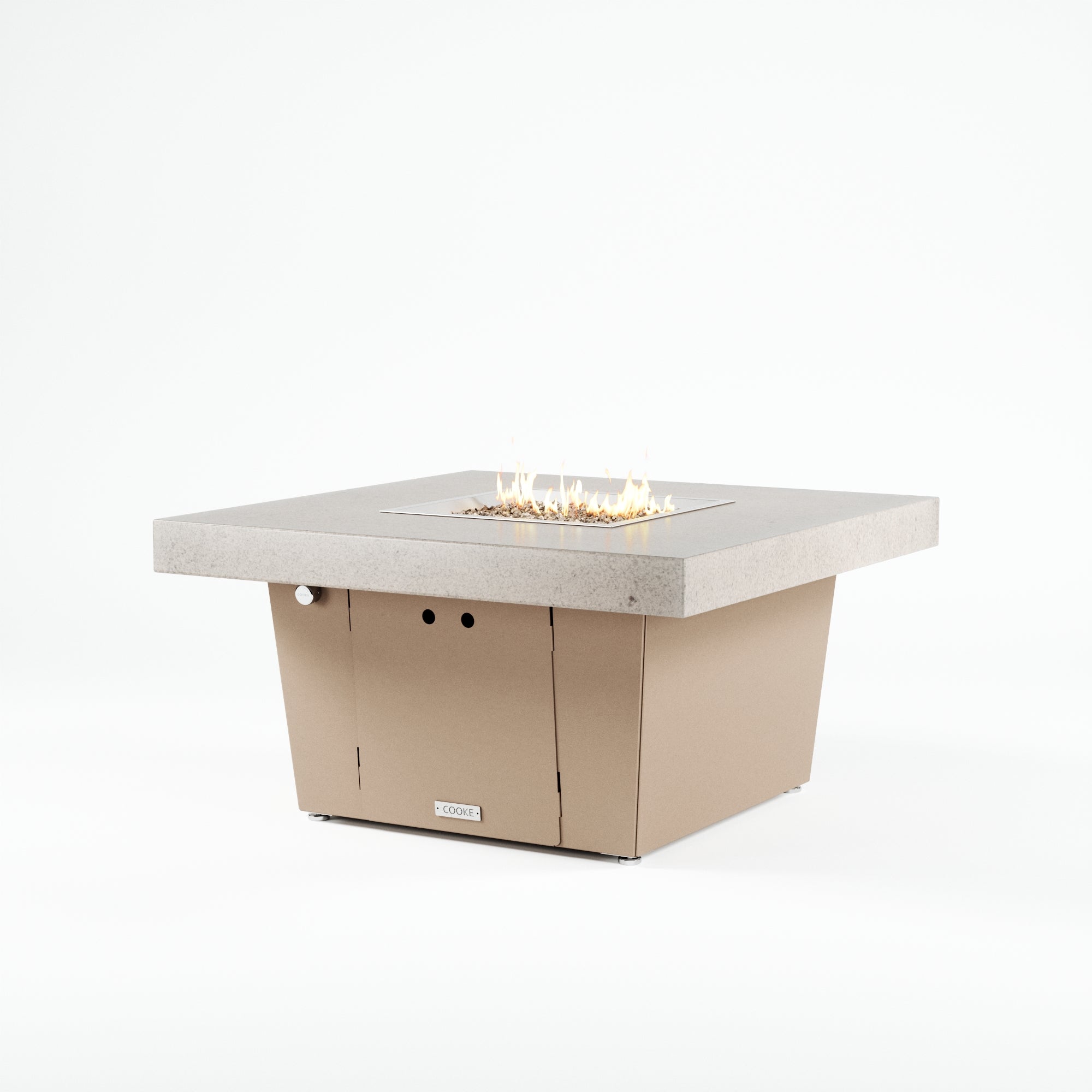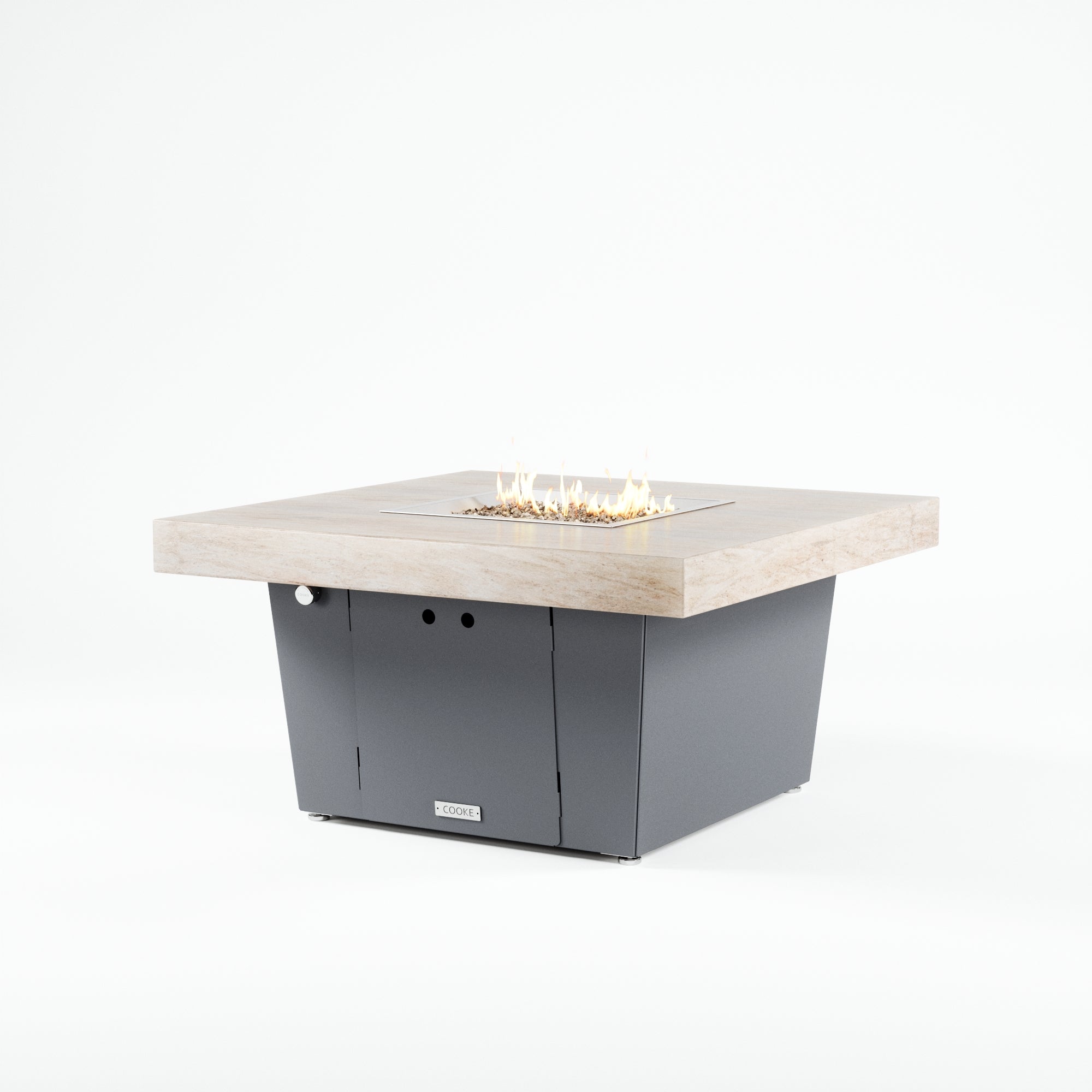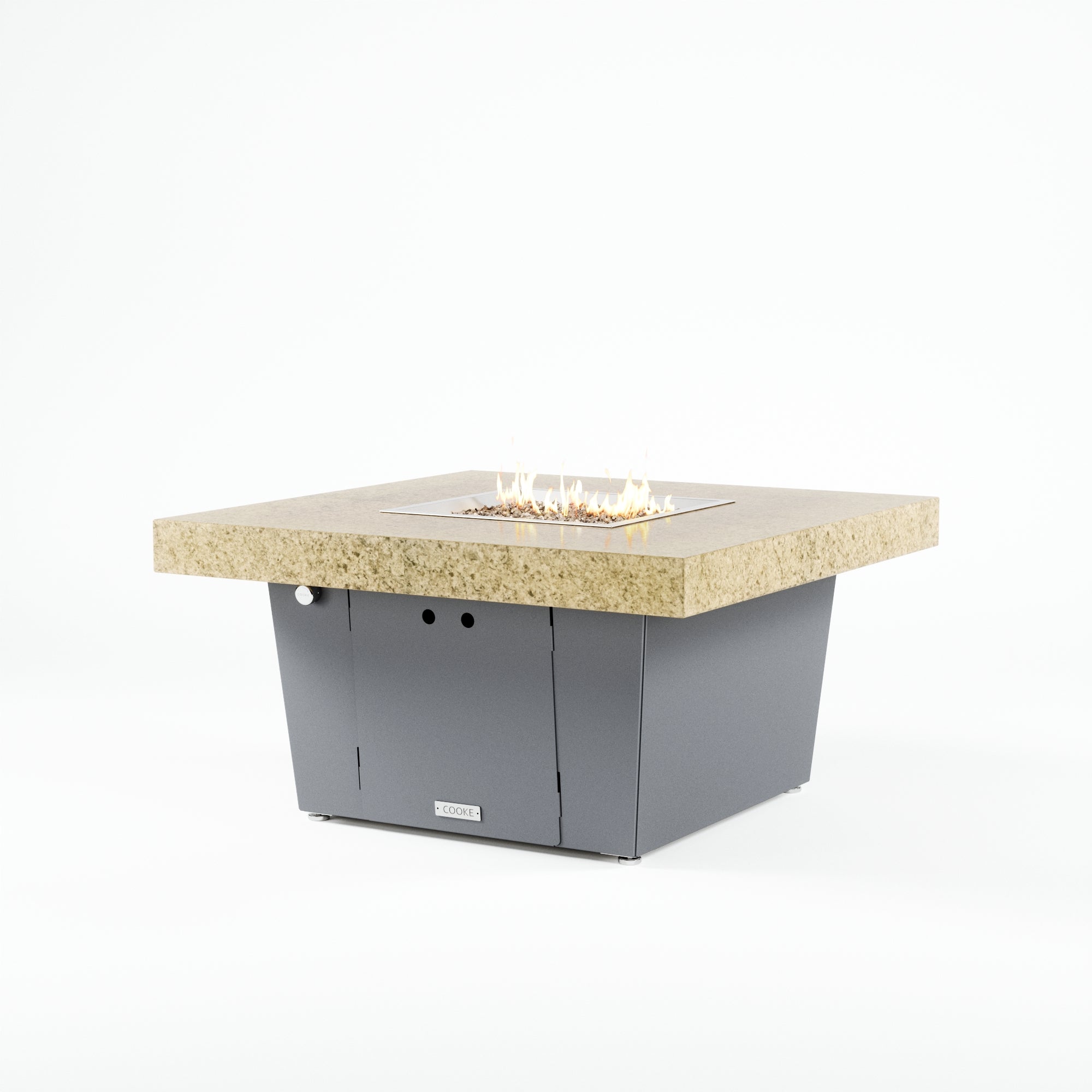 The Parkway fire pit table is COOKE's solution to a great-looking, quality, made-in-USA square fire pit table that is versatile and a great value. This chat height fire pit table features a generous table top with 3cm edge on a 21" tall slightly tapered base.