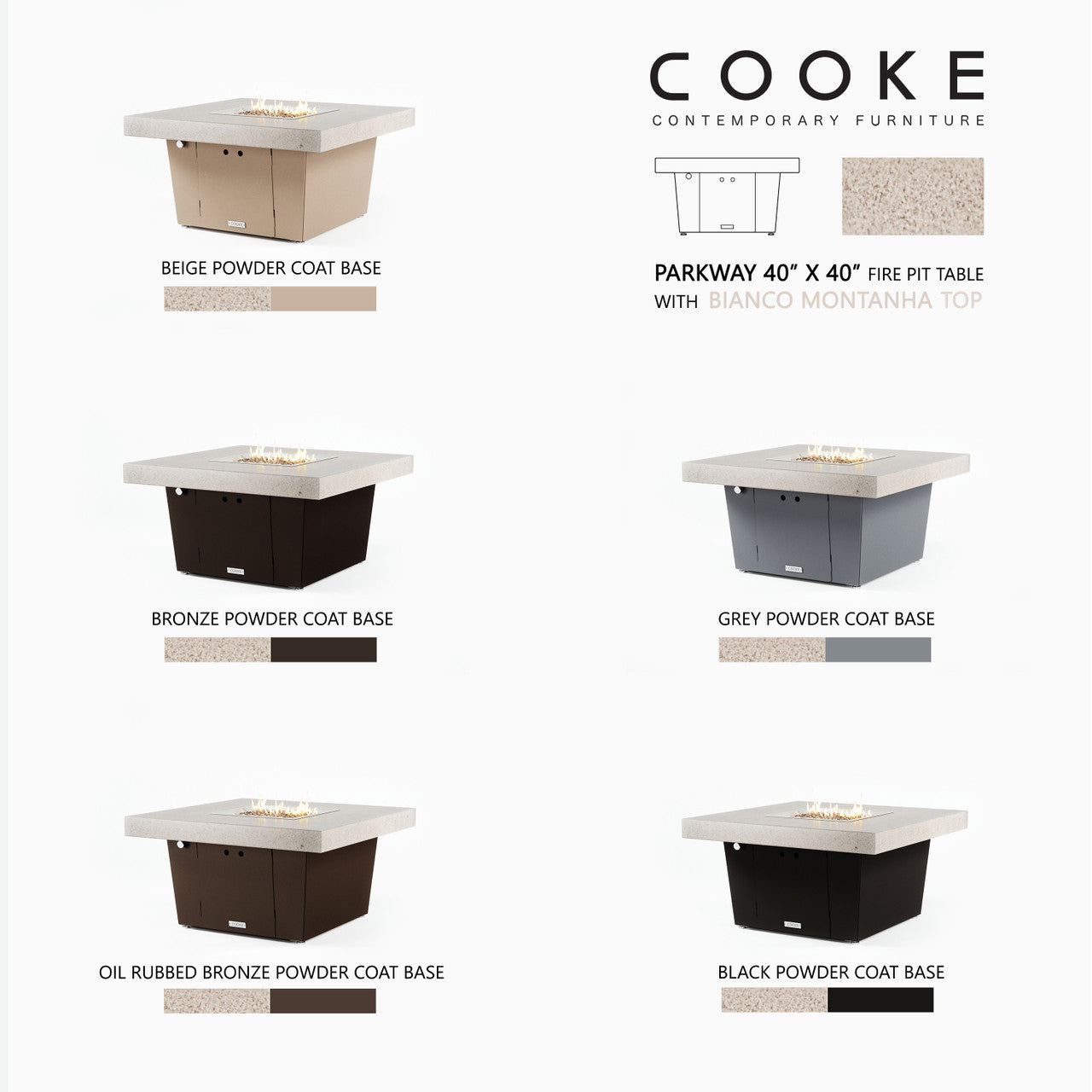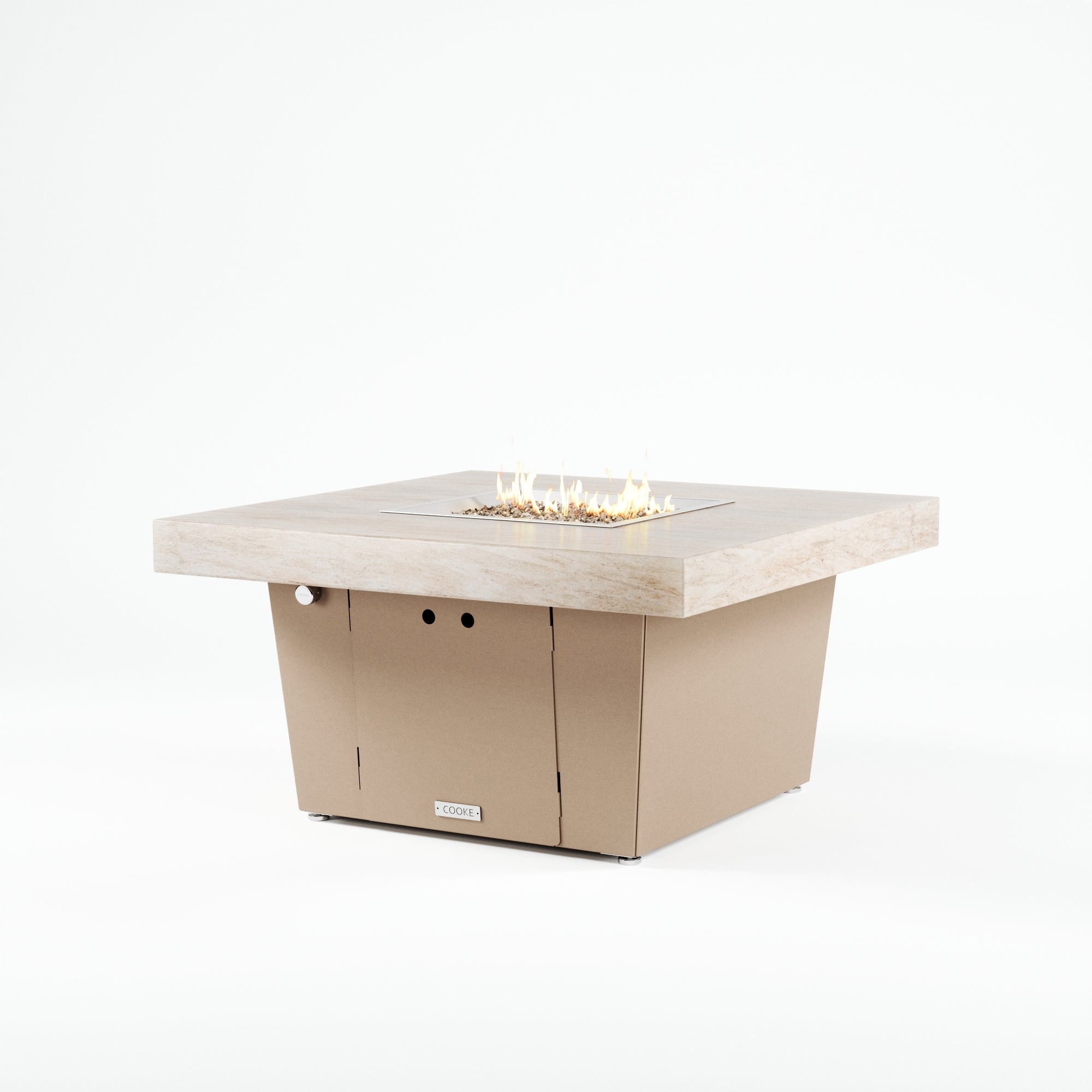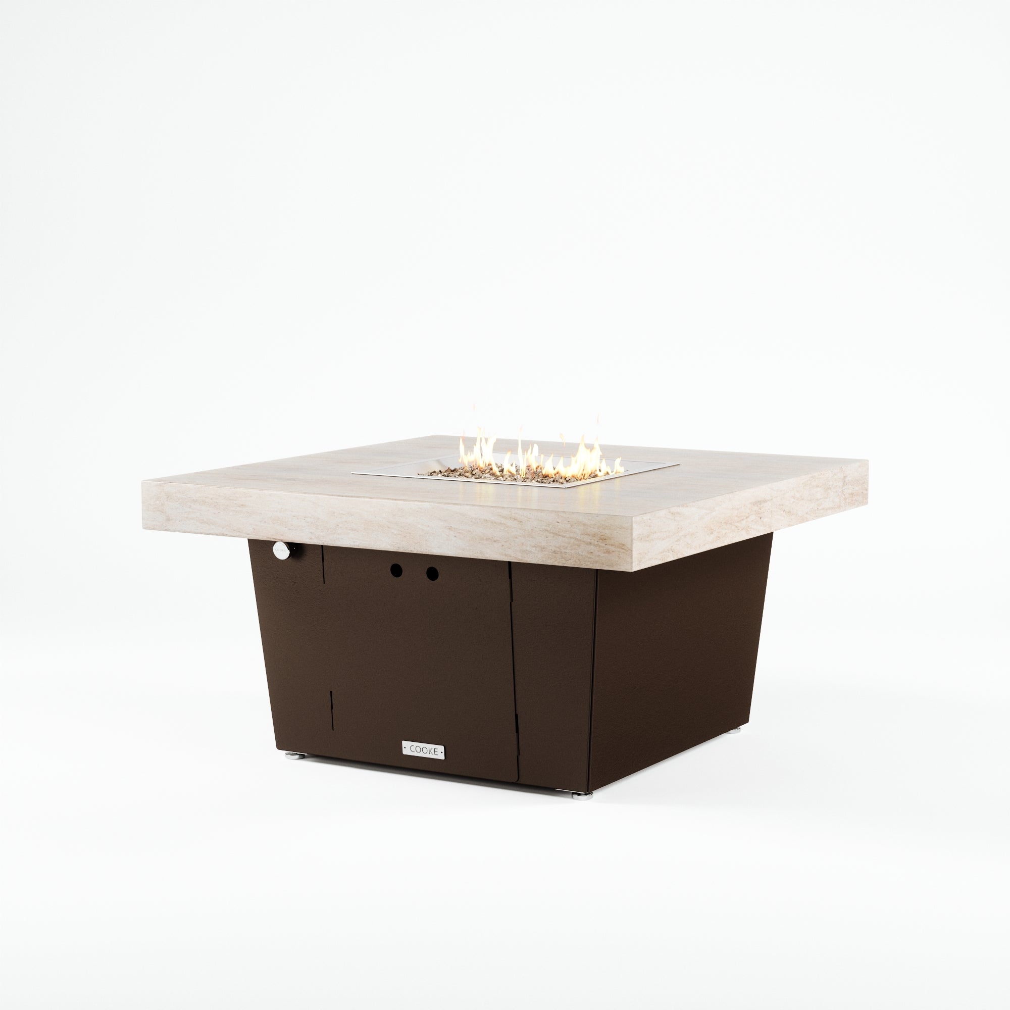 The Parkway fire pit table is COOKE's solution to a great-looking, quality, made-in-USA square fire pit table that is versatile and a great value. This chat height fire pit table features a generous table top with 3cm edge on a 21" tall slightly tapered base.