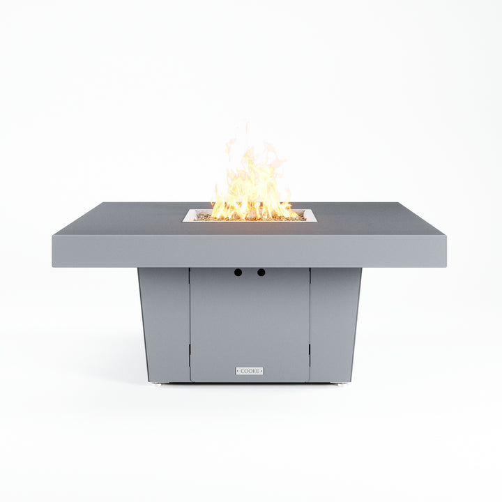 Designed and made in California, this COOKE Parkway features an oversized 48" x 48" Grey top that is going to look great on the patio or next to the pool. This table features everything you want in a square fire pit table. Choose from the bronze, black, or grey base and decorative fire pit media to customize the table like you want.