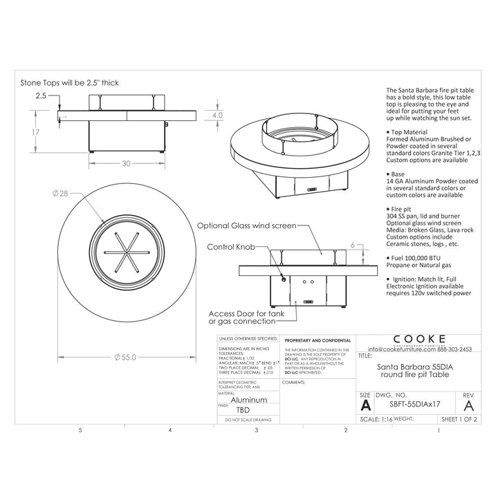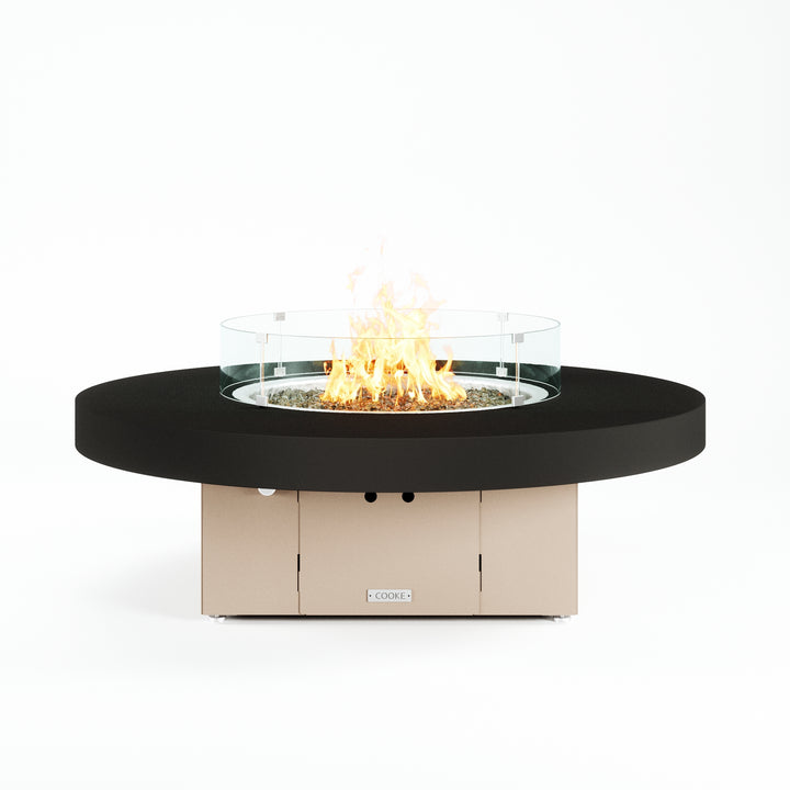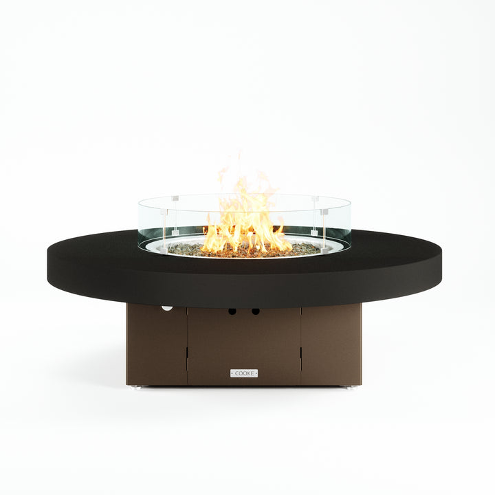 The 55" round Santa Barbara fire pit table is the perfect size and accommodates seating up to 4-6. Our customers love this table's stain resistant aluminum table top which has plenty of room for plates and drinks. COOKE produces some of the finest fire pit tables in the industry which can be seen in the level of detail brought to the table top surface. You will enjoy your table fire or not!
