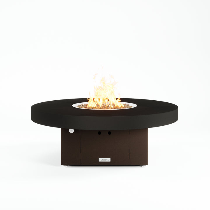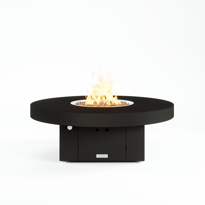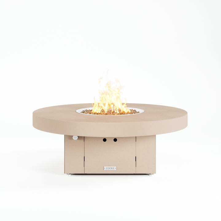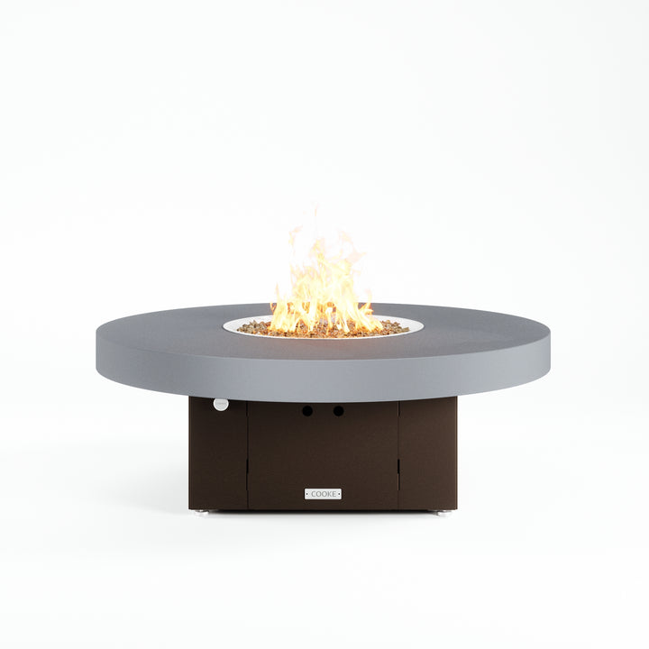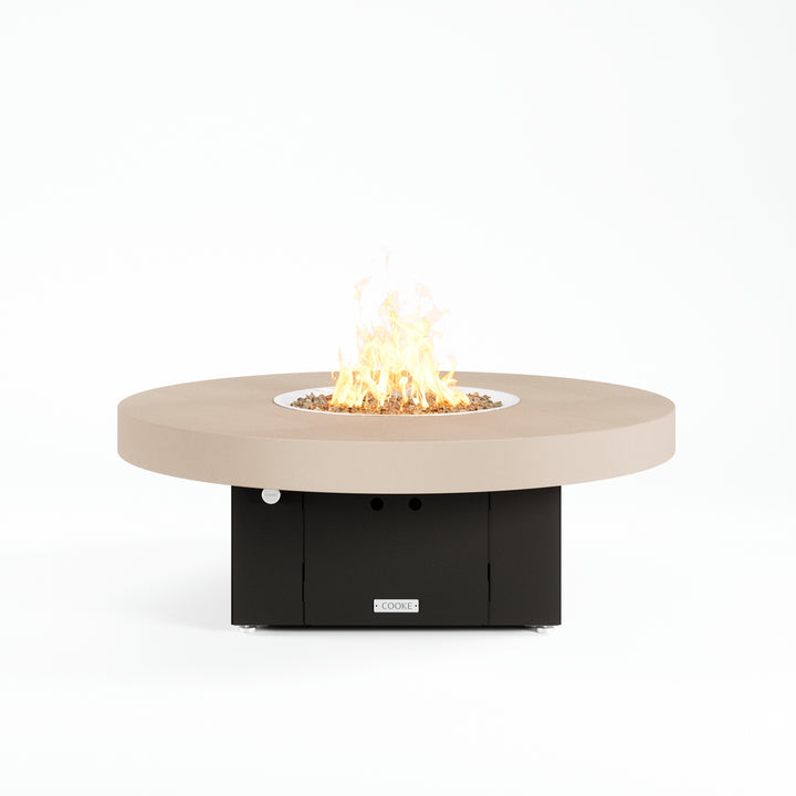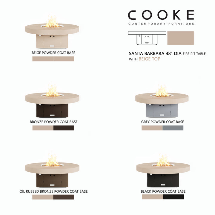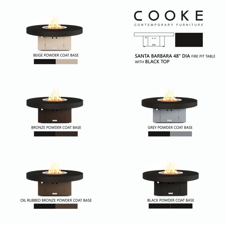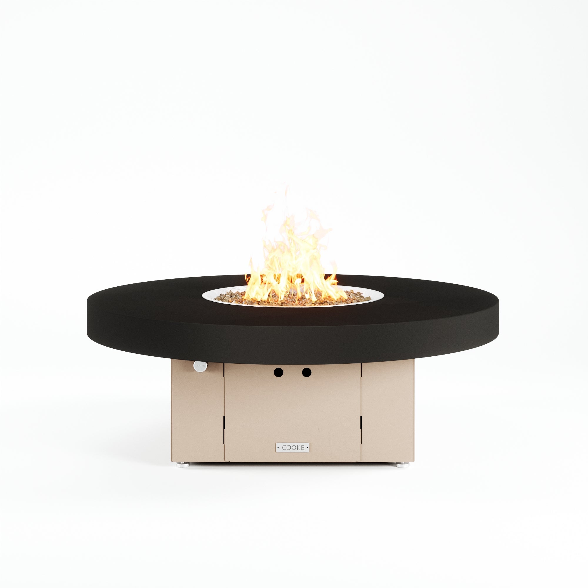 The 48" round Santa Barbara fire pit table is the perfect medium size and accommodates seating up to 4. Our customers love this table's stain resistant aluminum table top which has plenty of room for small plates and drinks. COOKE produces some of the finest fire pit tables in the industry which can be seen in the level of detail brought to the table top surface. Finally, a fire pit table with a premium table top! Cover up the fire pit with the stainless steel burner lid and this table doubles as a premium outdoor stone table.