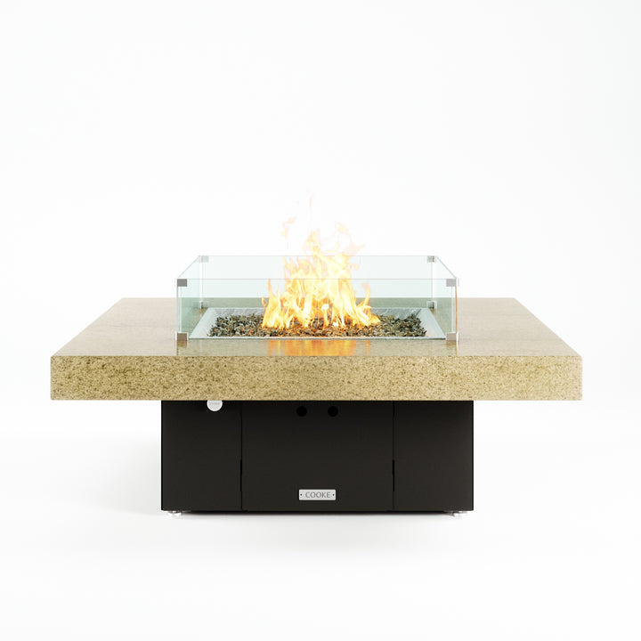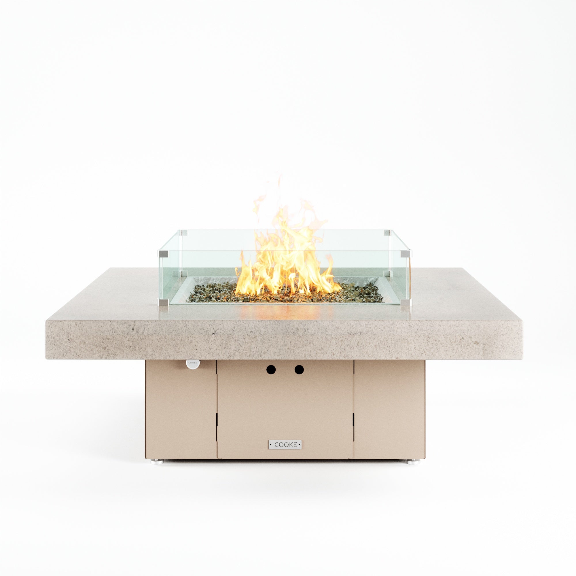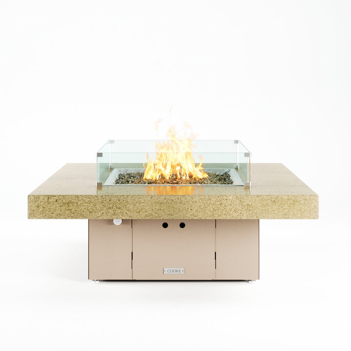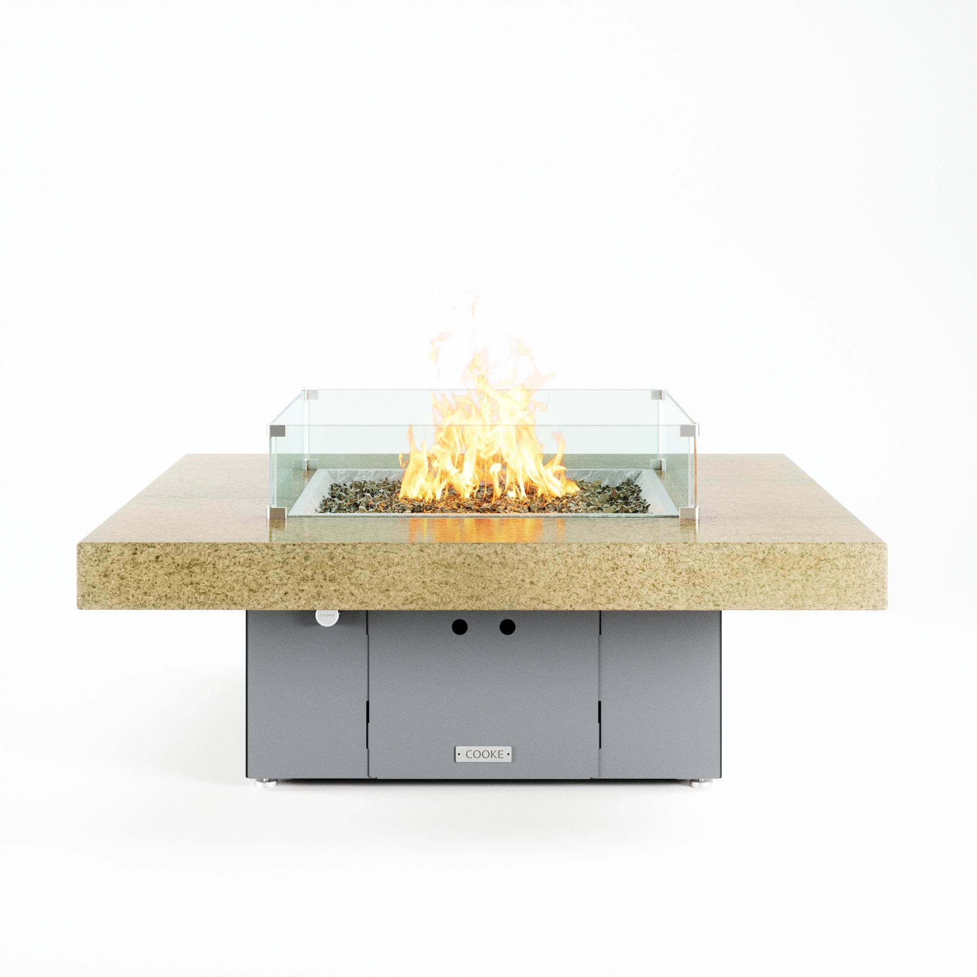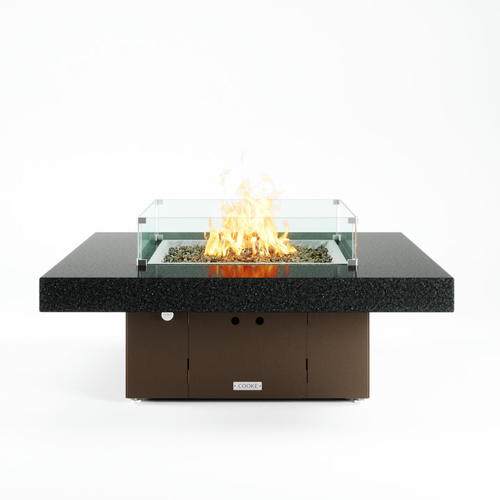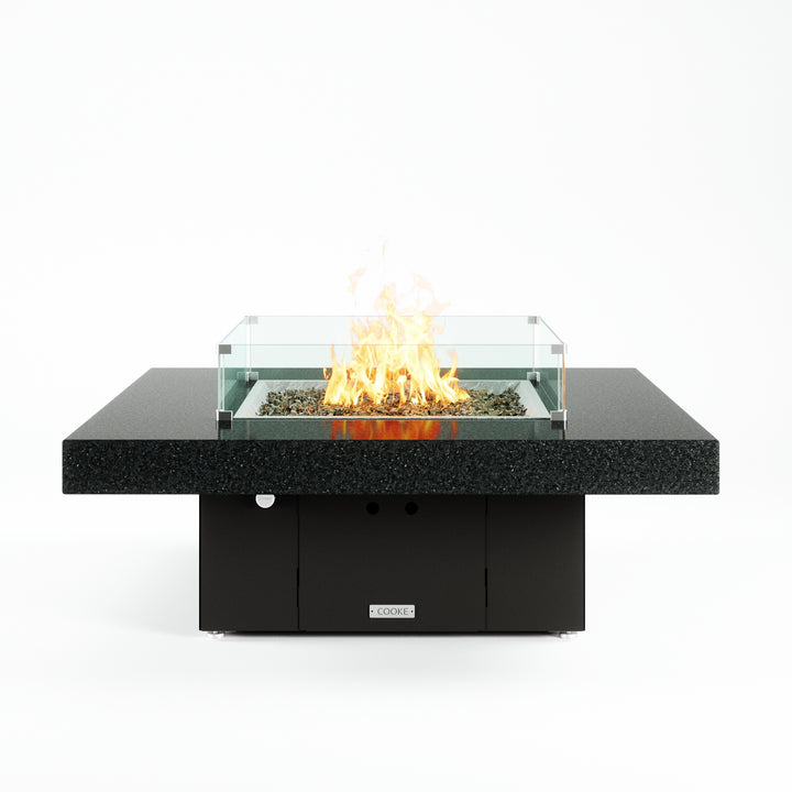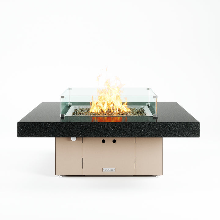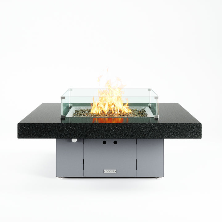 The Santa Barbara outdoor fire pit table is COOKE's contemporary lounge height table with oversized top. This impressive table features a solid, simple, straight sided block base and thick granite or aluminum table top. The Santa Barbara is available in a wide variety of color combinations - a perfect match for your own hardscaped backyard, pool areas, or outdoor living space. Built with the same legendary COOKE quality, this table conveys an impression of permanence, tranquility, and comfort.