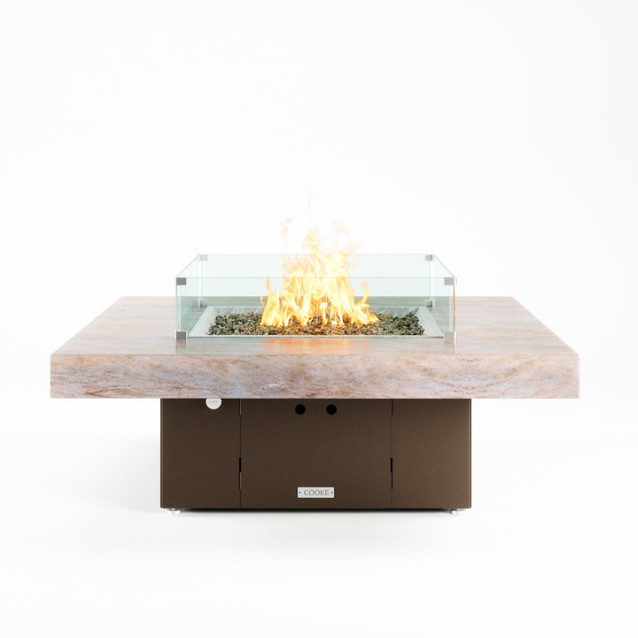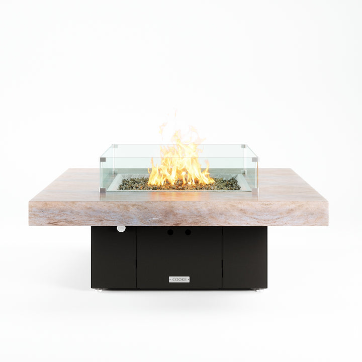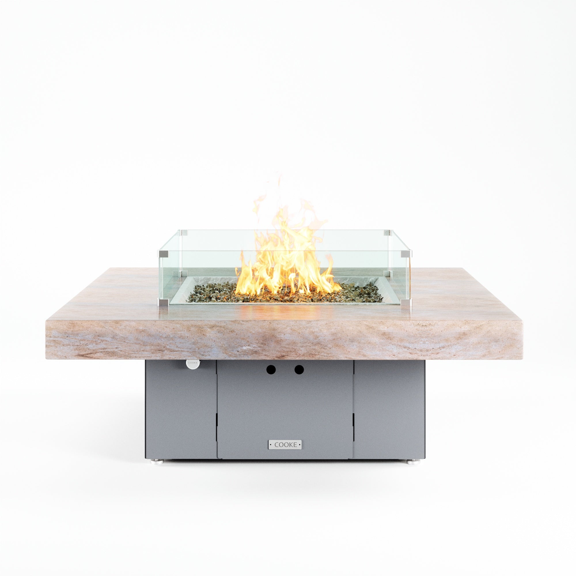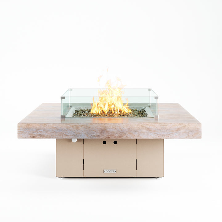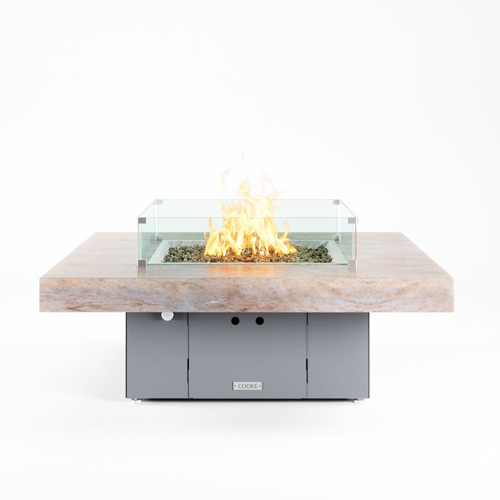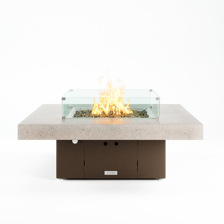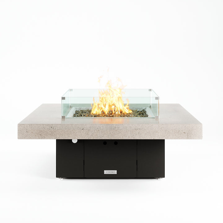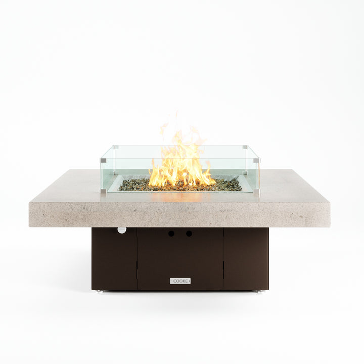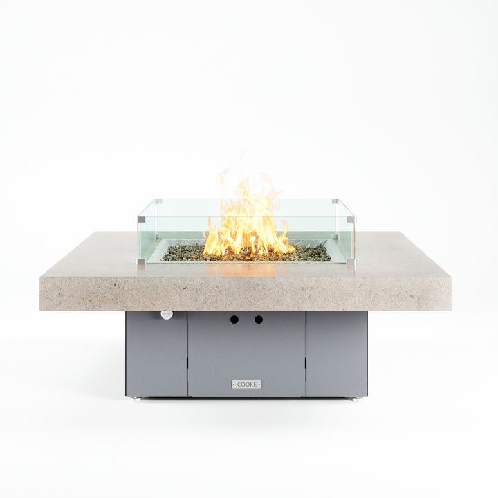 The Santa Barbara outdoor fire pit table is COOKE's contemporary lounge height table with oversized top. This impressive table features a solid, simple, straight sided block base and thick granite or aluminum table top. The Santa Barbara is available in a wide variety of color combinations - a perfect match for your own hardscaped backyard, pool areas, or outdoor living space. Built with the same legendary COOKE quality, this table conveys an impression of permanence, tranquility, and comfort.