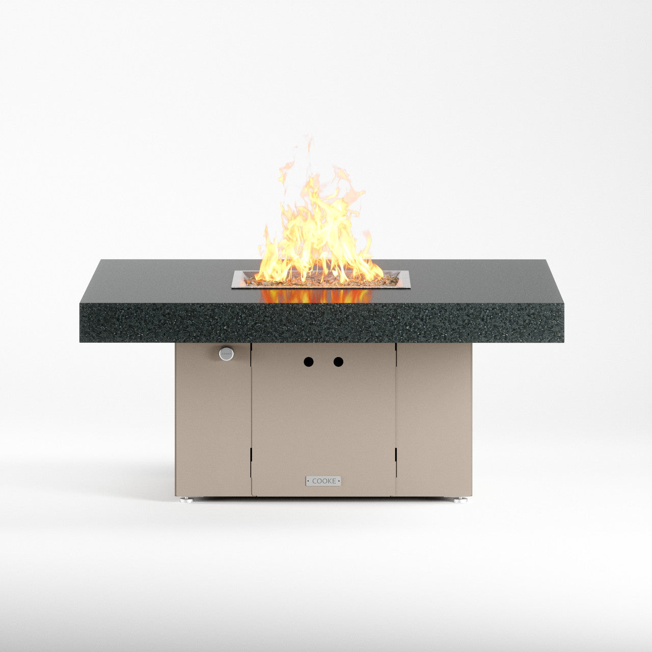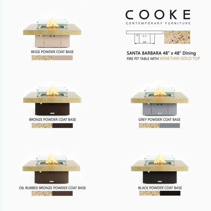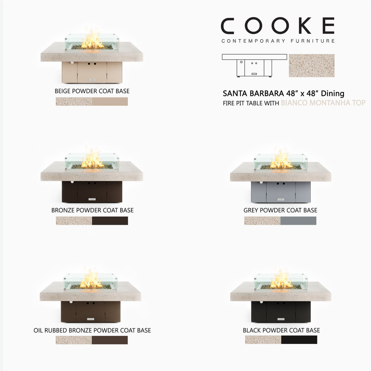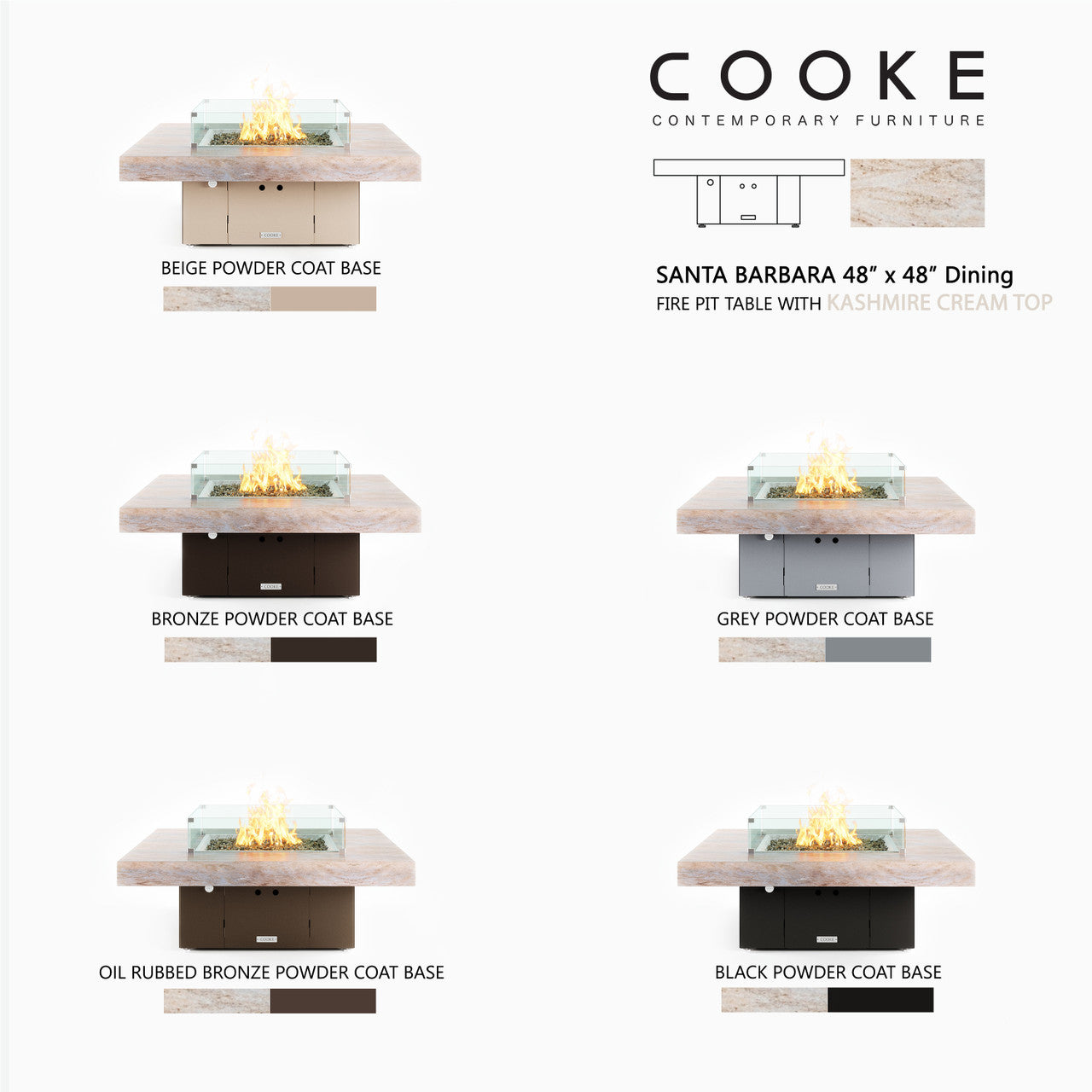 The Santa Barbara outdoor fire pit table is COOKE's contemporary lounge height table with oversized top. This impressive table features a solid, simple, straight sided block base and thick granite or aluminum table top. The Santa Barbara is available in a wide variety of color combinations - a perfect match for your own hardscaped backyard, pool areas, or outdoor living space. Built with the same legendary COOKE quality, this table conveys an impression of permanence, tranquility, and comfort.