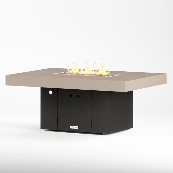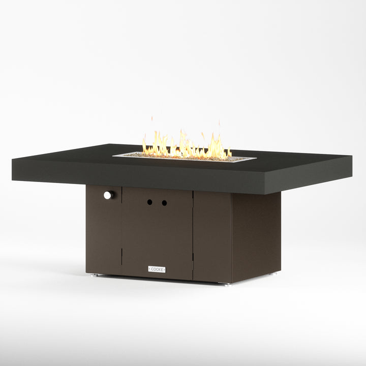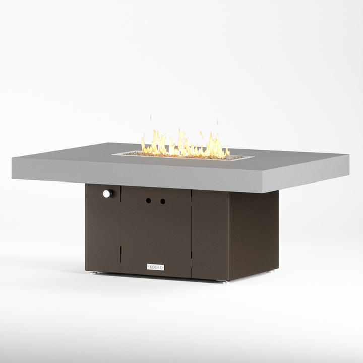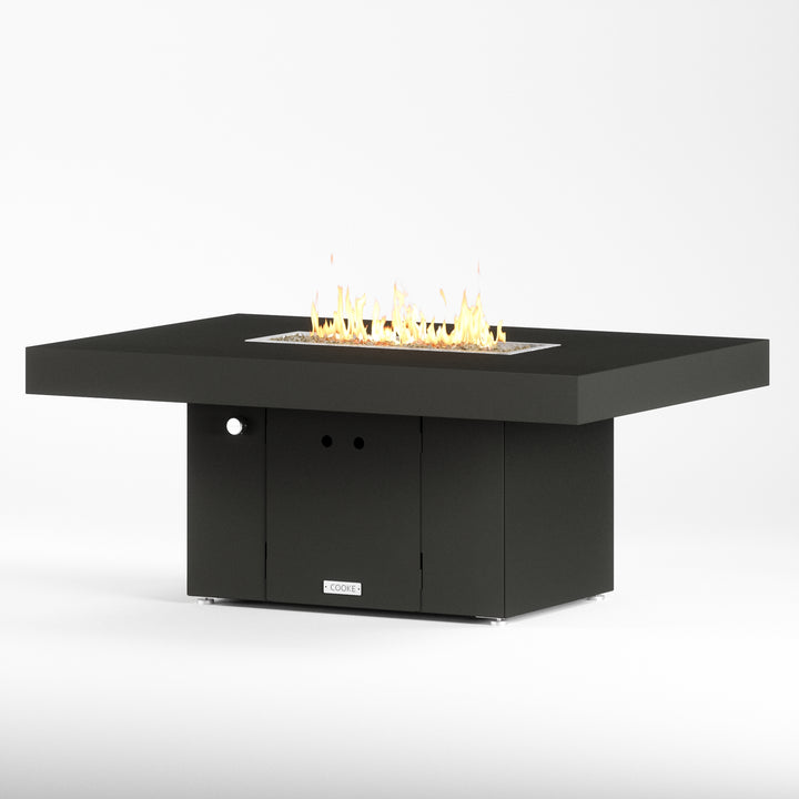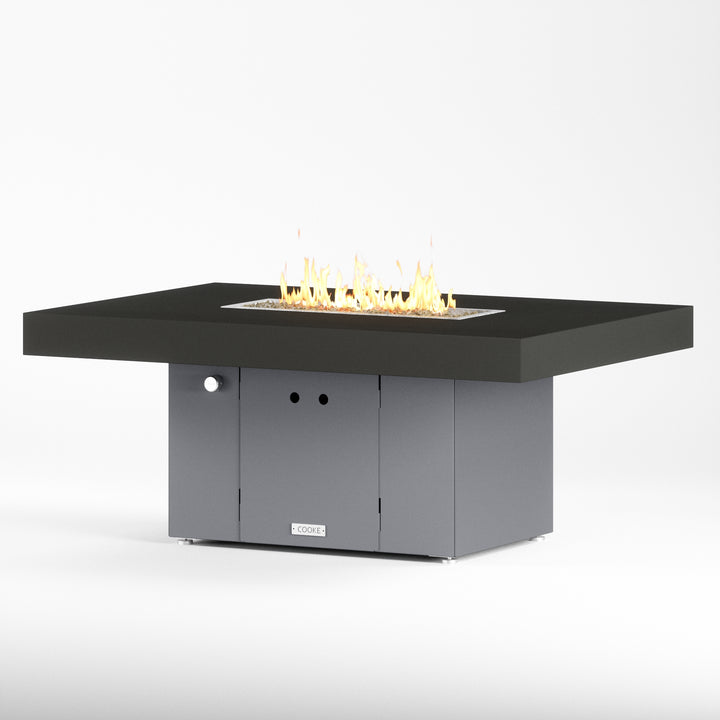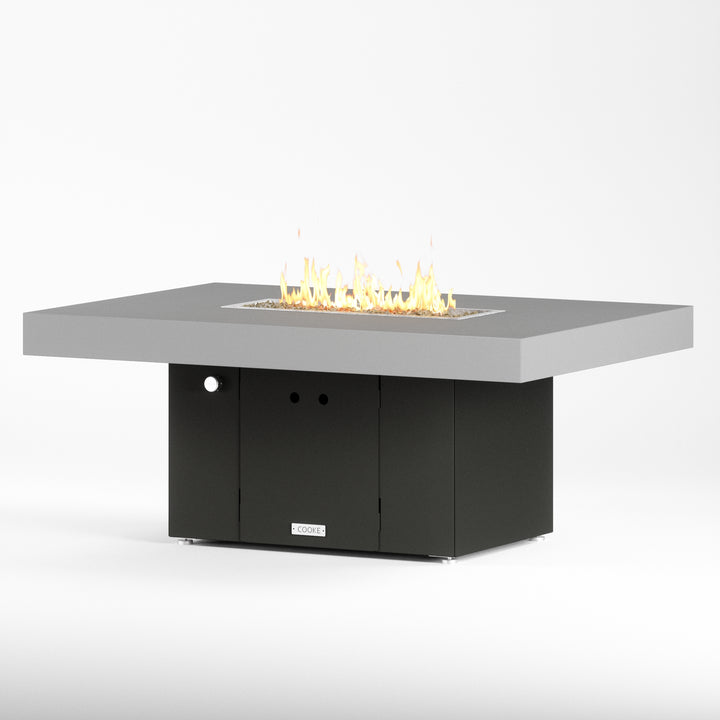The Santa Barbara outdoor fire pit table is Cooke’s tribute to a contemporary function design. This table features oversized cantilevered aluminum block top on a solid, simple straight sided base. At COOKE your choose your colors. Design your own look and match your table to your space! This table is perfect for your own courtyard, backyard, or garden sanctuary. Built with the same legendary Cooke durability, this table conveys and impression of permanence, tranquility, and comfort. Our customers love this table's stain resistant powder coated aluminum top, stainless steel leveling feet, and plenty of room for small plates and drinks. Cover up the burner and this table is a stylish and functional garden table.