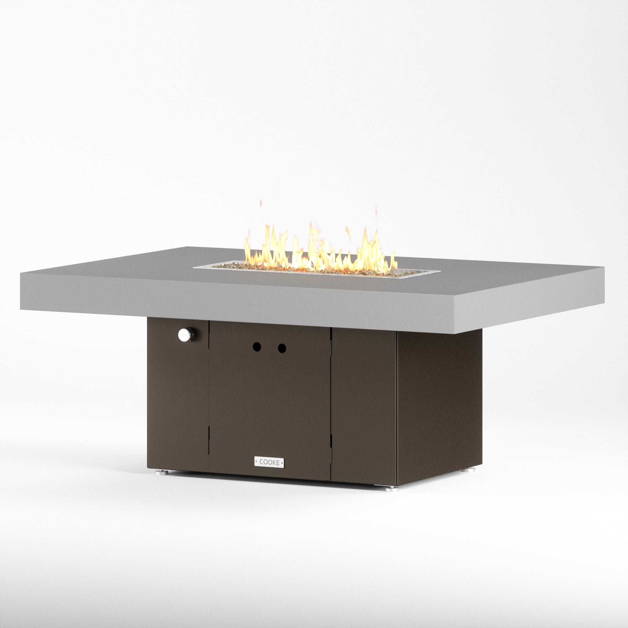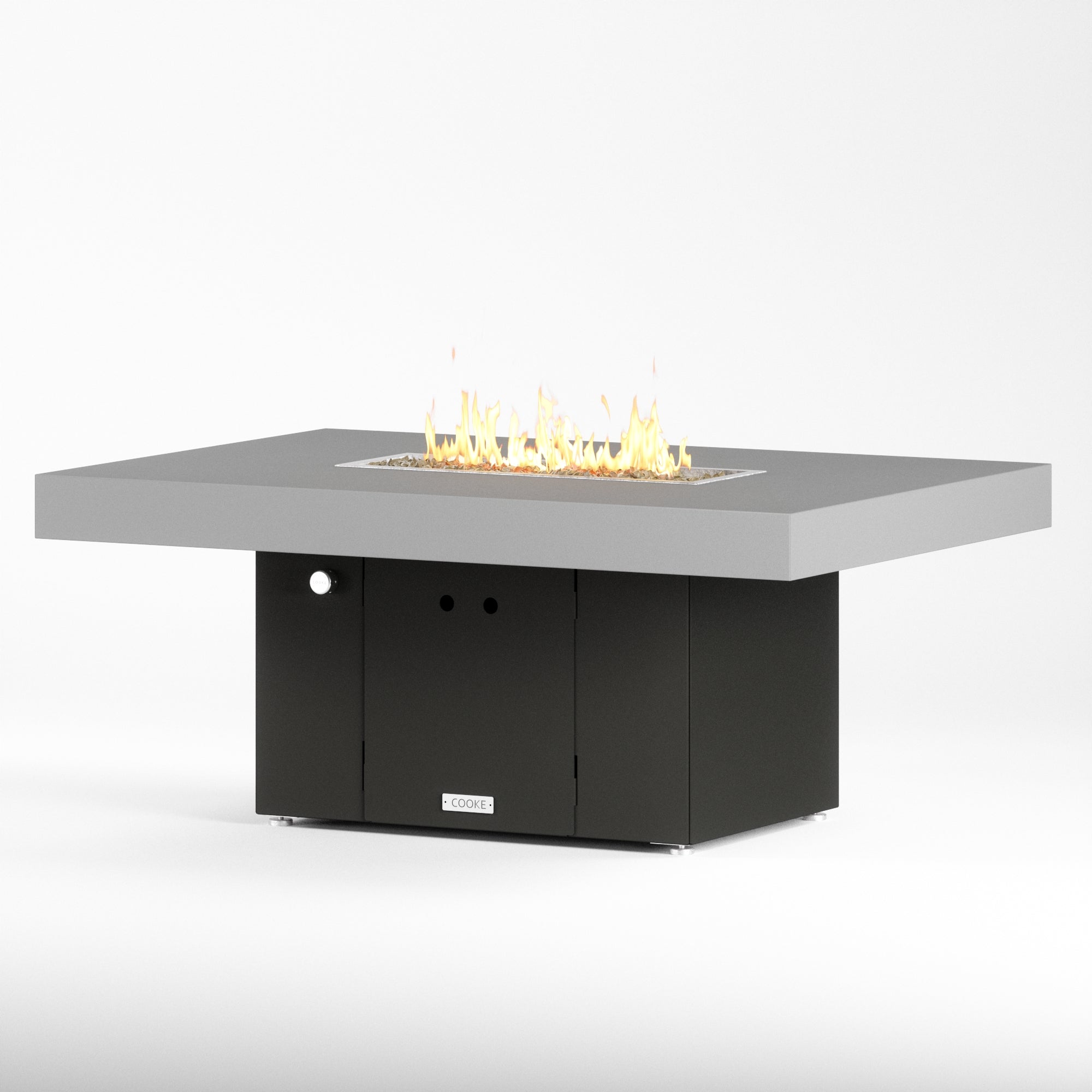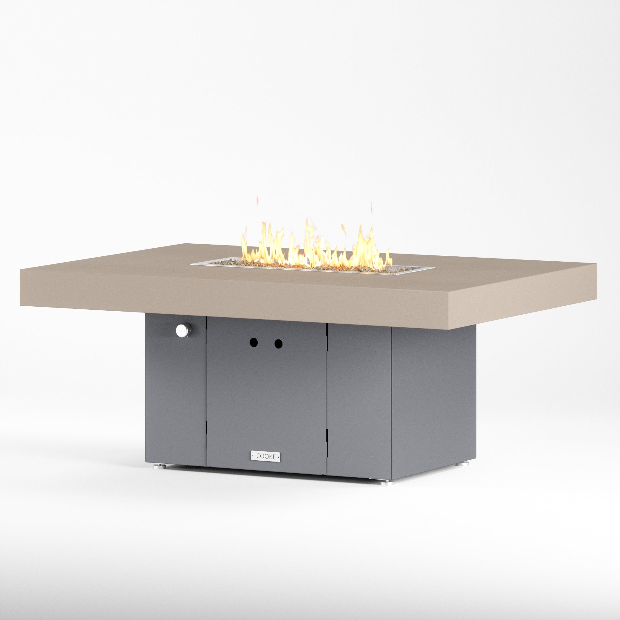 The Santa Barbara outdoor fire pit table is Cooke’s tribute to a contemporary function design. This table features oversized cantilevered aluminum block top on a solid, simple straight sided base. At COOKE your choose your colors. Design your own look and match your table to your space! This table is perfect for your own courtyard, backyard, or garden sanctuary. Built with the same legendary Cooke durability, this table conveys and impression of permanence, tranquility, and comfort. Our customers love this table's stain resistant powder coated aluminum top, stainless steel leveling feet, and plenty of room for small plates and drinks. Cover up the burner and this table is a stylish and functional garden table.