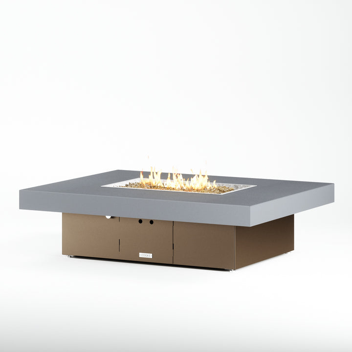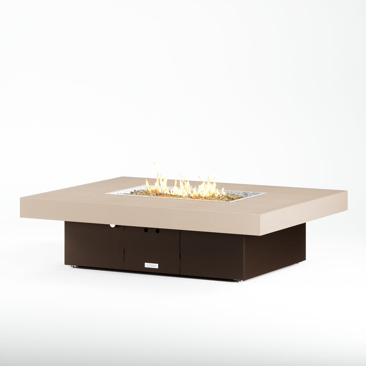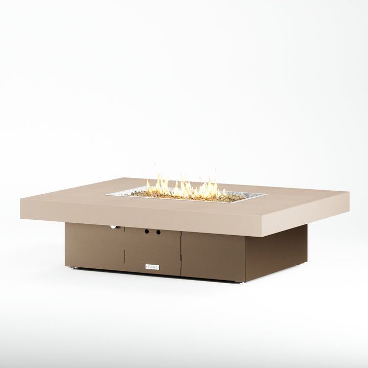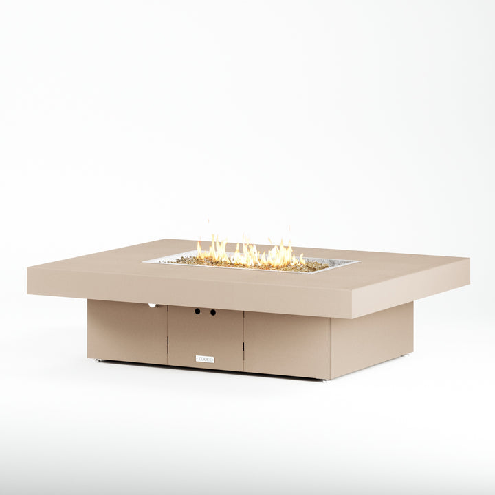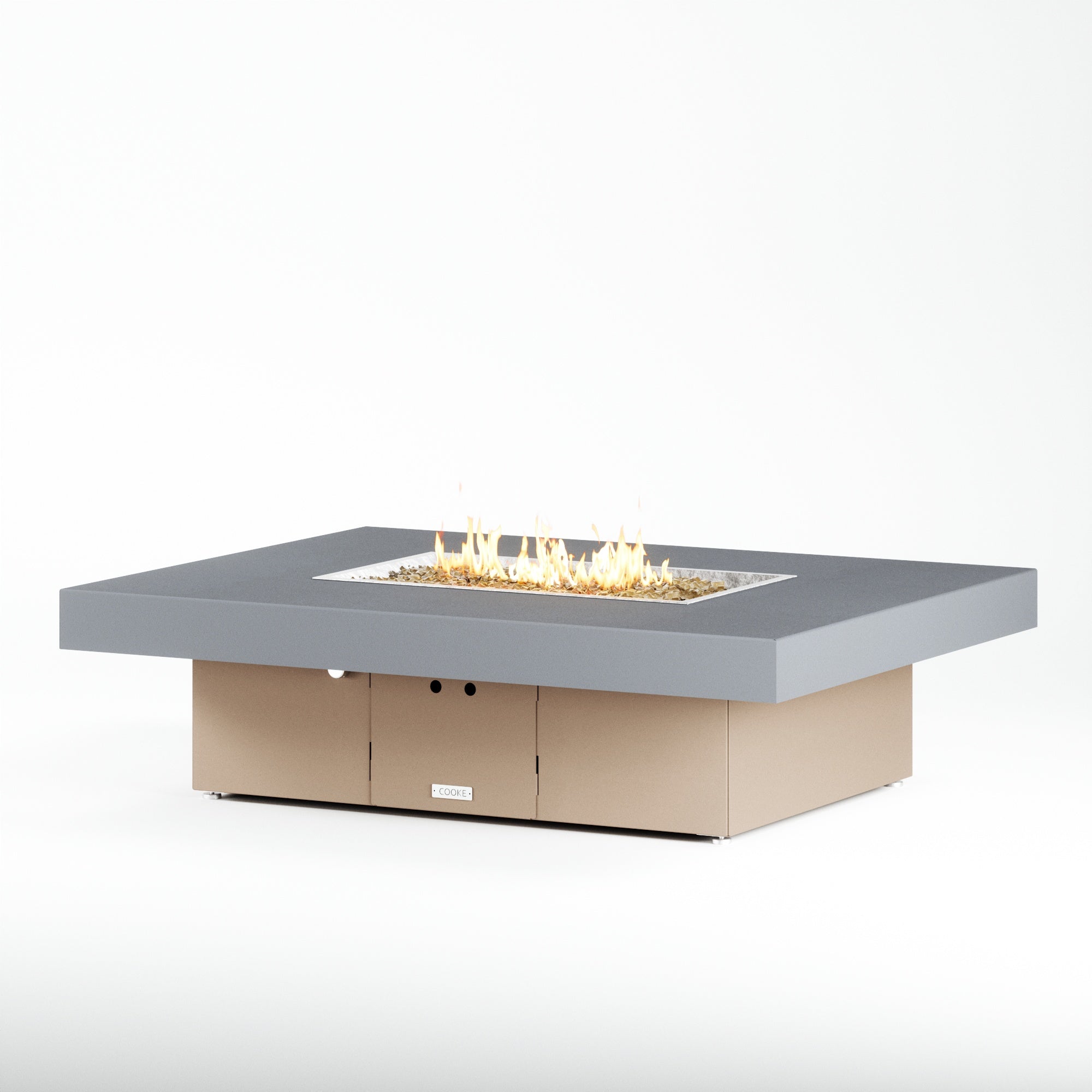 The 48" x 62" is great large rectangular size and accommodates seating up to 6-8. Our customers love this table's expansive stain resistant aluminum top which has plenty of room for drinks, food, or even a nice decorative vase or flower arrangement. COOKE produces some of the finest fire pit tables in the industry which can be seen in the level of detail brought to the table top surface. Finally, a fire pit table with a premium table top! Cover up the fire pit with the stainless steel burner lid and this table doubles as a premium outdoor stone table. Have a custom color idea? Email cs@cookefurniture.com with your custom color idea. Any color is possible.