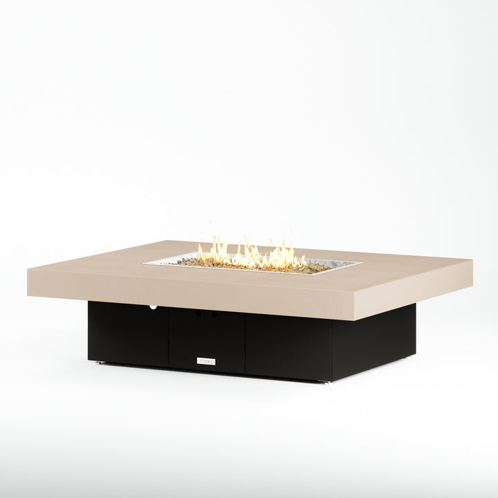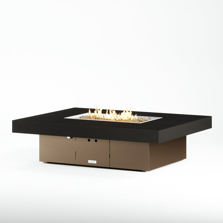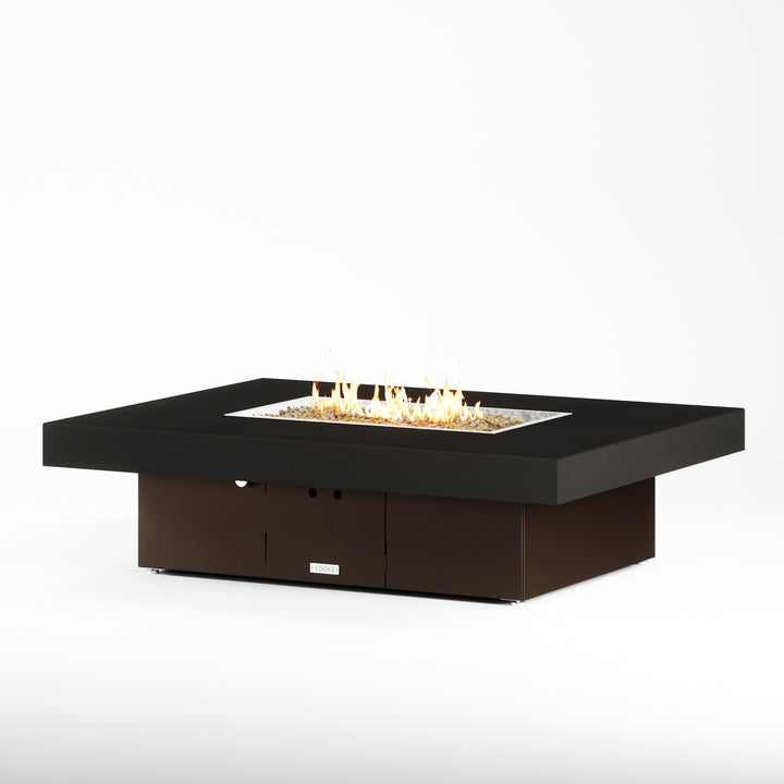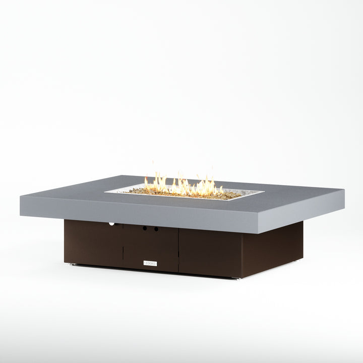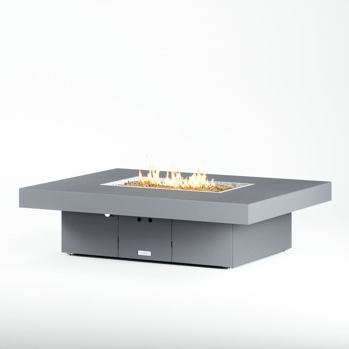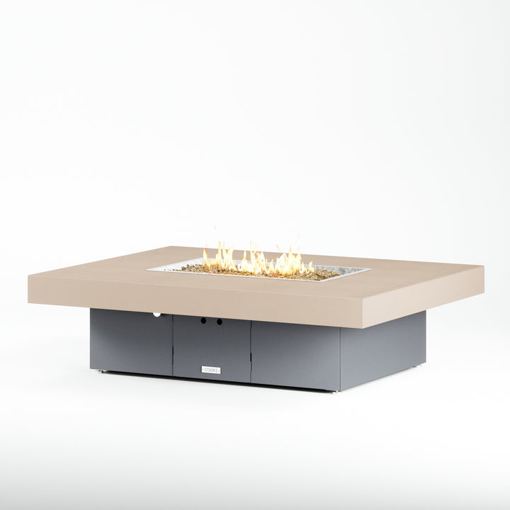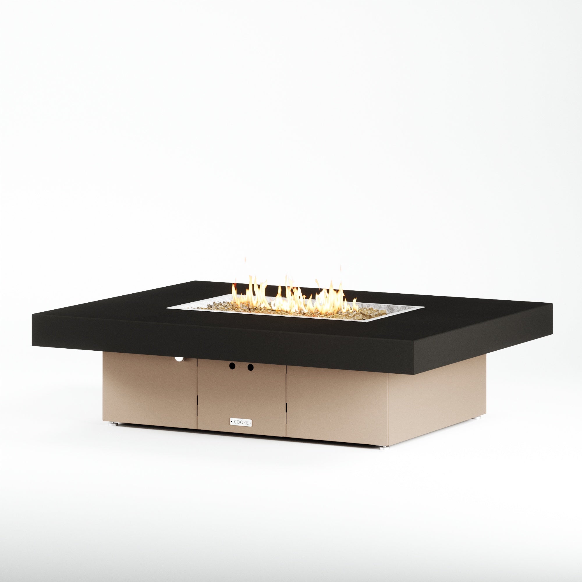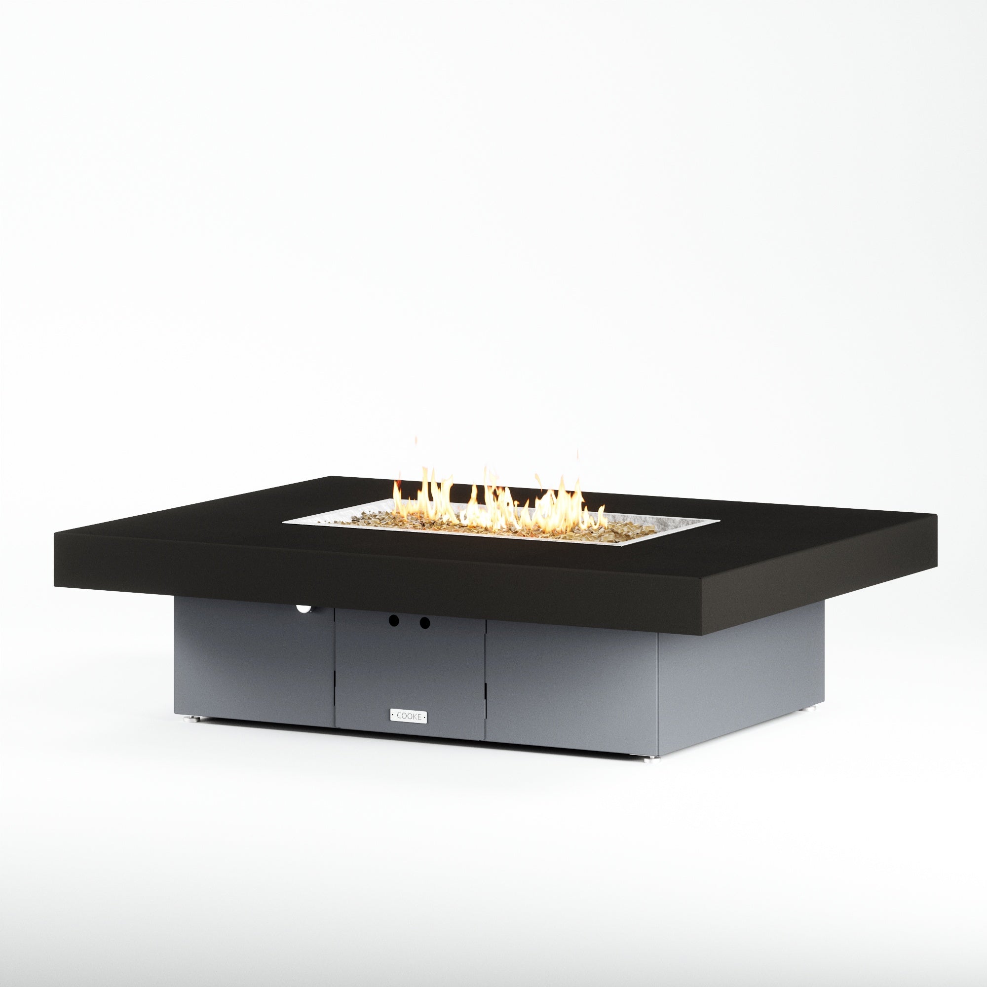 The Santa Barbara outdoor fire pit table is COOKE's contemporary lounge height table with XL oversized top. This impressive table features a solid straight sided base and premium made in USA aluminum table top. The Santa Barbara is available in a wide variety of color combinations - a perfect match for your own hardscaped backyard, pool areas, or outdoor living space. Built with the same legendary COOKE quality, this table conveys an impression of permanence, tranquility, and comfort.