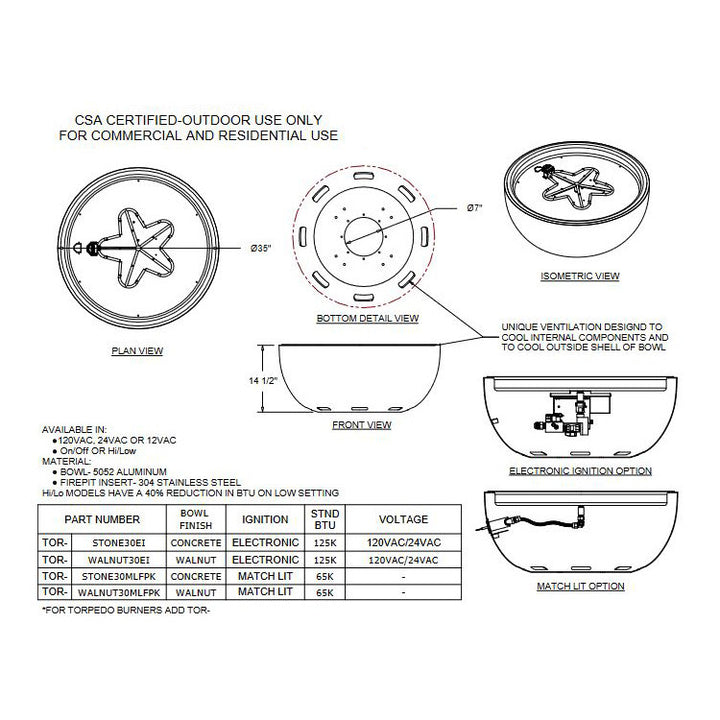 HPC - Aluminum Spun Fire Bowl - Walnut Color