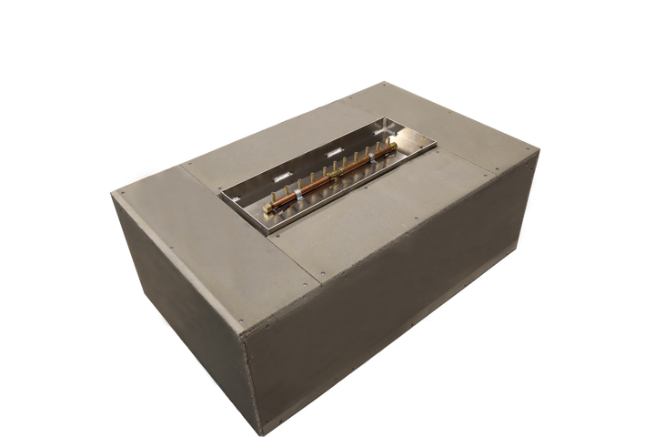 Crossfire by Warming Trends 48x30-Inch Rectangular Ready-to-Finish Fire Pit Enclosure with Gas Burner Kit provides a complete DIY gas fire pit kit that includes the necessary components to build and install a beautiful fire feature. The enclosure features a heavy duty aluminum frame completed with a concrete hardiboard surround to complete the basic structure and allow you to finish it with your own custom finish option. The 48" x 30" x 22" rectangle enclosure includes a 28" x 10" x 2" rectangle aluminum pan and 22" Crossfire burner rated at 110,000 BTU that can be specified for either propane or natural gas.