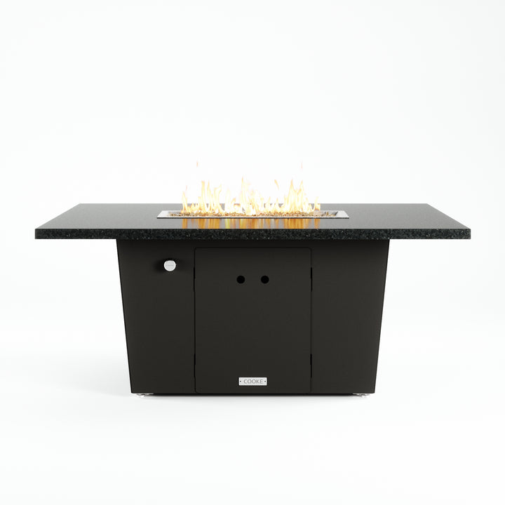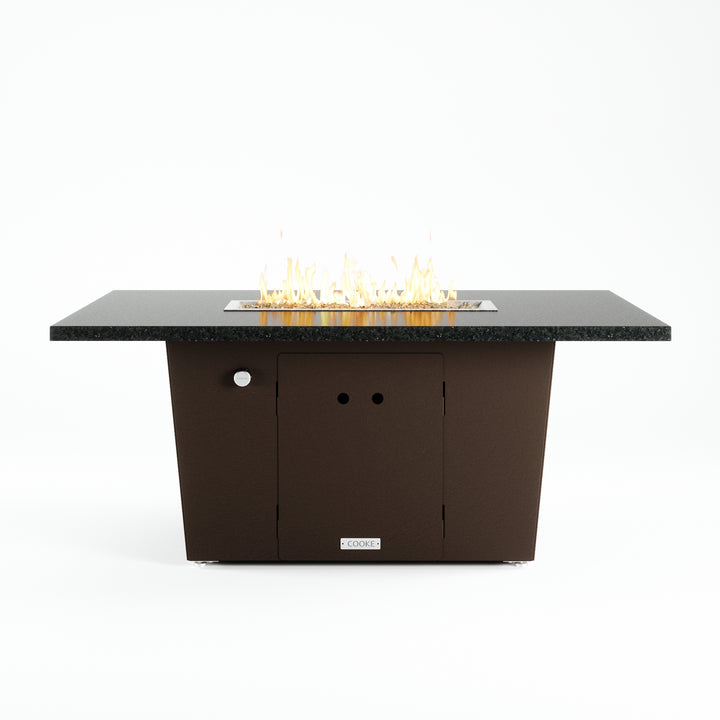 The 52" x 36" table top is the perfect medium size table and accommodates seating up to 4-6. Our customers love this table's stain resistant aluminum or granite table top which has plenty of room for small plates and drinks. COOKE produces some of the finest fire pit tables in the industry which can be seen in the level of detail brought to the table top surface. Finally, a fire pit table with a premium table top! COOKE Palisades granite or marble tops are cut from one solid slab of stone and feature perfectly eased 3cm edges. Granite is very durable when compared to porous concrete and it can add more depth and character if desired. Cover up the fire pit with the stainless steel burner lid and this table doubles as a premium outdoor stone table.