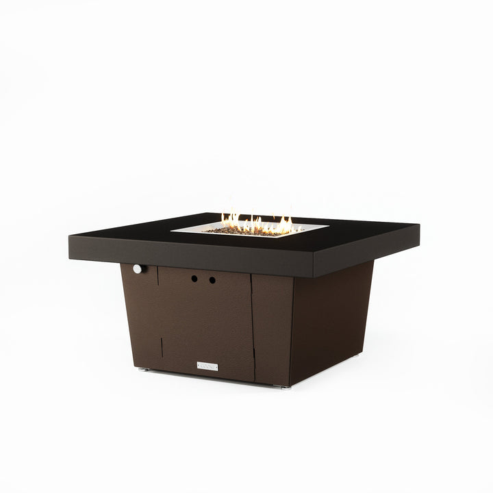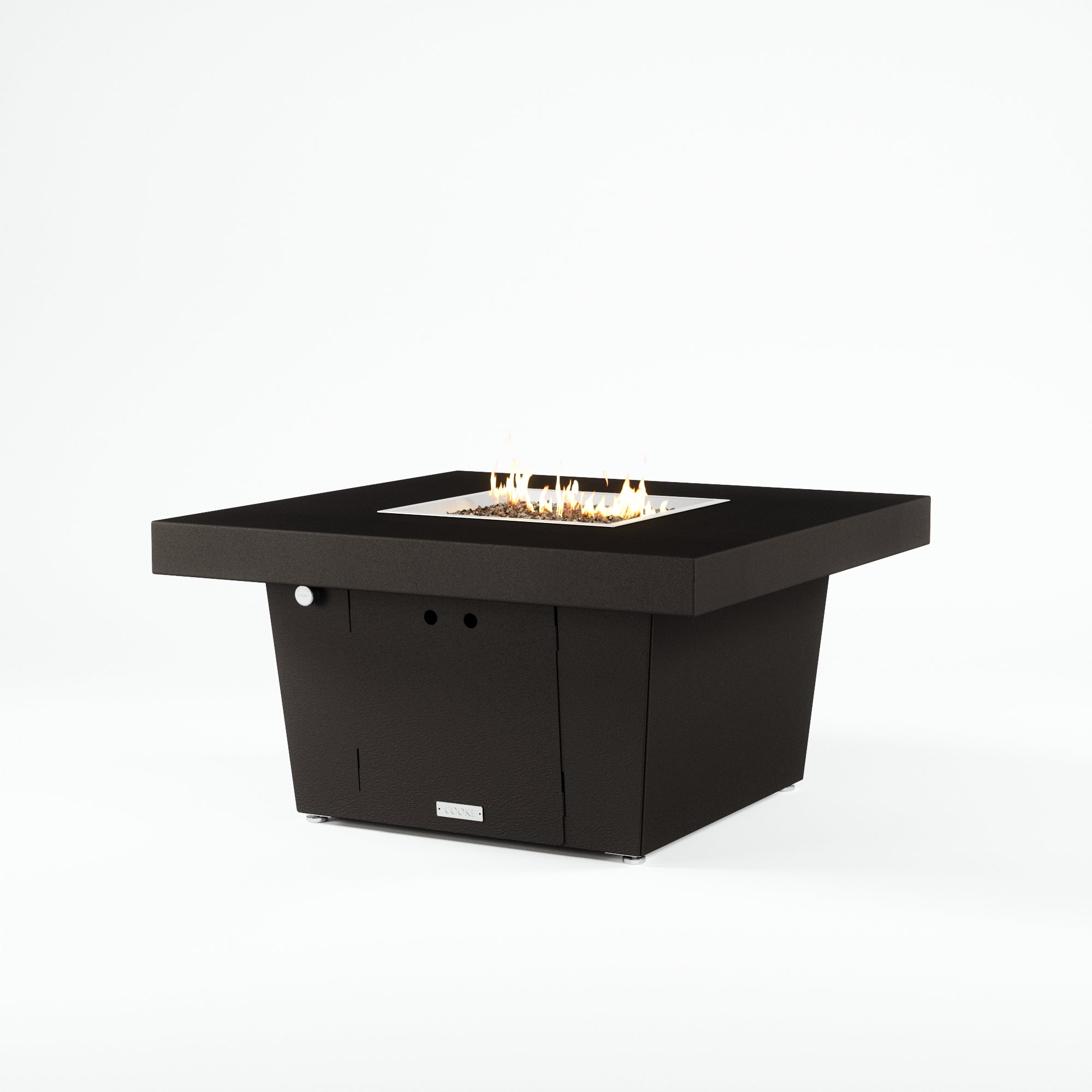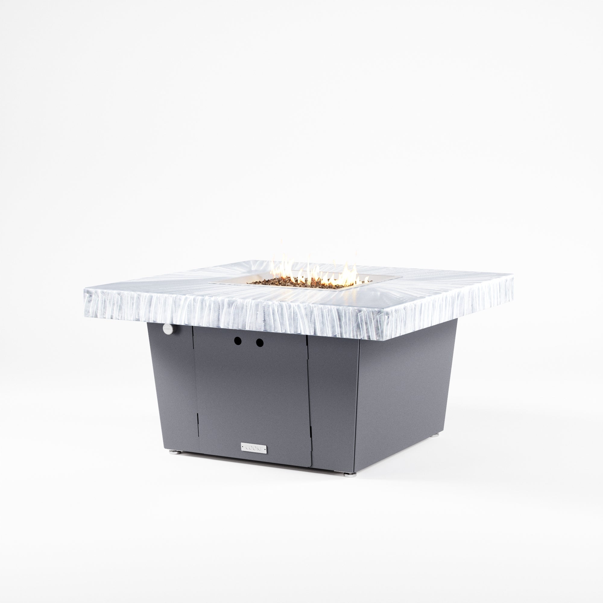 The Parkway fire pit table is COOKE's solution to a great-looking, quality, made-in-USA square fire pit table that is versatile and a great value. This chat height fire pit table features a generous table top with 4" edge on a 21" tall slightly tapered base. This table has elegant lines lines and a nice clean contemporary look that will continue to look fresh. This table is big enough for ample seating but is carefully designed to be integrated into landscaped lounge areas, open patio spaces with planters, or near fountains and water features. The COOKE Parkway is hands down the best value for an all aluminum fire pit table.