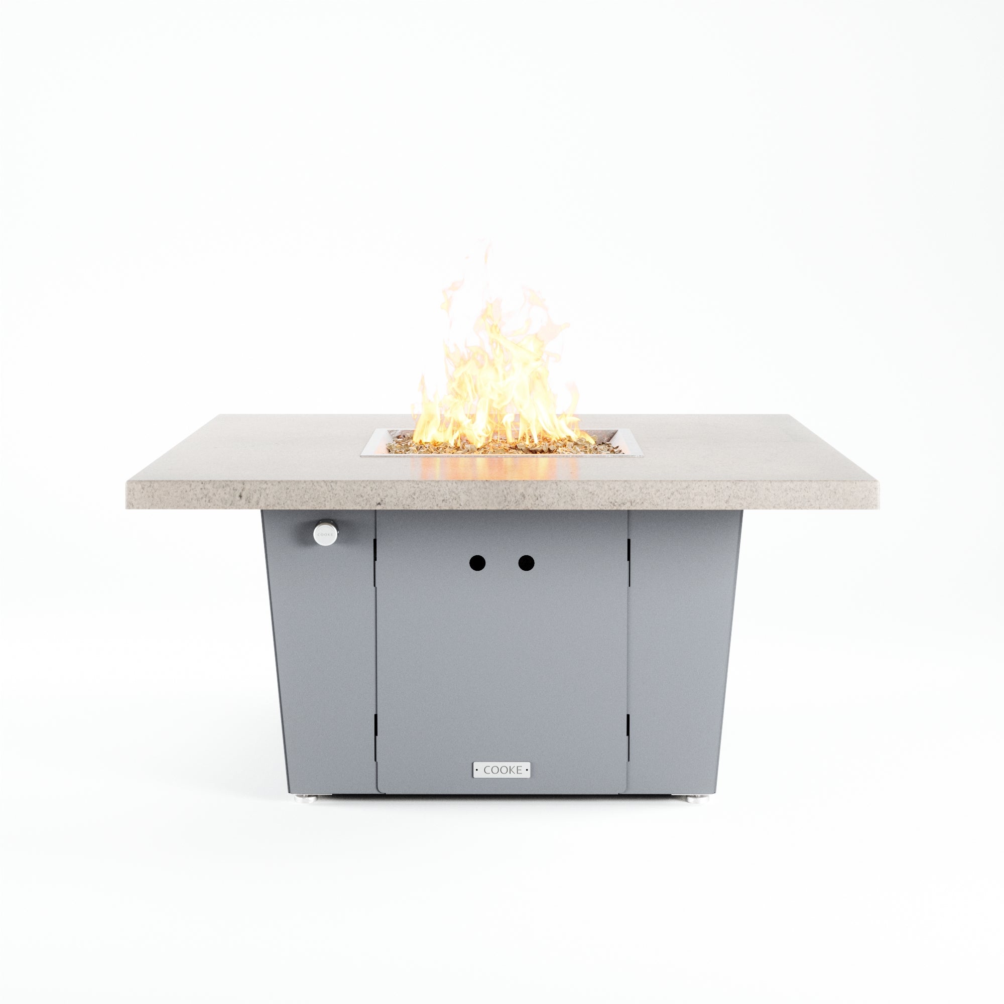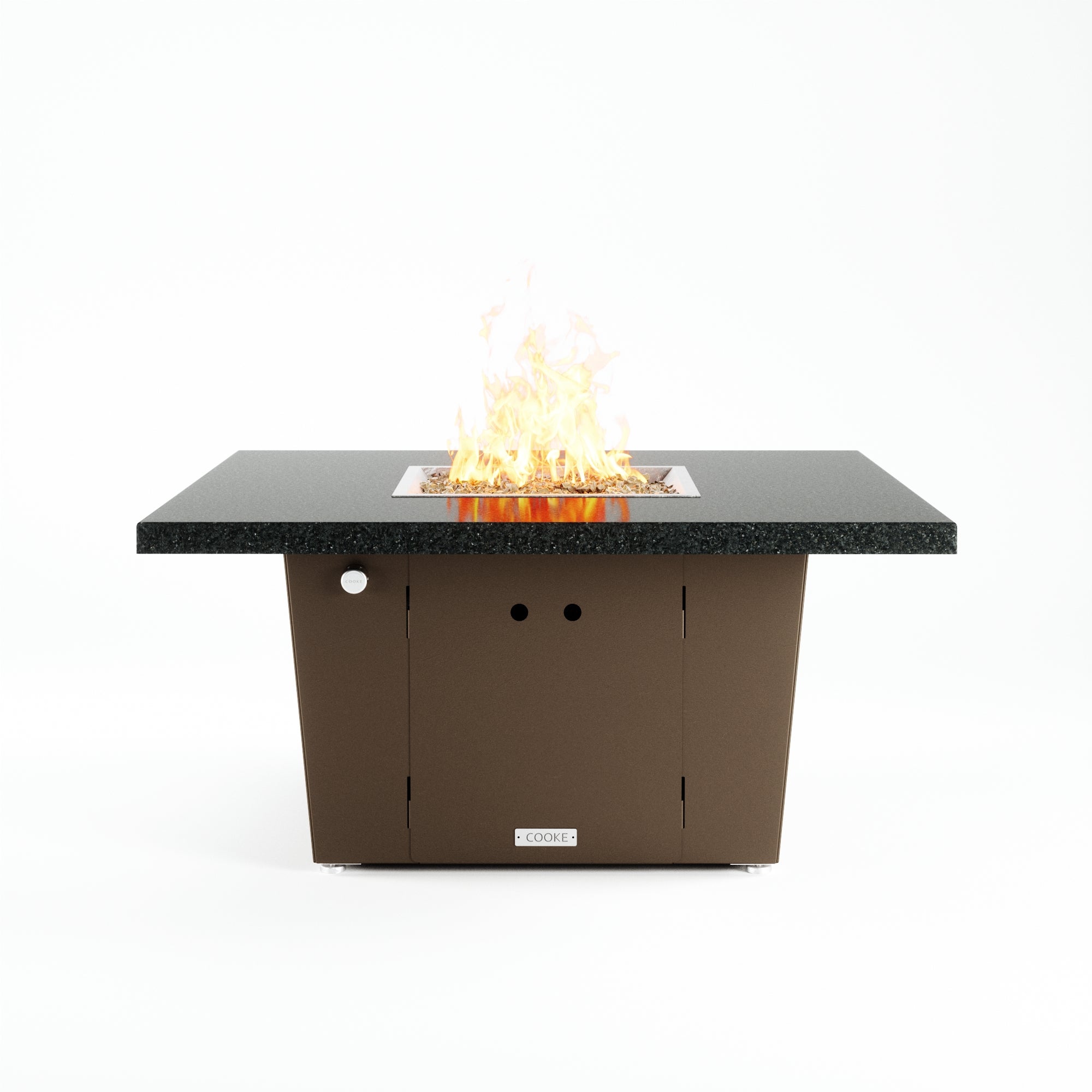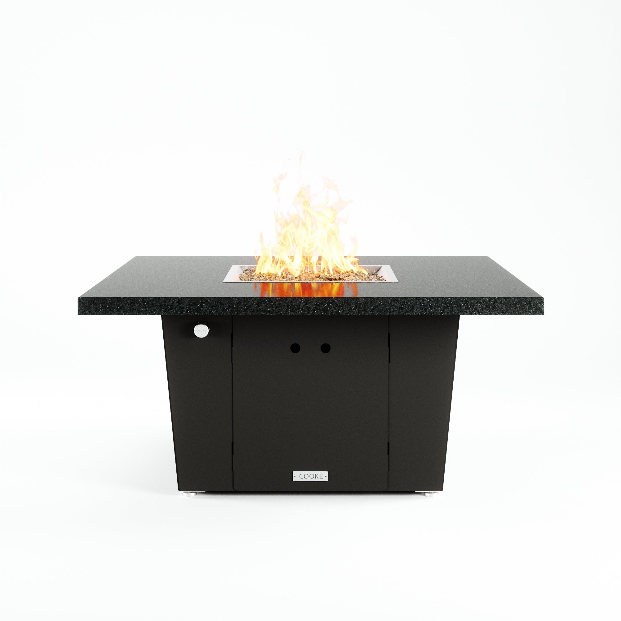 This table features tapered base for more footroom and a 3 cm thick top. Choose from COOKE’s selection of real, one-piece premium granite tops or satin finish powdercoat colors. COOKE granite is cut from real, one-of-a kind, slabs also used for high end architectural applications. Cover up the fire pit burner with the included stainless steel lid and your Cooke fire pit table transforms into a functional and beautiful garden or patio table. This table is perfect for your romantic backyard jungle meeting spot, modern clubhouse, or contemporary outdoor concrete patio.