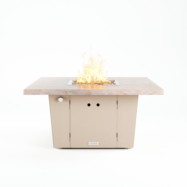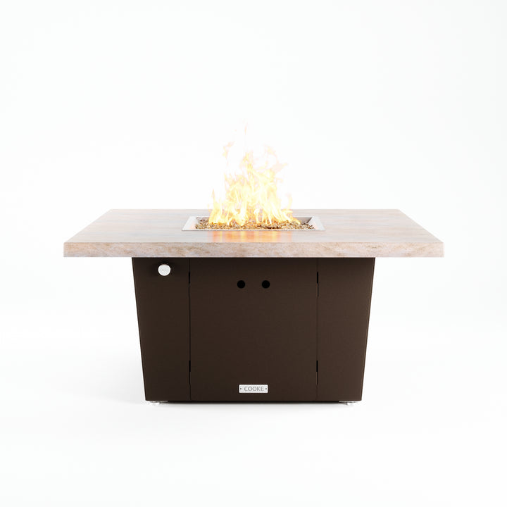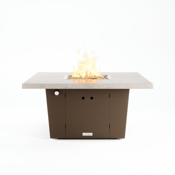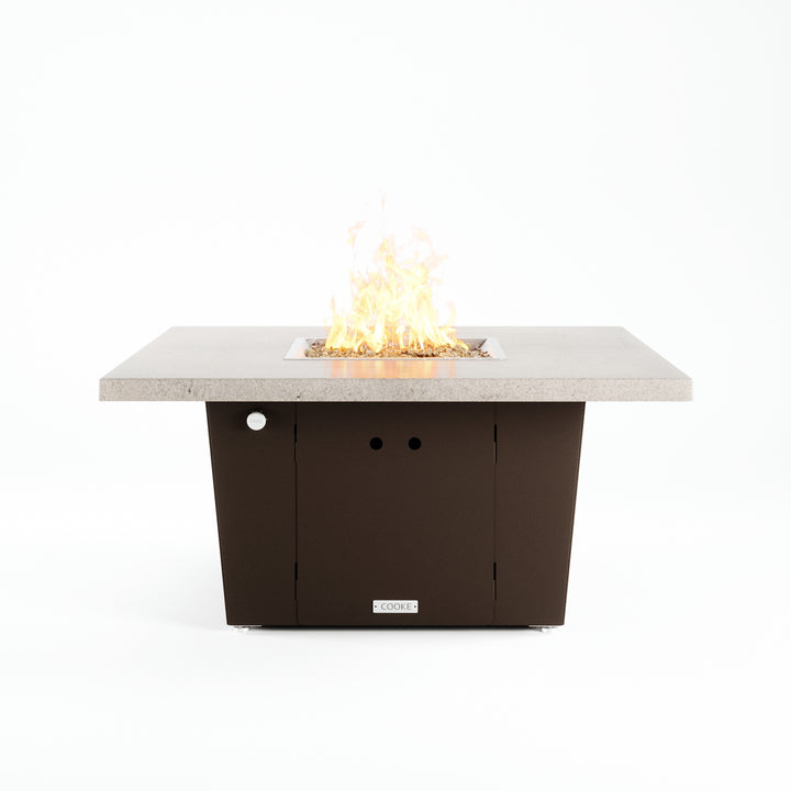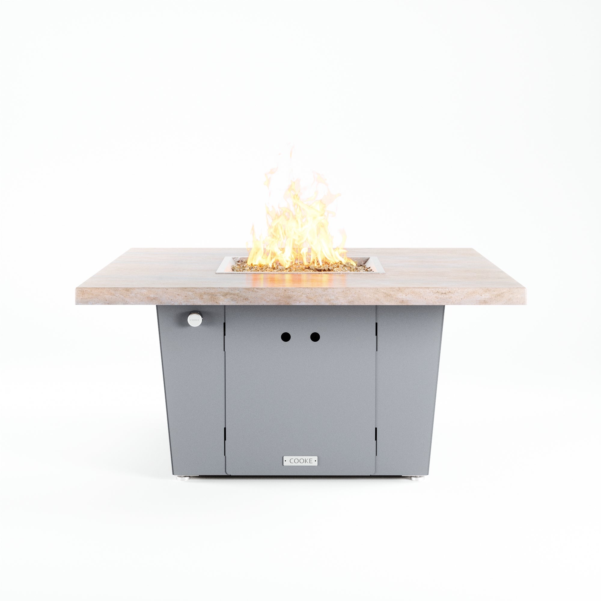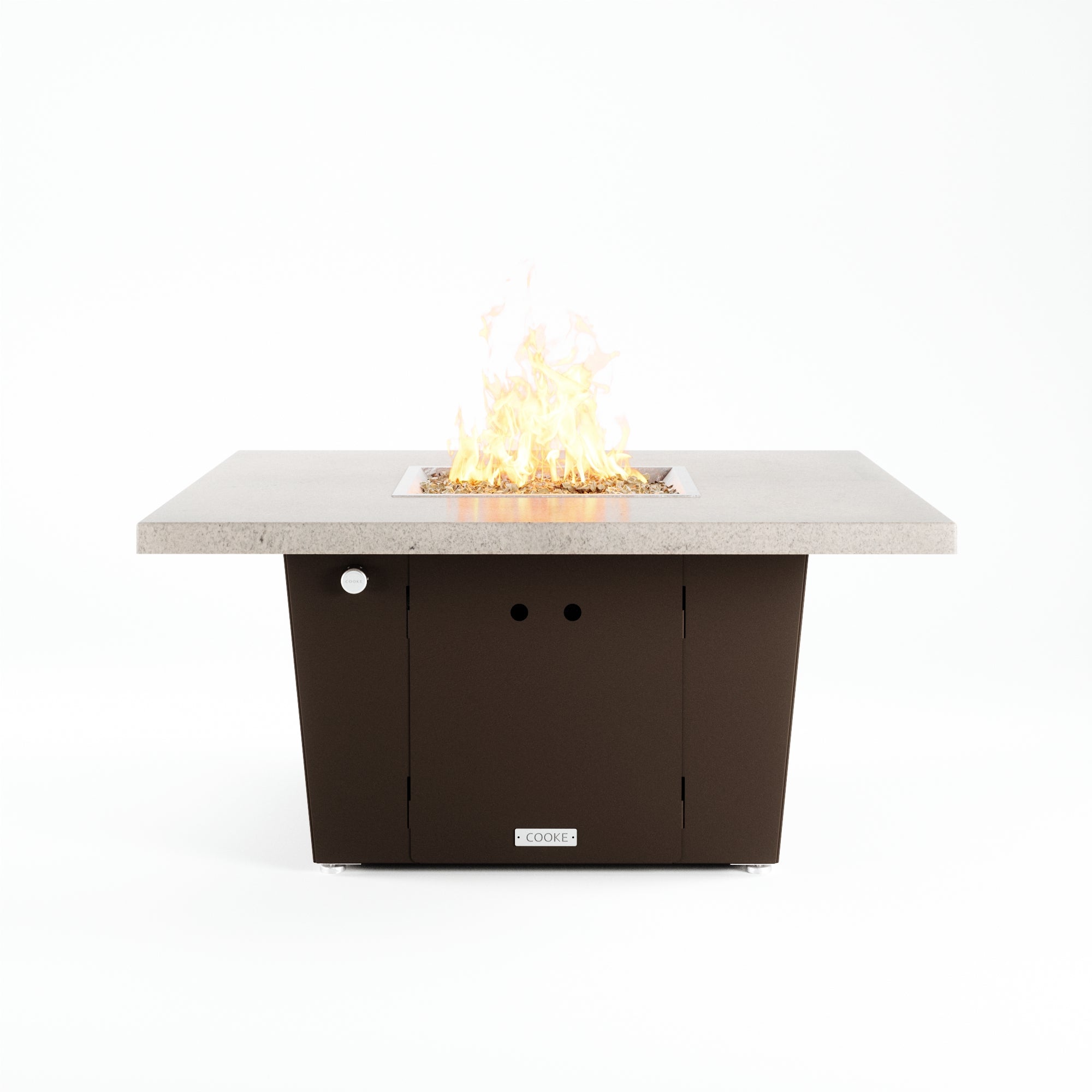 This table features tapered base for more footroom and a 3 cm thick top. Choose from COOKE’s selection of real, one-piece premium granite tops or satin finish powdercoat colors. COOKE granite is cut from real, one-of-a kind, slabs also used for high end architectural applications. Cover up the fire pit burner with the included stainless steel lid and your Cooke fire pit table transforms into a functional and beautiful garden or patio table. This table is perfect for your romantic backyard jungle meeting spot, modern clubhouse, or contemporary outdoor concrete patio.