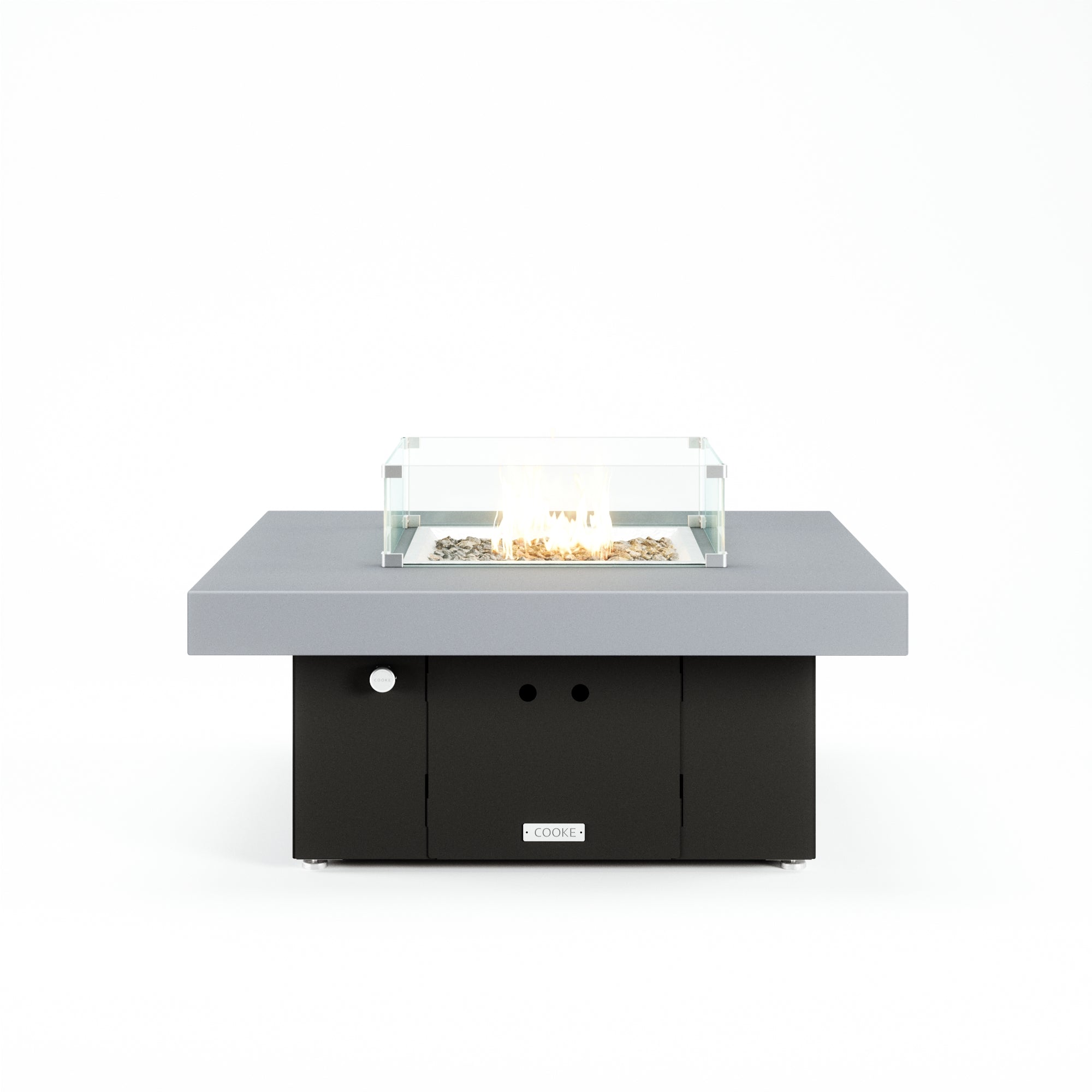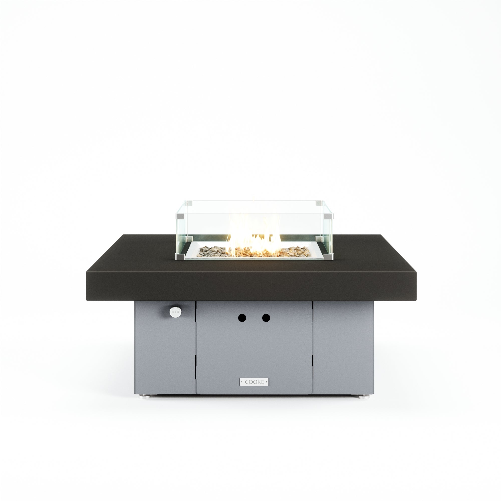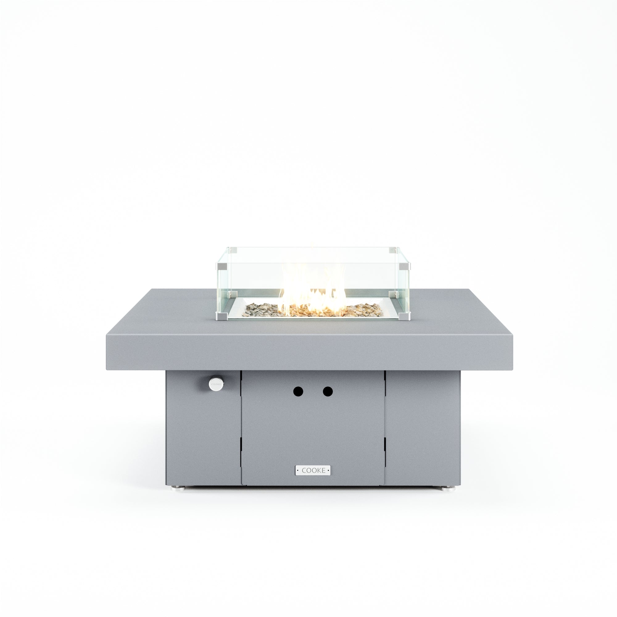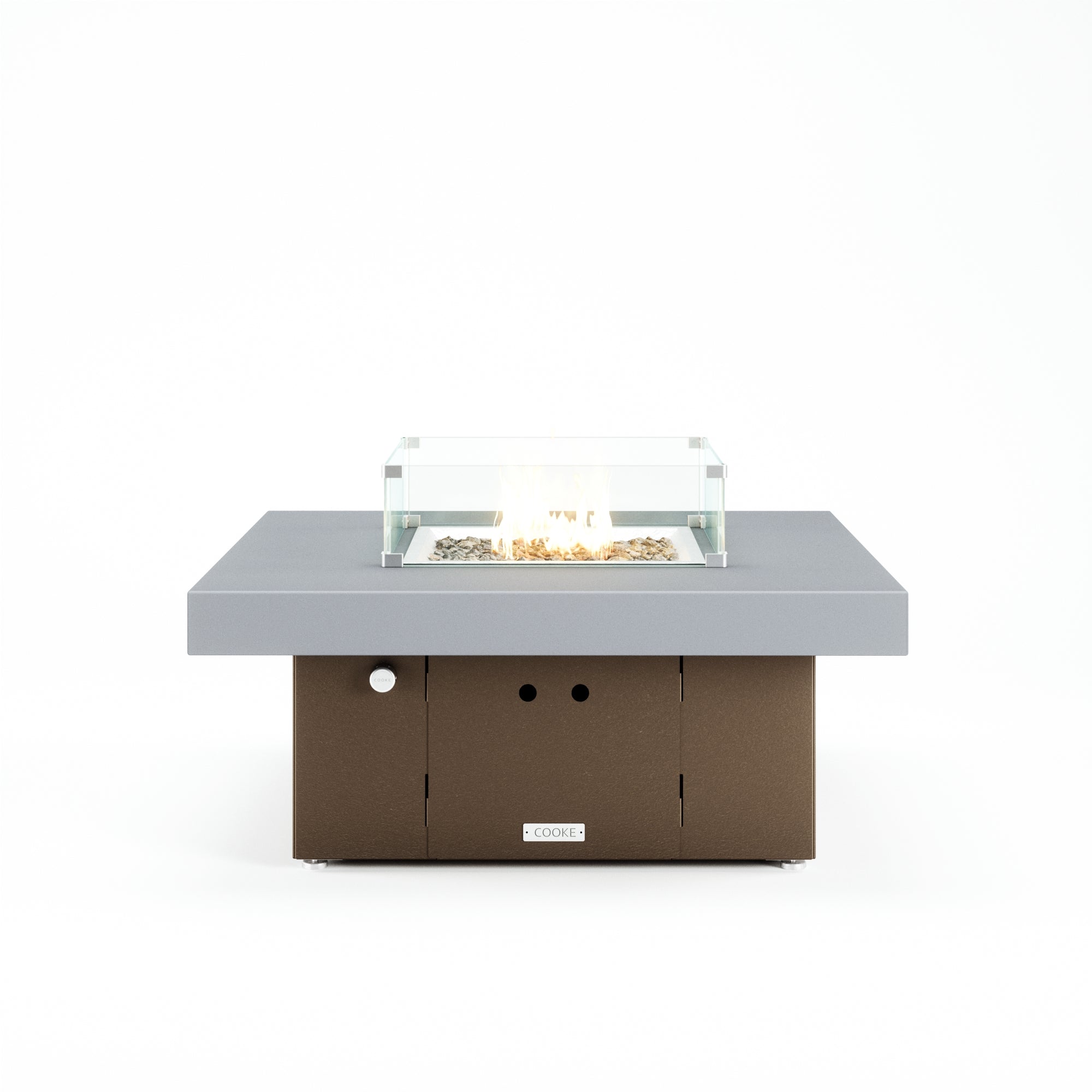 The 40" x 40" is a nice compact square size and accommodates seating up to 4. Our customers love this table's stain resistant aluminum table top which has plenty of room for plates and drinks. COOKE produces some of the finest fire pit tables in the industry which can be seen in the level of detail brought to the table top surface. Finally, a fire pit table with a premium aluminum table top that looks amazing! Cover up the fire pit with the stainless steel burner lid and this table doubles as a premium outdoor lounge table for everyday use.