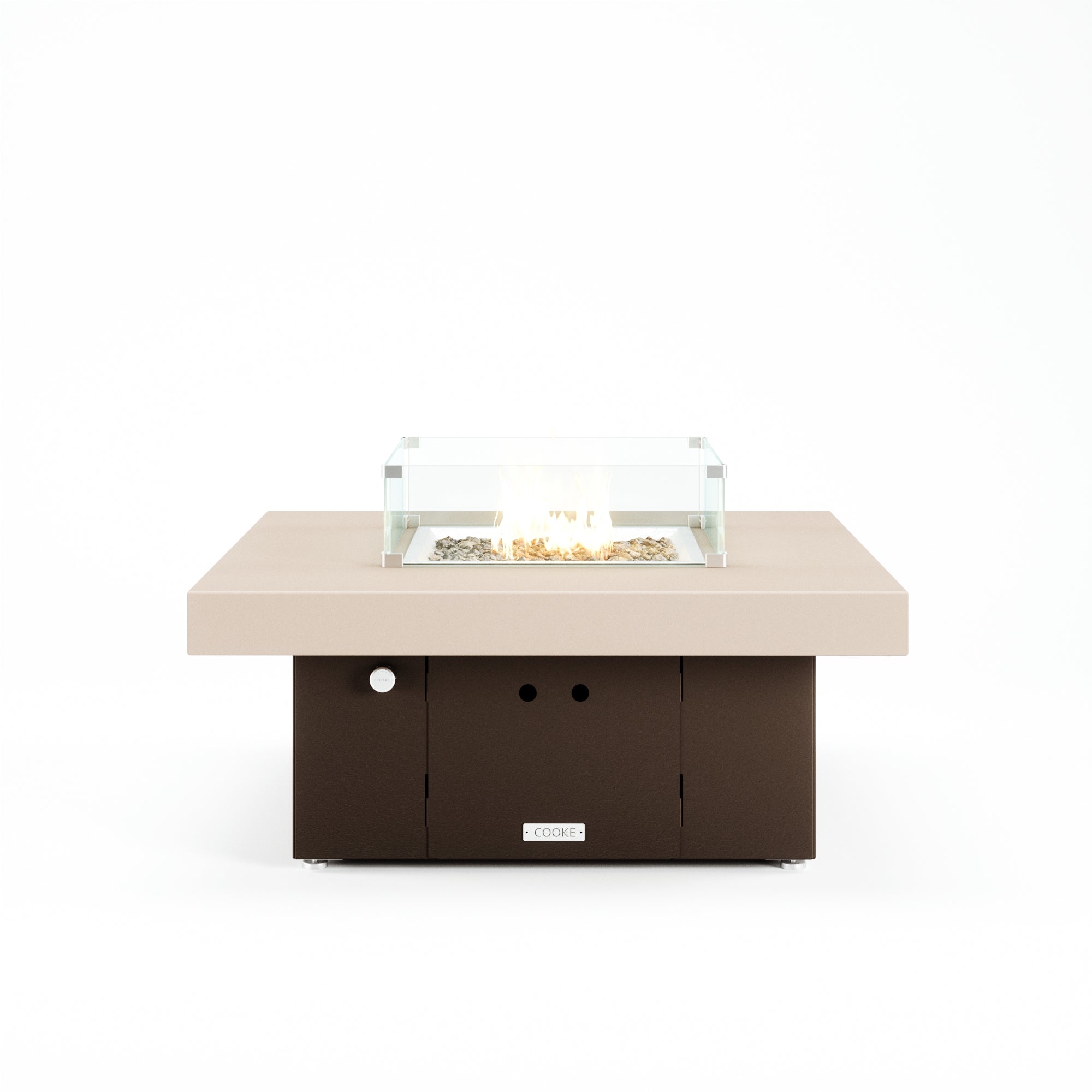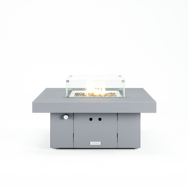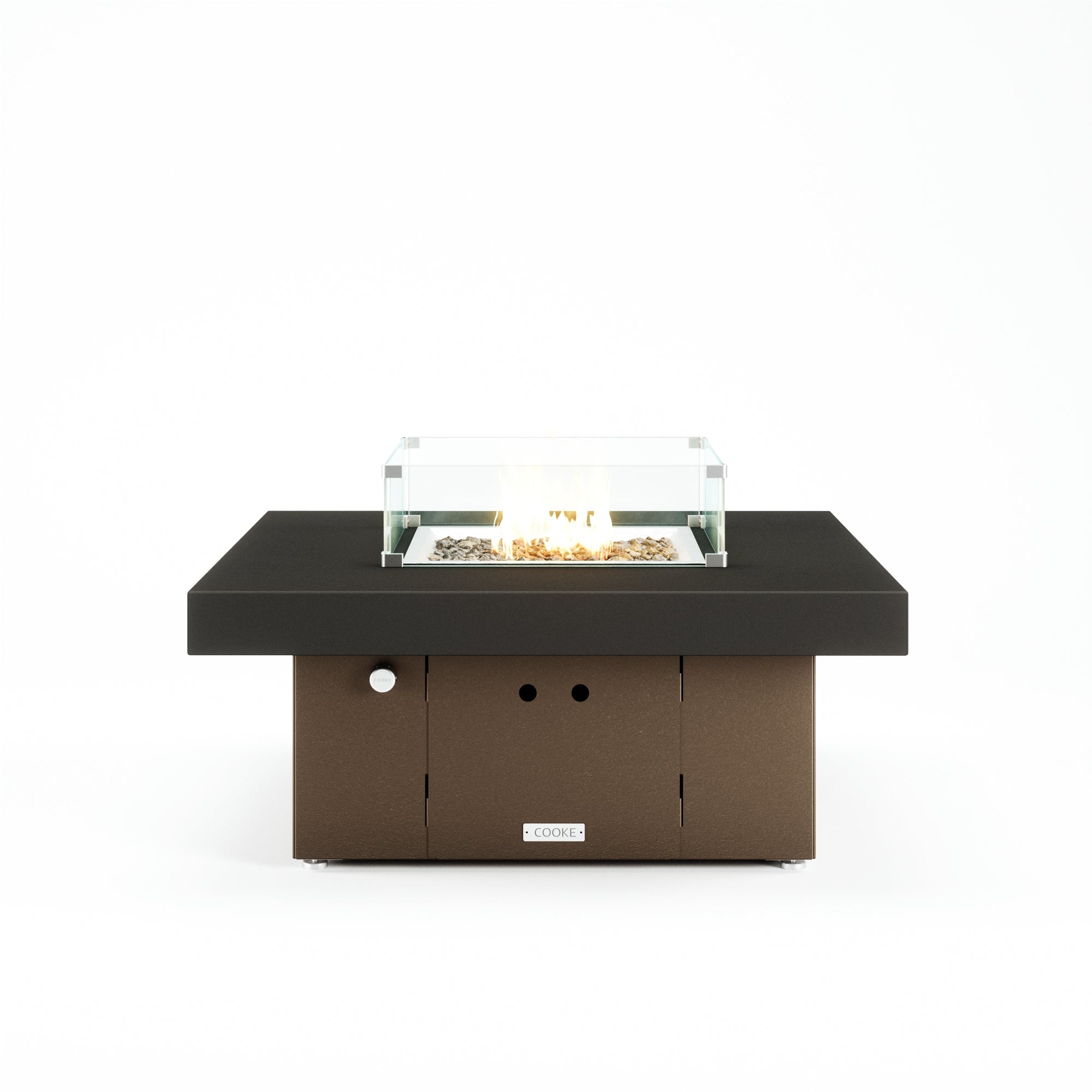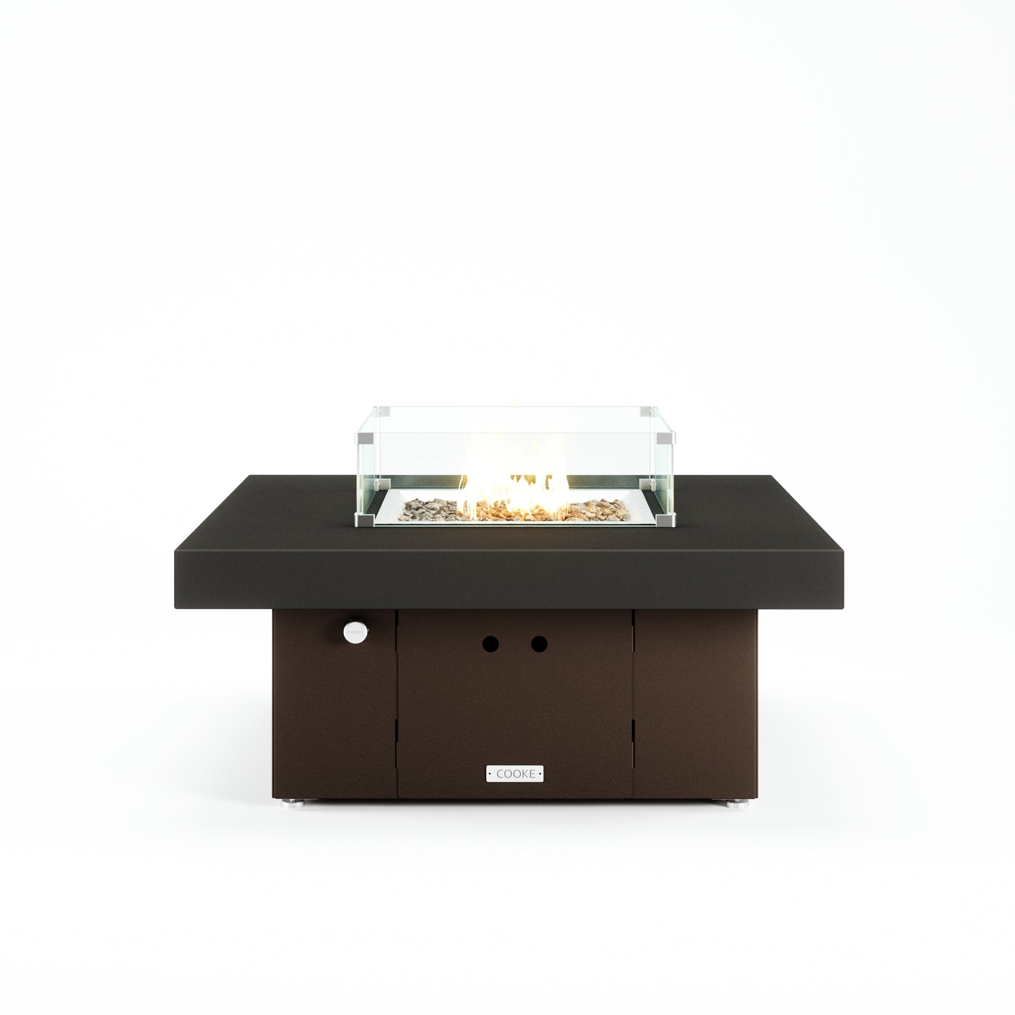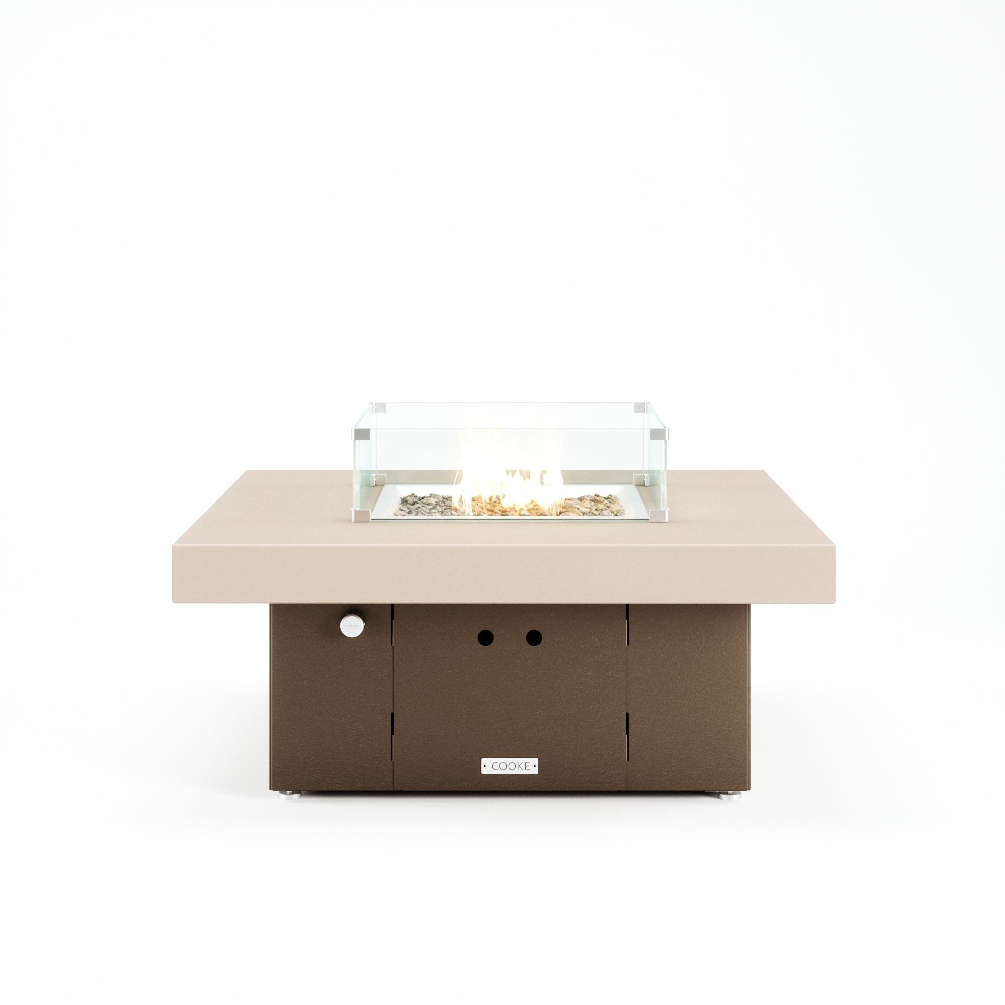 The 40" x 40" is a nice compact square size and accommodates seating up to 4. Our customers love this table's stain resistant aluminum table top which has plenty of room for plates and drinks. COOKE produces some of the finest fire pit tables in the industry which can be seen in the level of detail brought to the table top surface. Finally, a fire pit table with a premium aluminum table top that looks amazing! Cover up the fire pit with the stainless steel burner lid and this table doubles as a premium outdoor lounge table for everyday use.