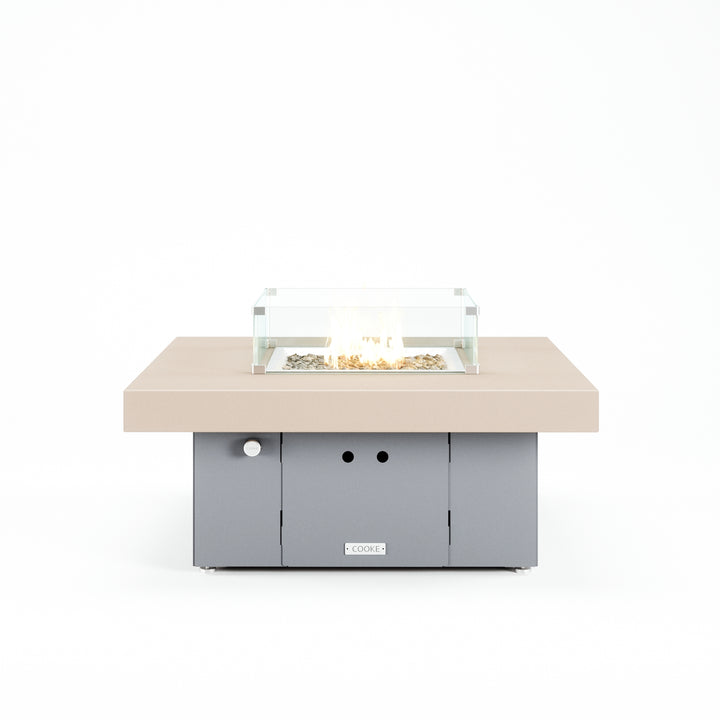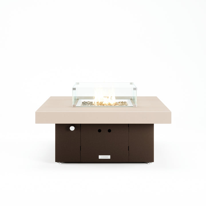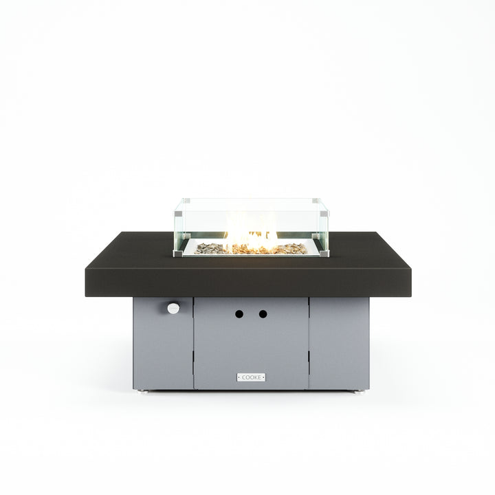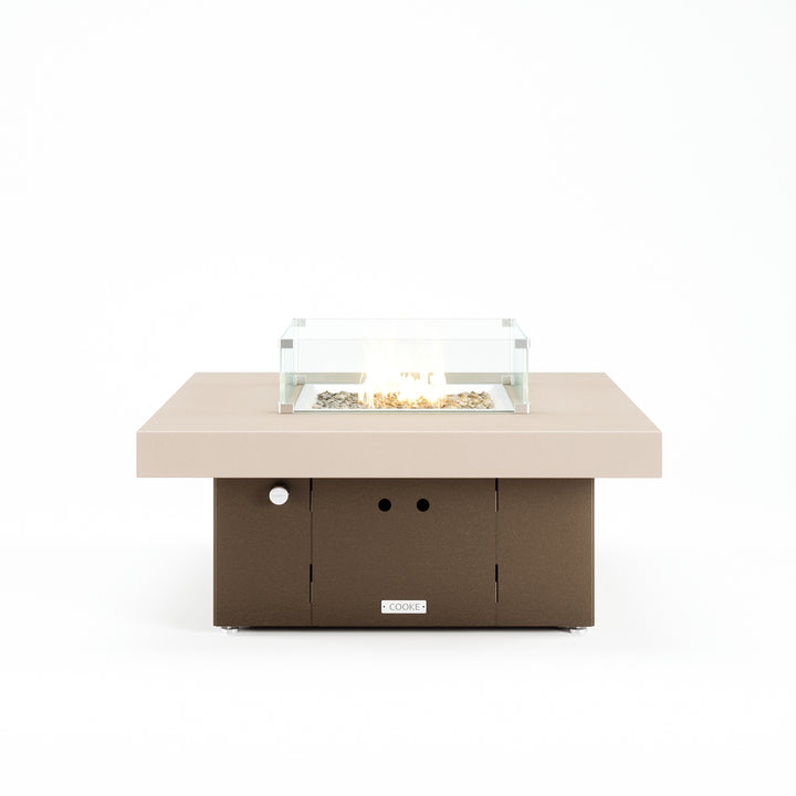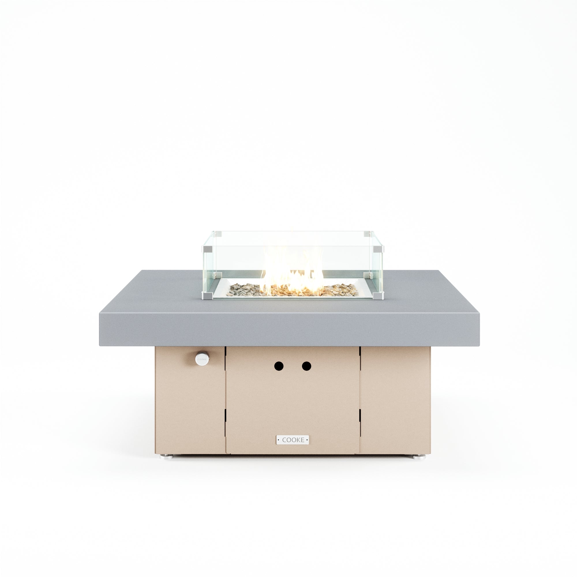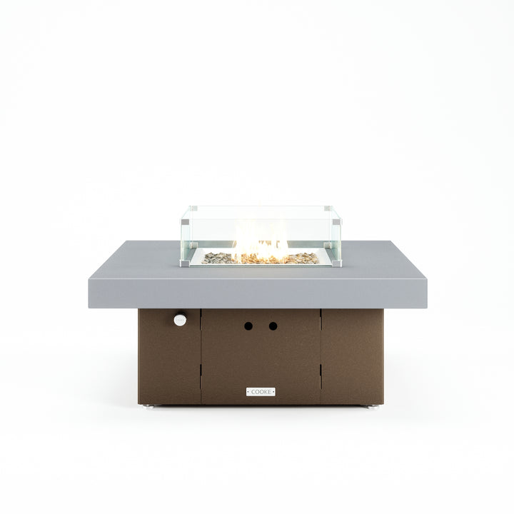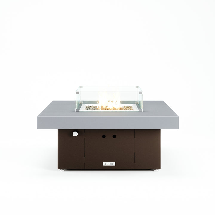 The 40" x 40" is a nice compact square size and accommodates seating up to 4. Our customers love this table's stain resistant aluminum table top which has plenty of room for plates and drinks. COOKE produces some of the finest fire pit tables in the industry which can be seen in the level of detail brought to the table top surface. Finally, a fire pit table with a premium aluminum table top that looks amazing! Cover up the fire pit with the stainless steel burner lid and this table doubles as a premium outdoor lounge table for everyday use.