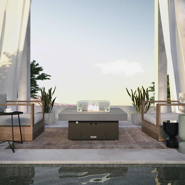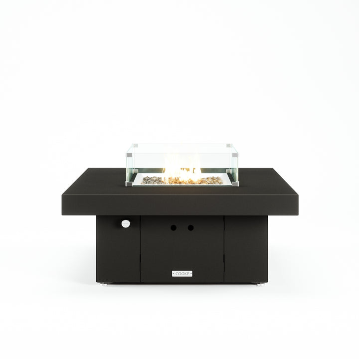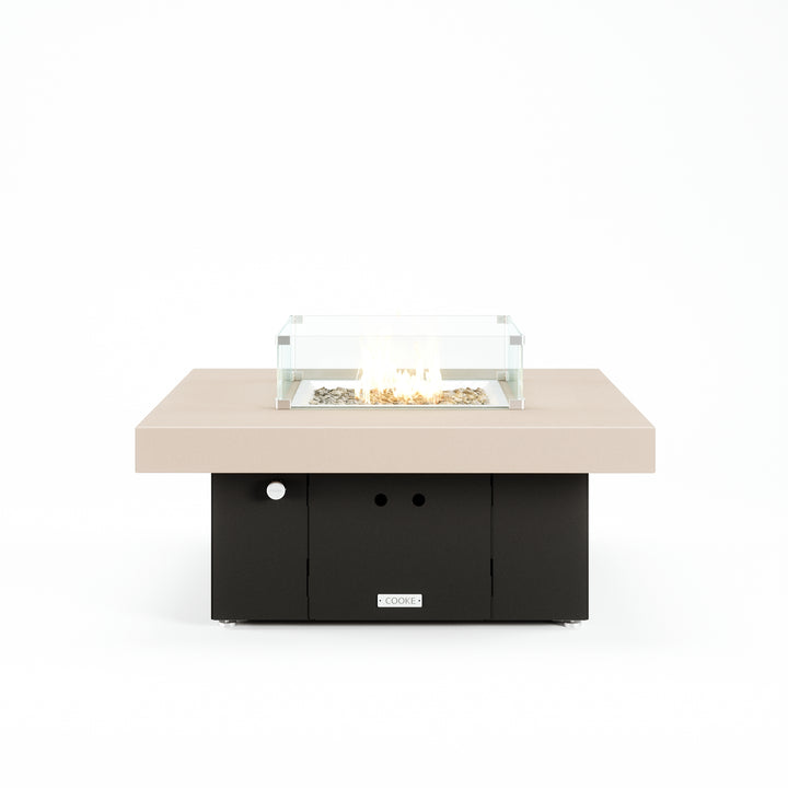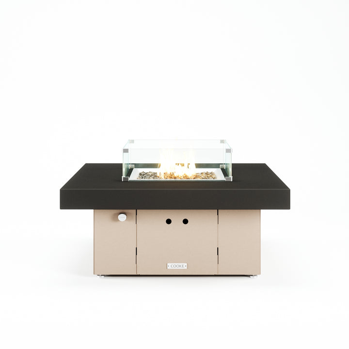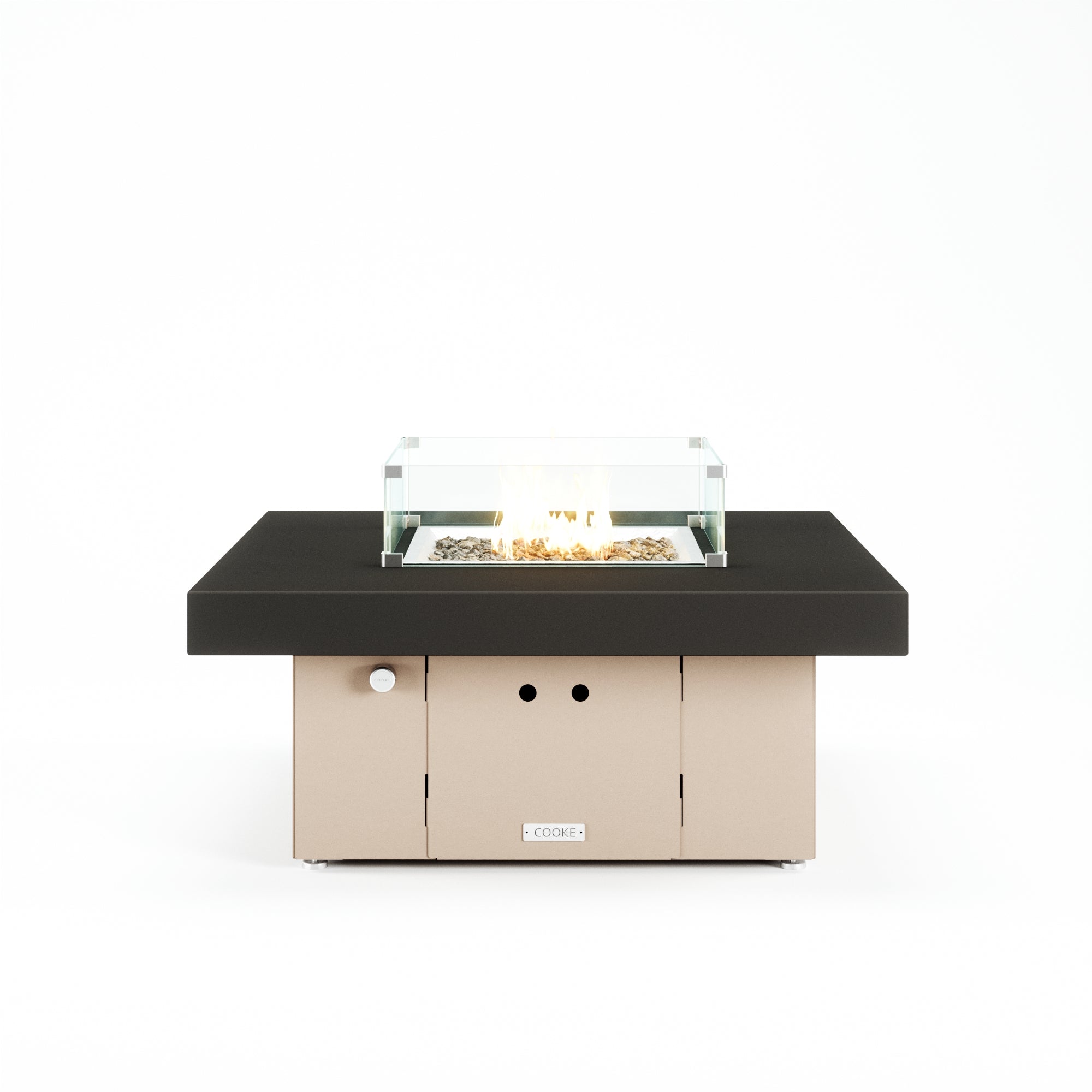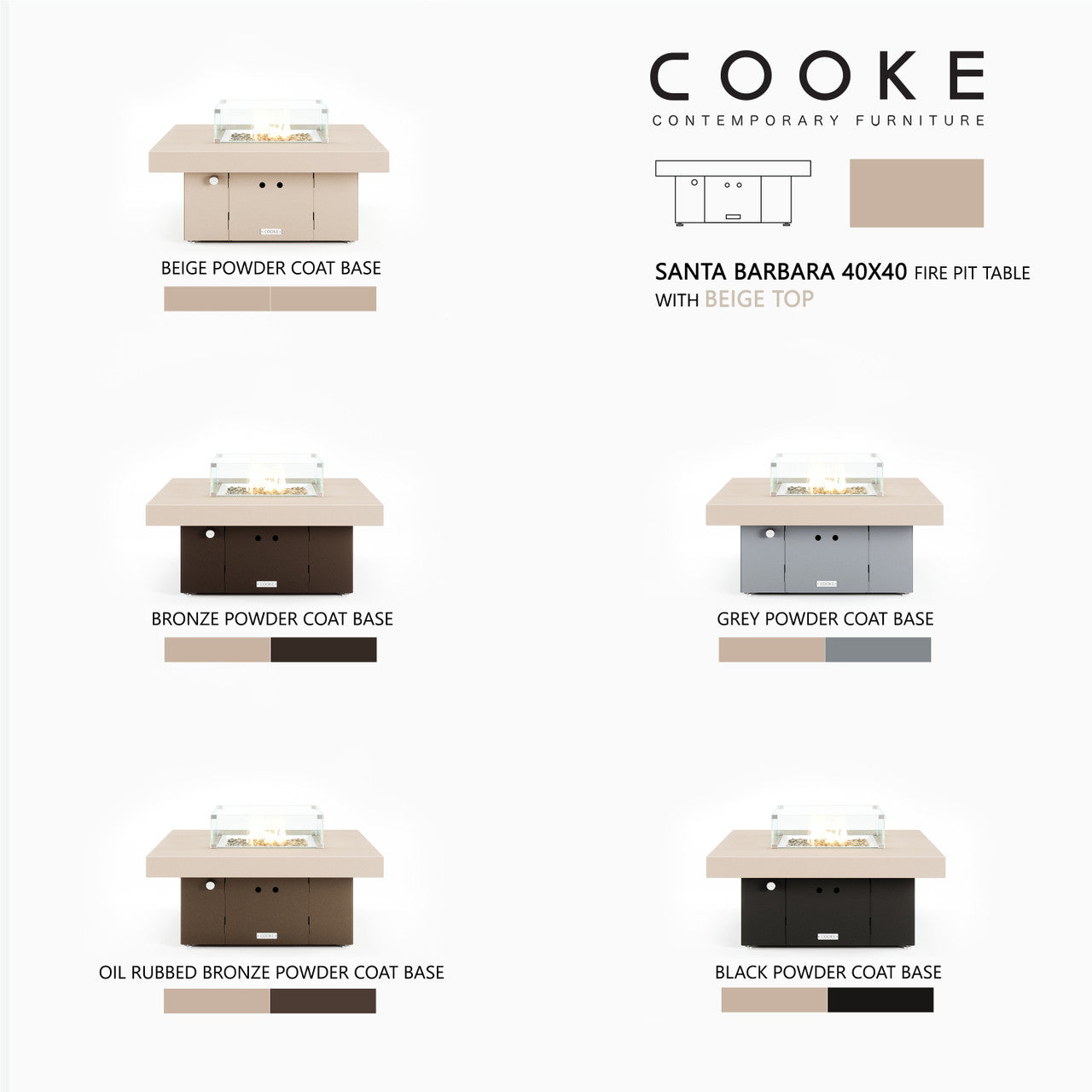 The Santa Barbara outdoor fire pit table is COOKE's contemporary lounge height table with oversized top. This impressive table features a solid, simple, straight sided block base and thick granite or aluminum table top. The Santa Barbara is available in a wide variety of color combinations - a perfect match for your own hardscaped backyard, pool areas, or outdoor living space. Built with the same legendary COOKE quality, this table conveys an impression of permanence, tranquility, and comfort.