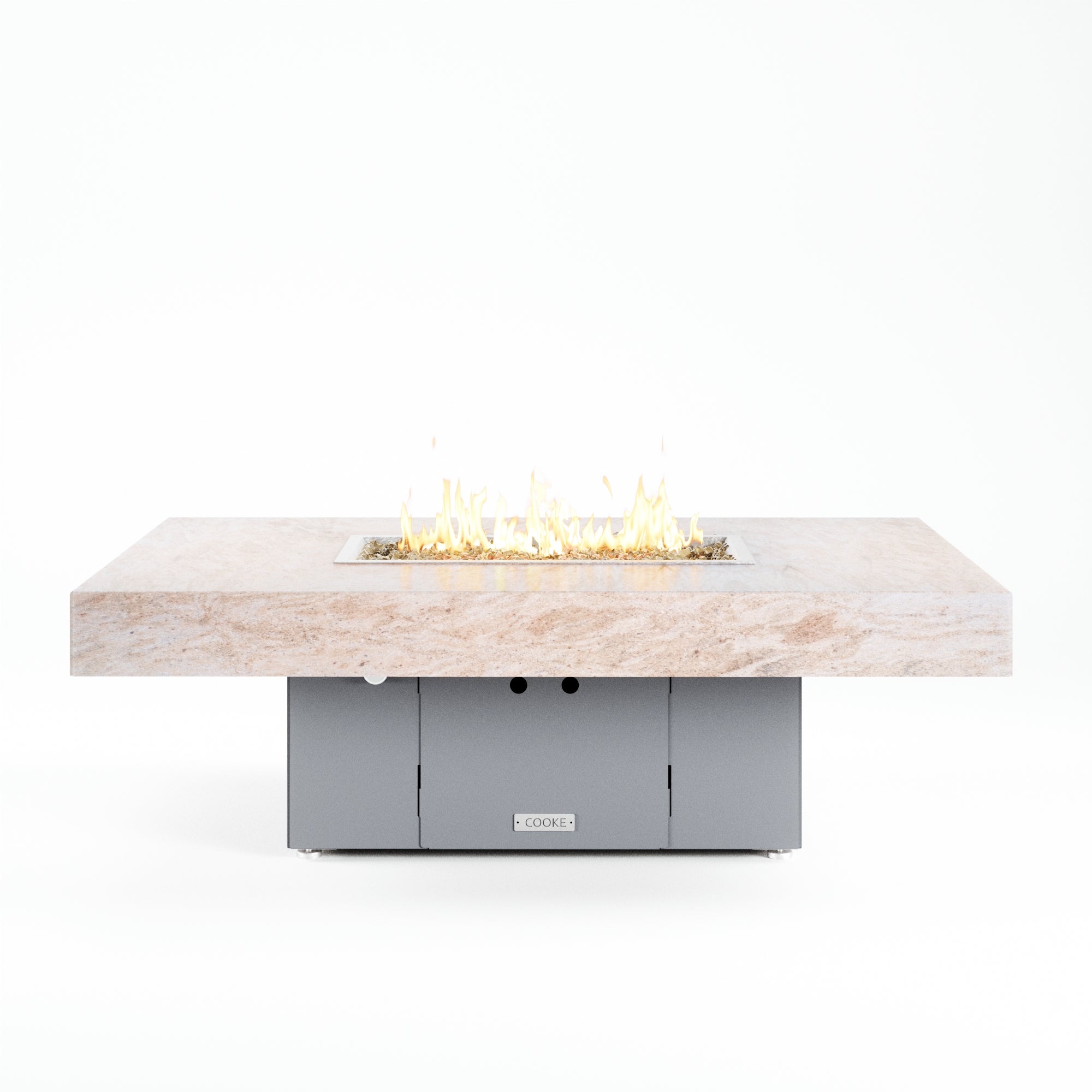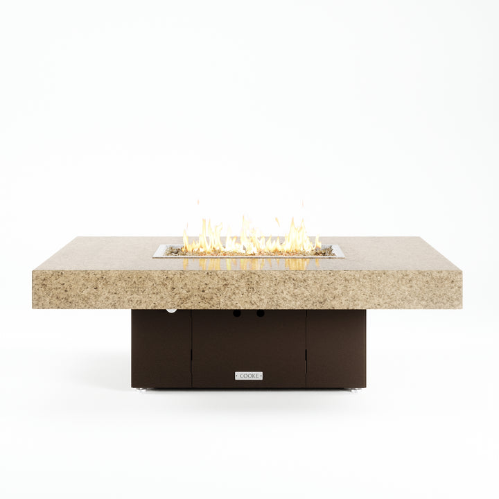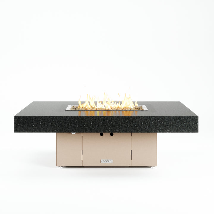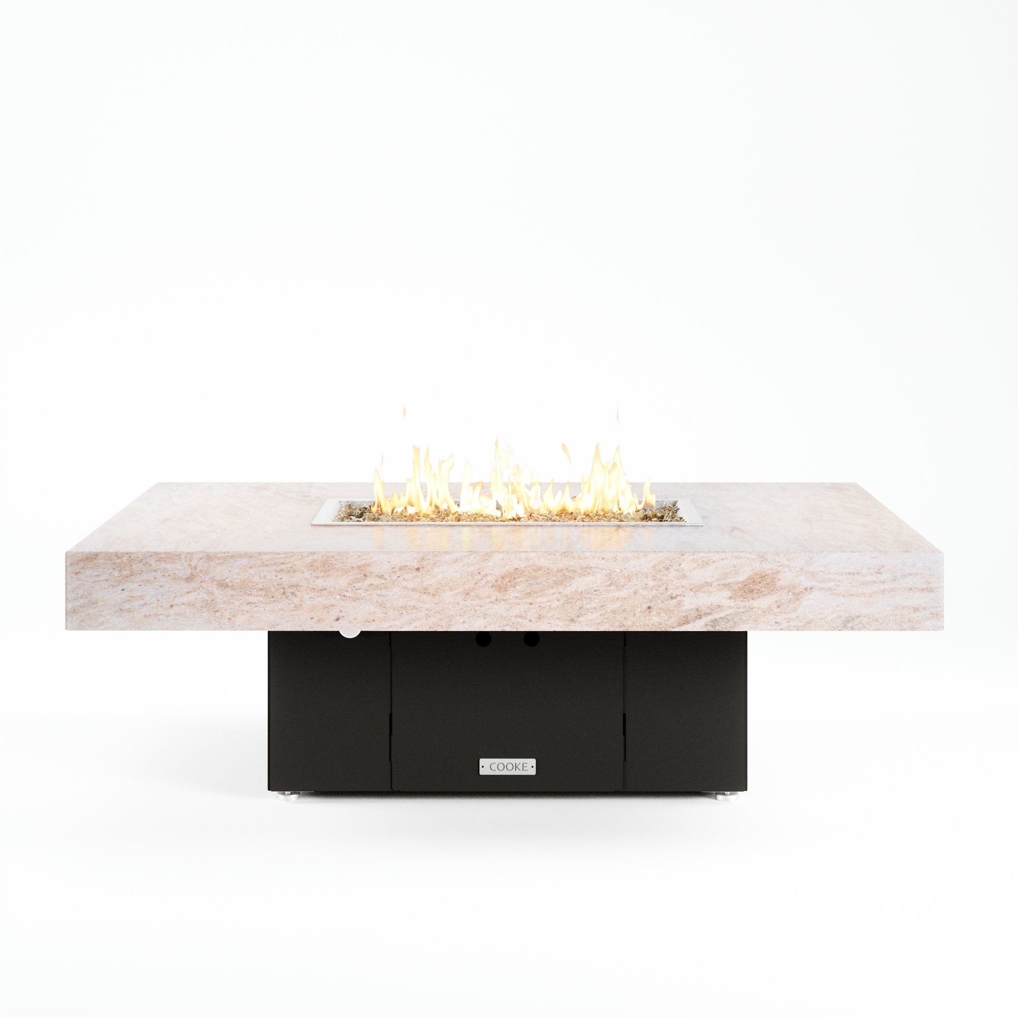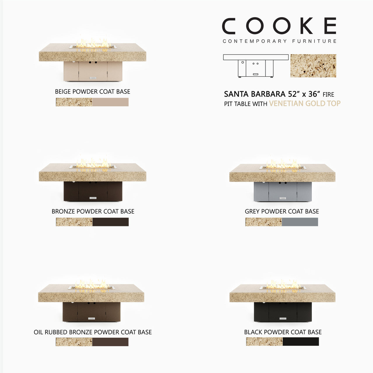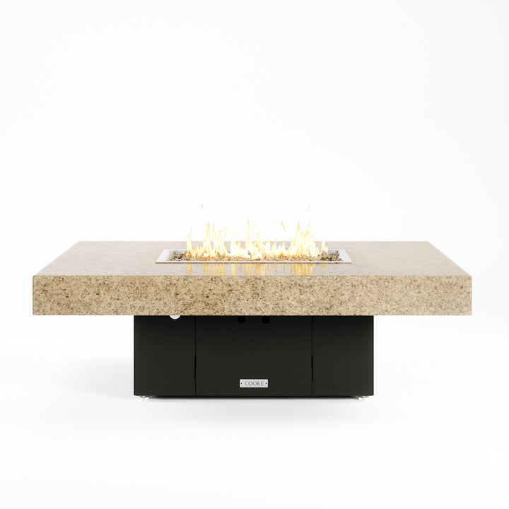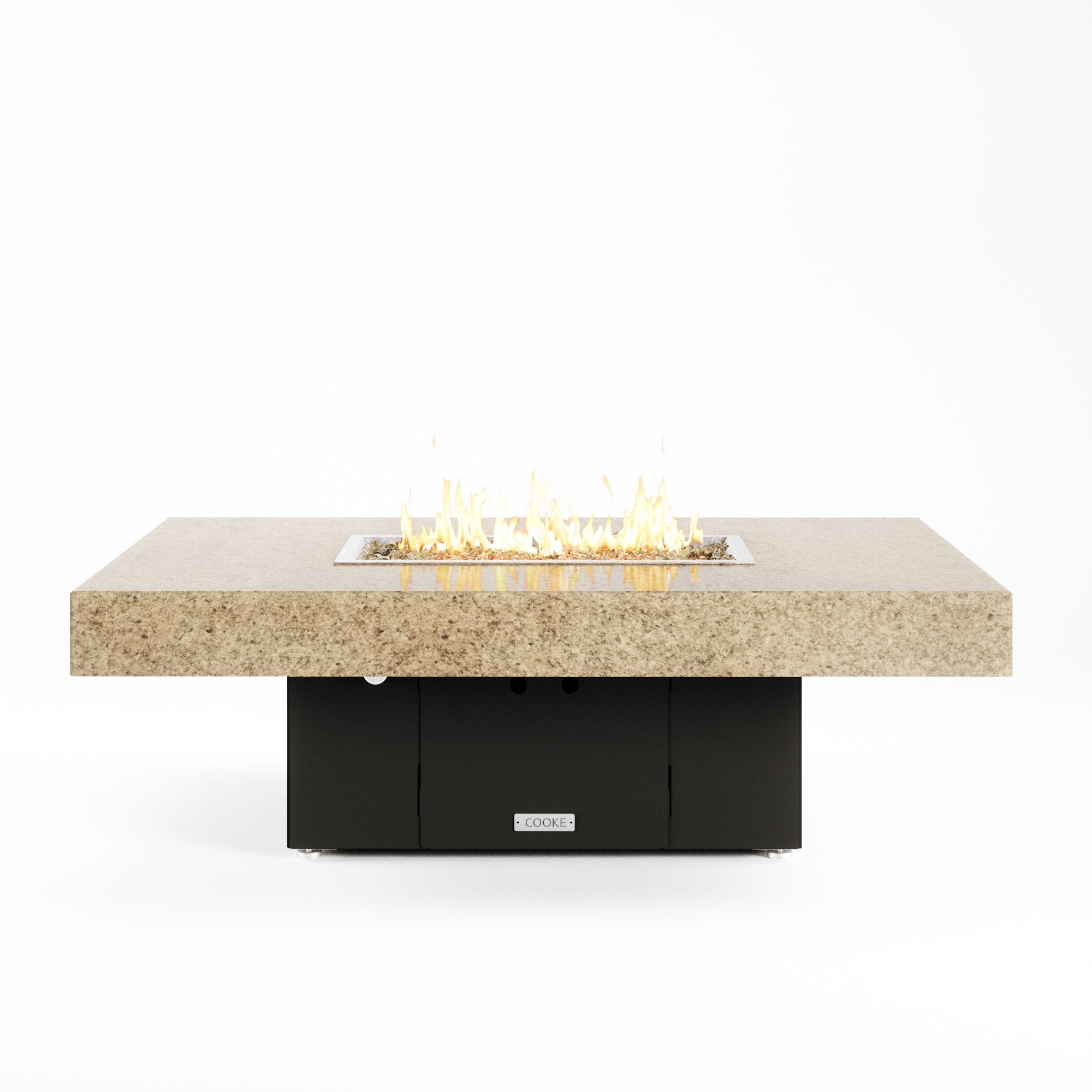 The Santa Barbara outdoor fire pit table is a contemporary masterpiece. This table features a beautiful cantilevered top on a solid straight-sided table base. The granite table top is stunning. Cut from a continuous slab, the table edges are perfectly matched allowing colors and textures to perfectly flow over onto the table edge. This table is perfect for your own courtyard, backyard, or garden sanctuary. Built with the same legendary Cooke durability, this table conveys and impression of permanence, tranquility, and comfort. Our customers love this table's premium granite surface, stainless steel leveling feet and plenty of room for small plates and drinks. Cover up the burner and this table is a stylish and functional garden table.
