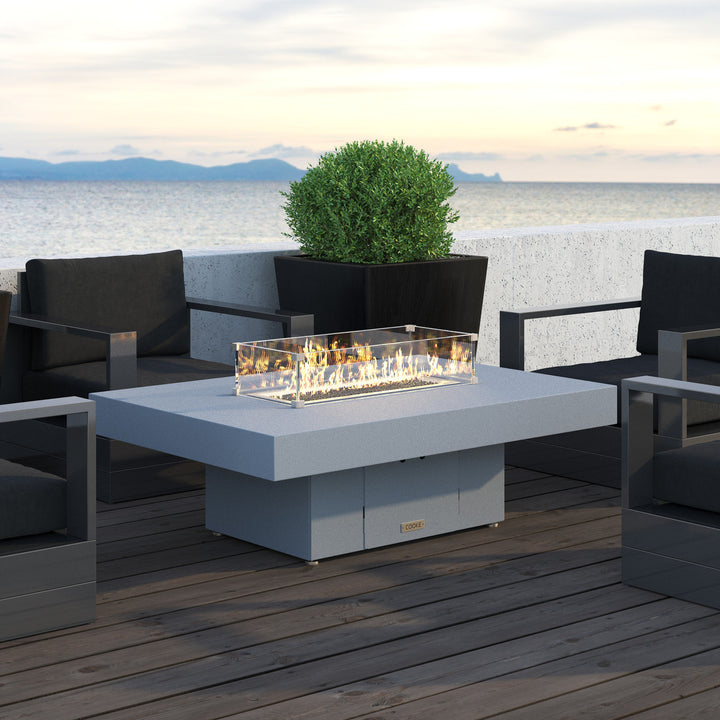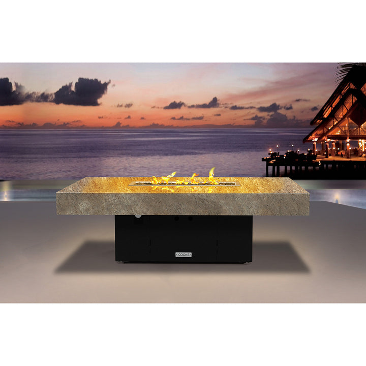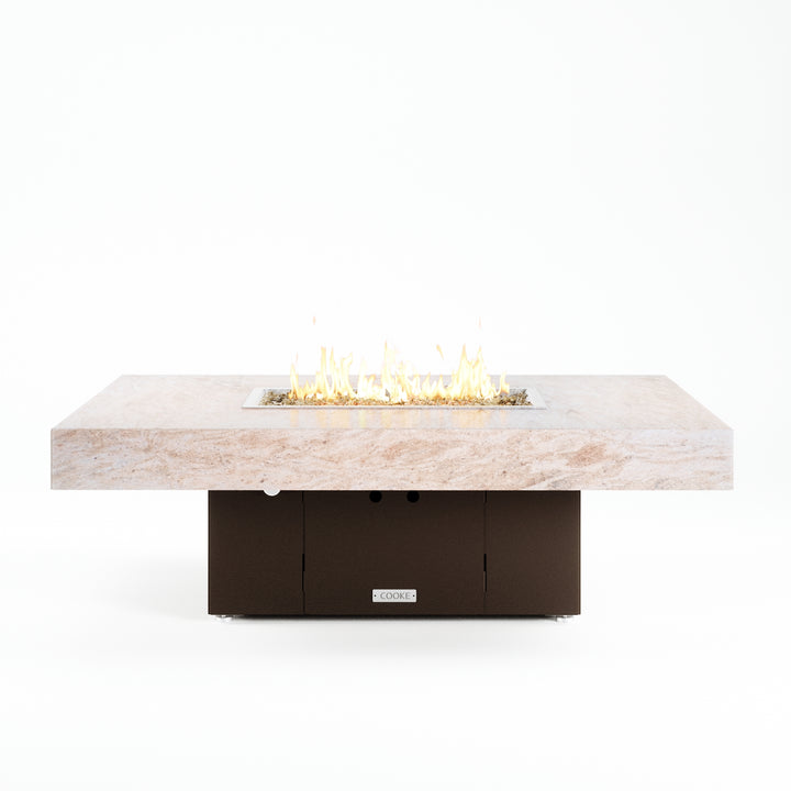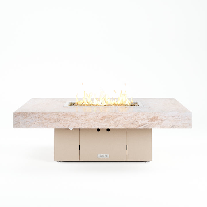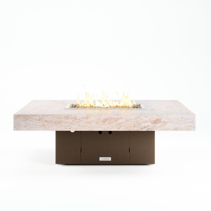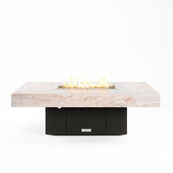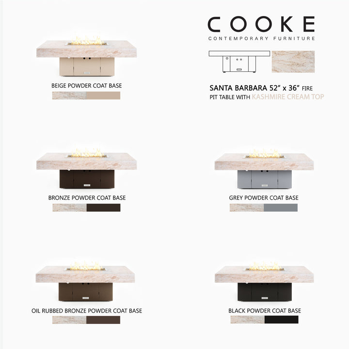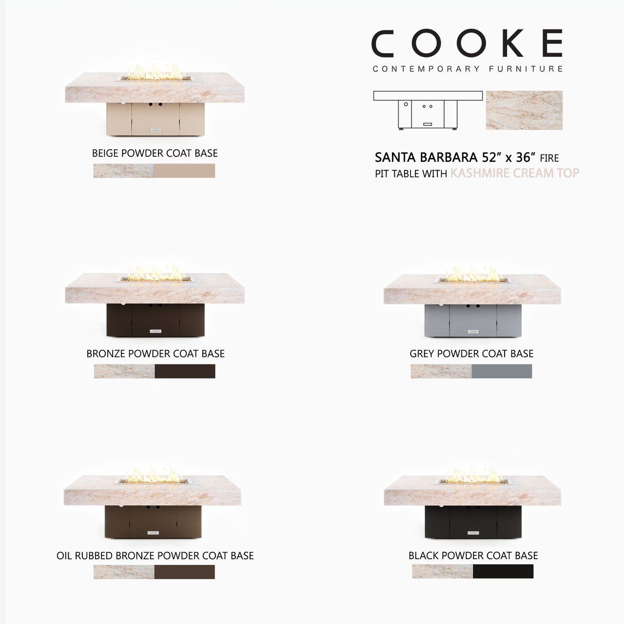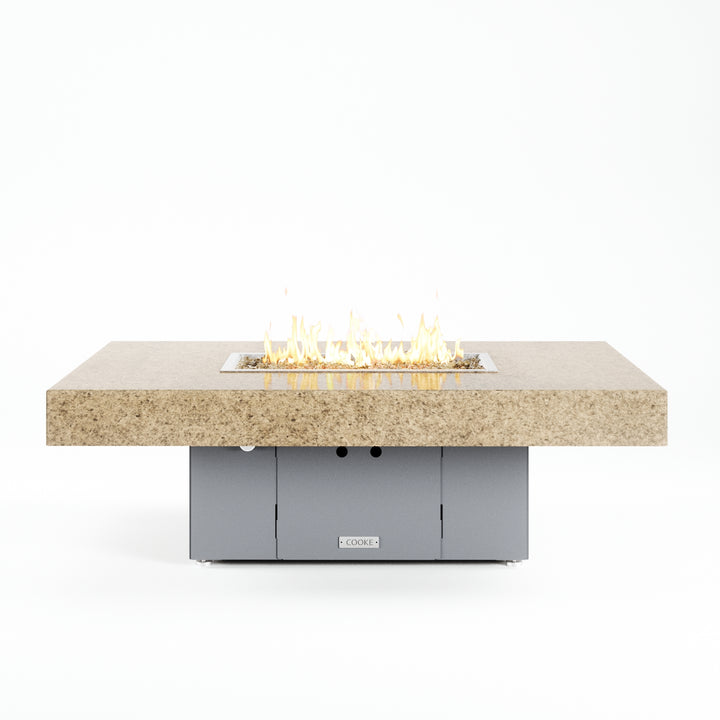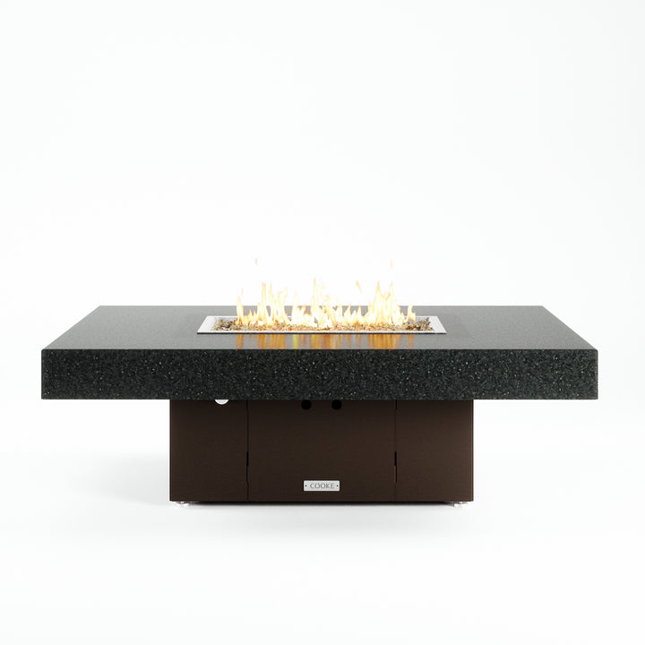 The Santa Barbara outdoor fire pit table is a contemporary masterpiece. This table features a beautiful cantilevered top on a solid straight-sided table base. The granite table top is stunning. Cut from a continuous slab, the table edges are perfectly matched allowing colors and textures to perfectly flow over onto the table edge. This table is perfect for your own courtyard, backyard, or garden sanctuary. Built with the same legendary Cooke durability, this table conveys and impression of permanence, tranquility, and comfort. Our customers love this table's premium granite surface, stainless steel leveling feet and plenty of room for small plates and drinks. Cover up the burner and this table is a stylish and functional garden table.