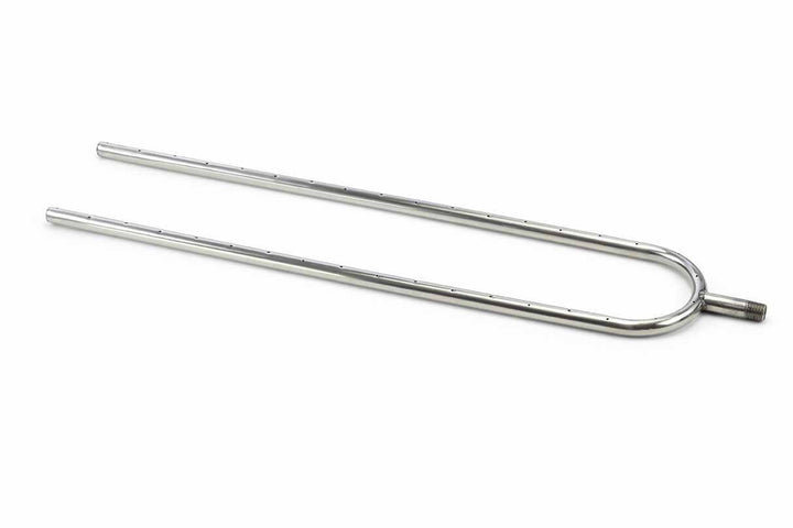 HPC's Stainless Steel 18" Dual Burner is the perfect addition to your outdoor fireplace and are a great addition to our stainless steel log grates. This burner configuration creates a full, linear, wall of fire. The 304 stainless steel construction and capped ends ensure a durable and weatherproof frame, even in corrosive coastal areas. The gas inlet is 3" in length with male 1/2" pipe thread. Additionally, a protective leveling pan is now offered (Product #DSBP18) which suspends burner in perfect alignment 3/4" above fireplace floor.