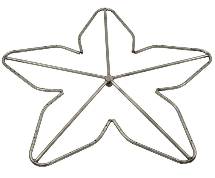 The Penta burner designed for outdoor gas fire pits not only looks different, it burns different and equally as well with lava rock or decorative glass media. The patented design is only available from HPC- delivering a very uniform & full campfire effect to your fire pit - a dramatically different look than standard fire rings especially on lower settings. This is accomplished by utilizing holes drilled at the 3, 9, & 12 o'clock positions of the stainless steel tubing for a broader flame. If you enjoy your flame on low, this will not exhibit the ring pattern seen with some concentric fire rings. This unit has also been improved by HPC's raised hub which is designed to shed water.