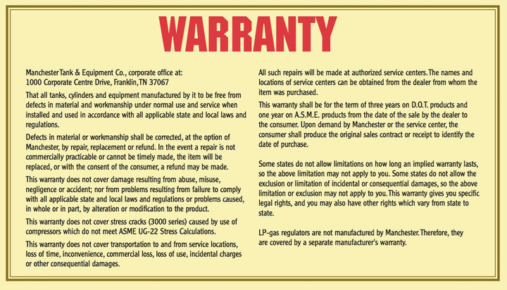 - Manufactured by Manchester in the most up-to-date, state-of-the-art cylinder facilities in the U.S.A.