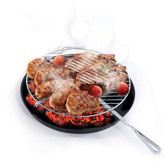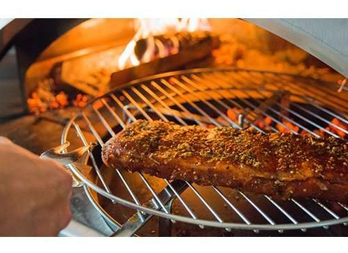 With the Alfa BBQ 500, your Alfa pizza oven can be transformed into a barbeque with sufficient power and control to cook food over coals or fire to a temperature of 930°F. By just moving the dishes, you may use the rotational steel grill to observe how the food is cooking. A steel baking pan that comes with the set is meant to catch embers and drain fat during cooking. contains stainless steel tongs as well, so you may turn the grill grate while the oven is on.