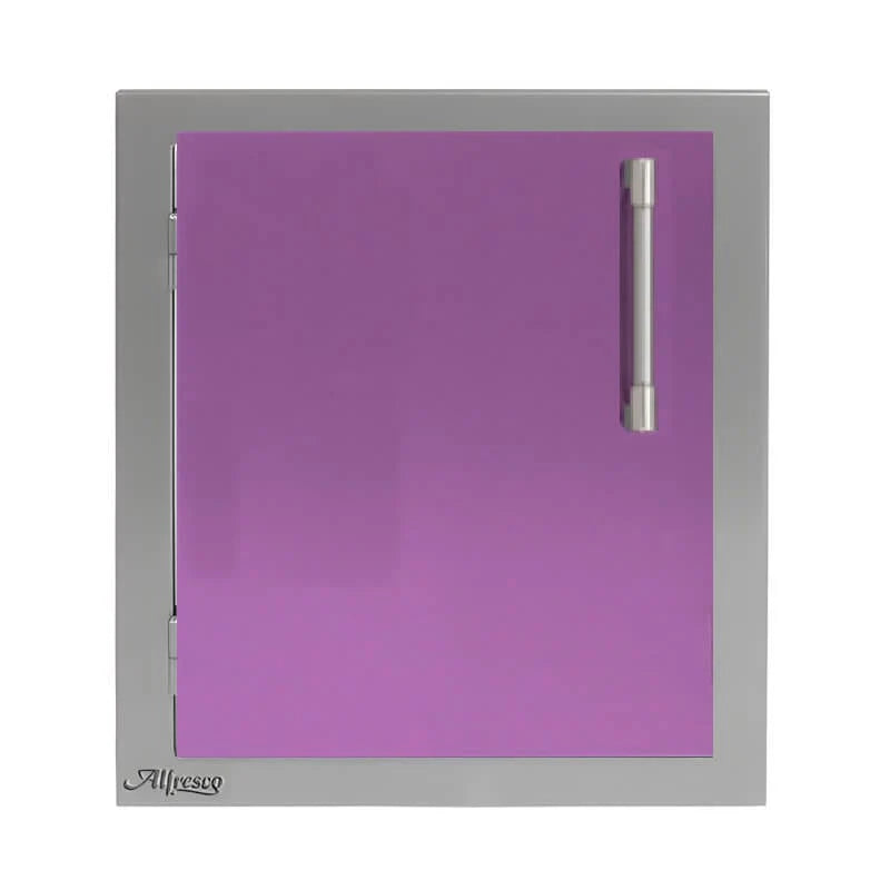 For your outdoor cooking area, the Alfresco 17-inch Vertical Single Access Door is the best storage option available. This single-access door can be used to conceal plumbing and electrical components or to store kitchen supplies. You may easily access your stored belongings thanks to the door's approximately 180° swing opening. Upgrades like Access Door Bins and Access Door Enclosure are optional and help you keep your belongings safe and arranged for even more organization.