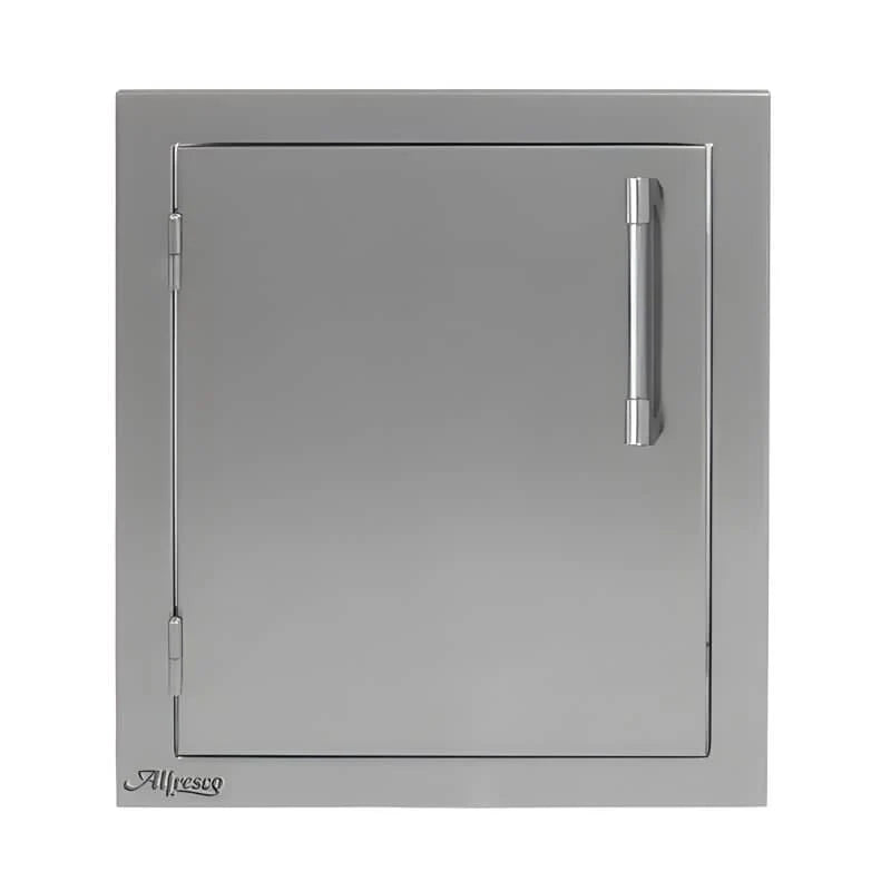 Enhance the efficiency and elegance of your outdoor grilling space with the Alfresco 17-inch Vertical Single Access Door. Made of sturdy 304 stainless steel, this door withstands all weather conditions, providing superior rust protection and a sleek appearance. The dual-lined stainless steel door ensures structural integrity and longevity, and the flush mounting design seamlessly integrates into various outdoor kitchen styles.