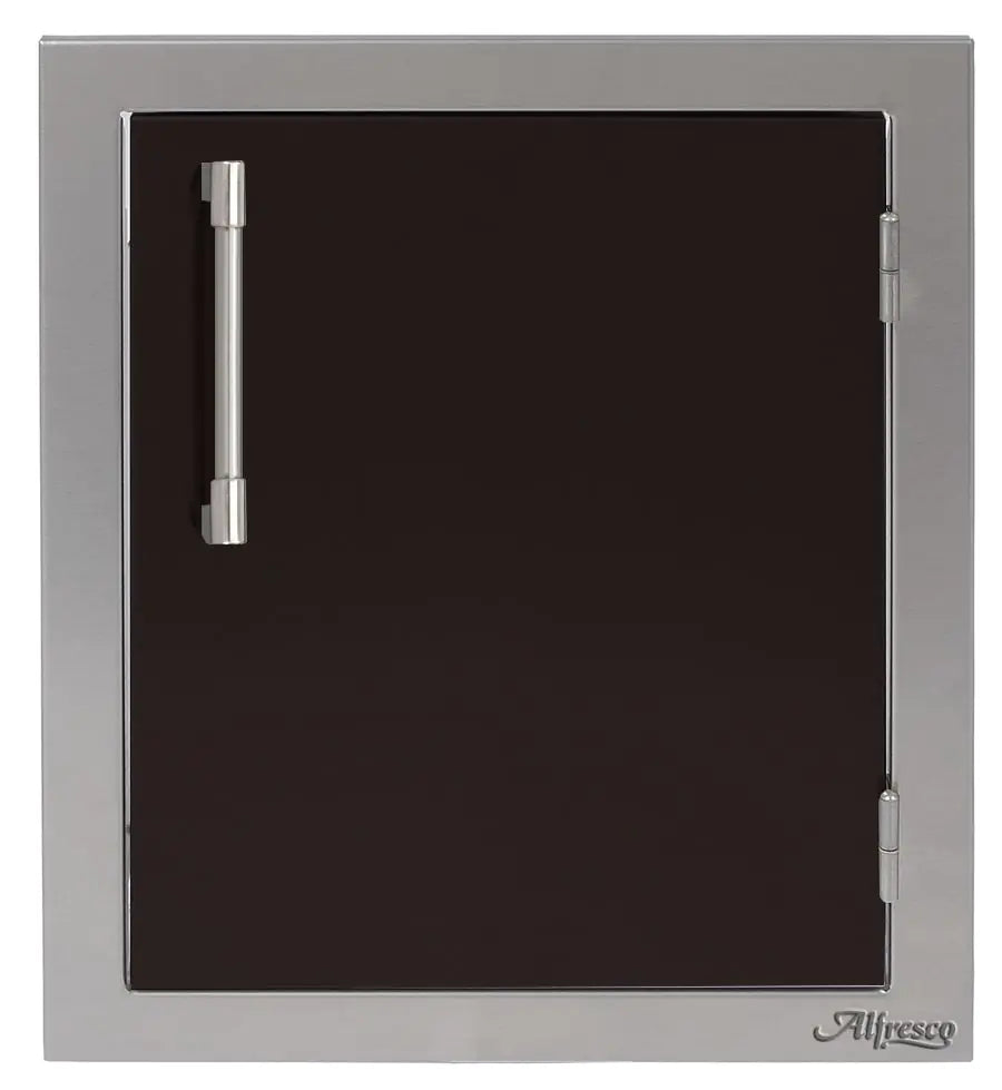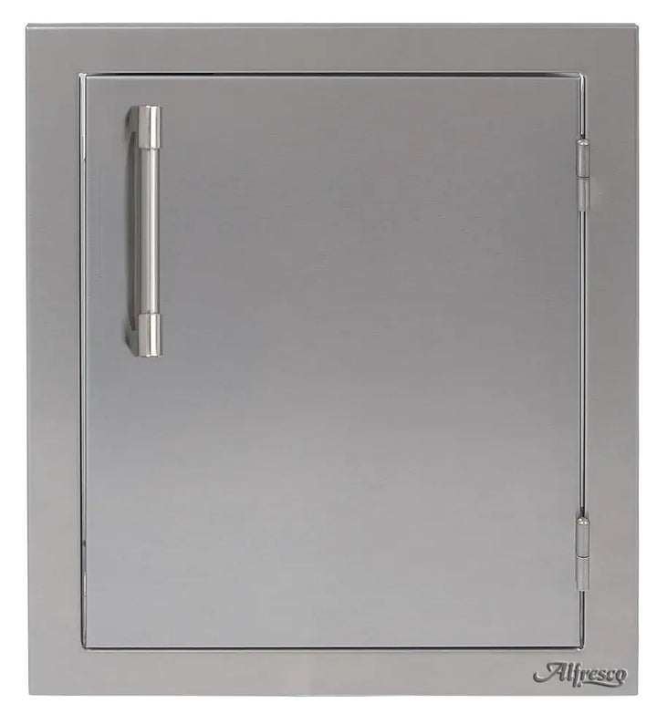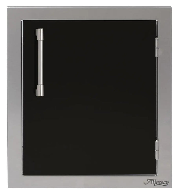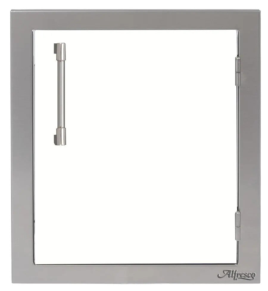 Easy and stylish access to your outdoor cooking island is made possible by this Alfresco Right-Hinged Single Access Door. There's never been too much room for storing! The 17-inch door has many mounting choices, a storage rack inside for storing your seasonings, grilling spices, and other items, and is made of 304 grade stainless steel for durability and little maintenance. The modern handle on this AXE type door makes opening it simple.
