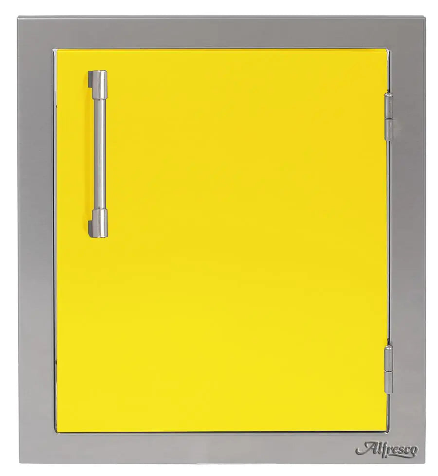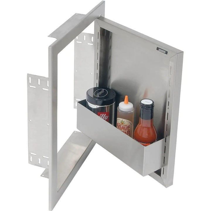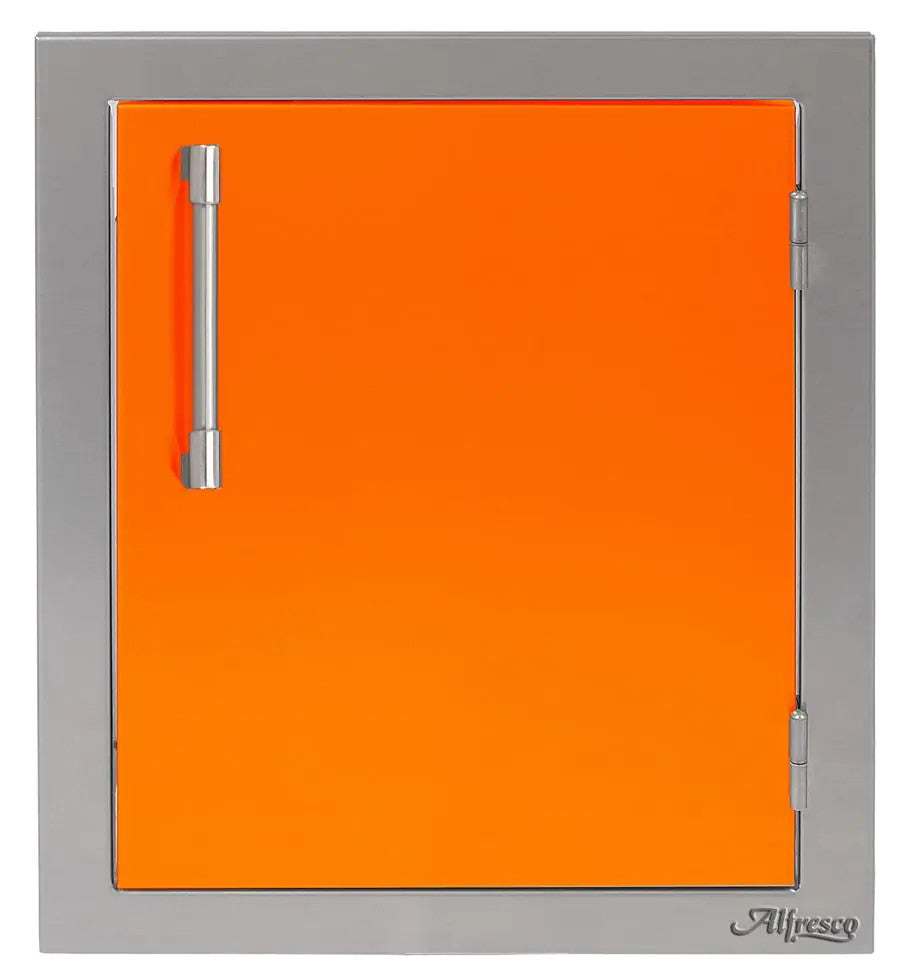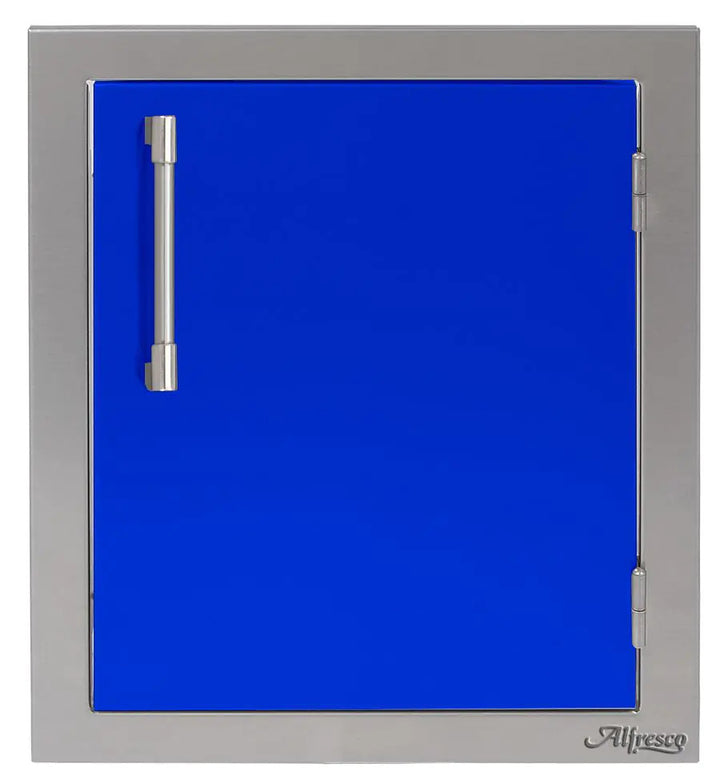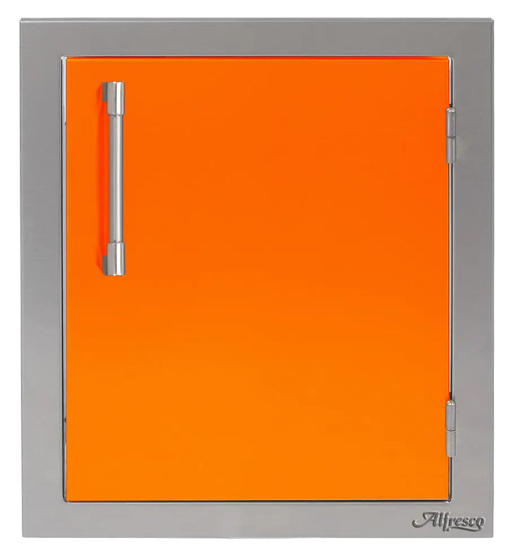 Easy and stylish access to your outdoor cooking island is made possible by this Alfresco Right-Hinged Single Access Door. There's never been too much room for storing! The 17-inch door has many mounting choices, a storage rack inside for storing your seasonings, grilling spices, and other items, and is made of 304 grade stainless steel for durability and little maintenance. The modern handle on this AXE type door makes opening it simple.